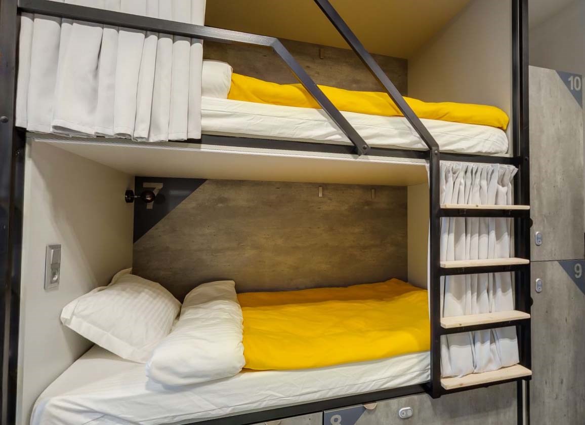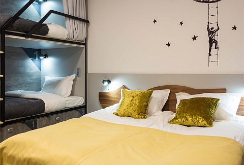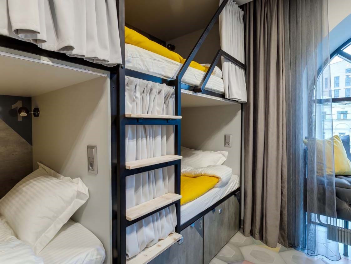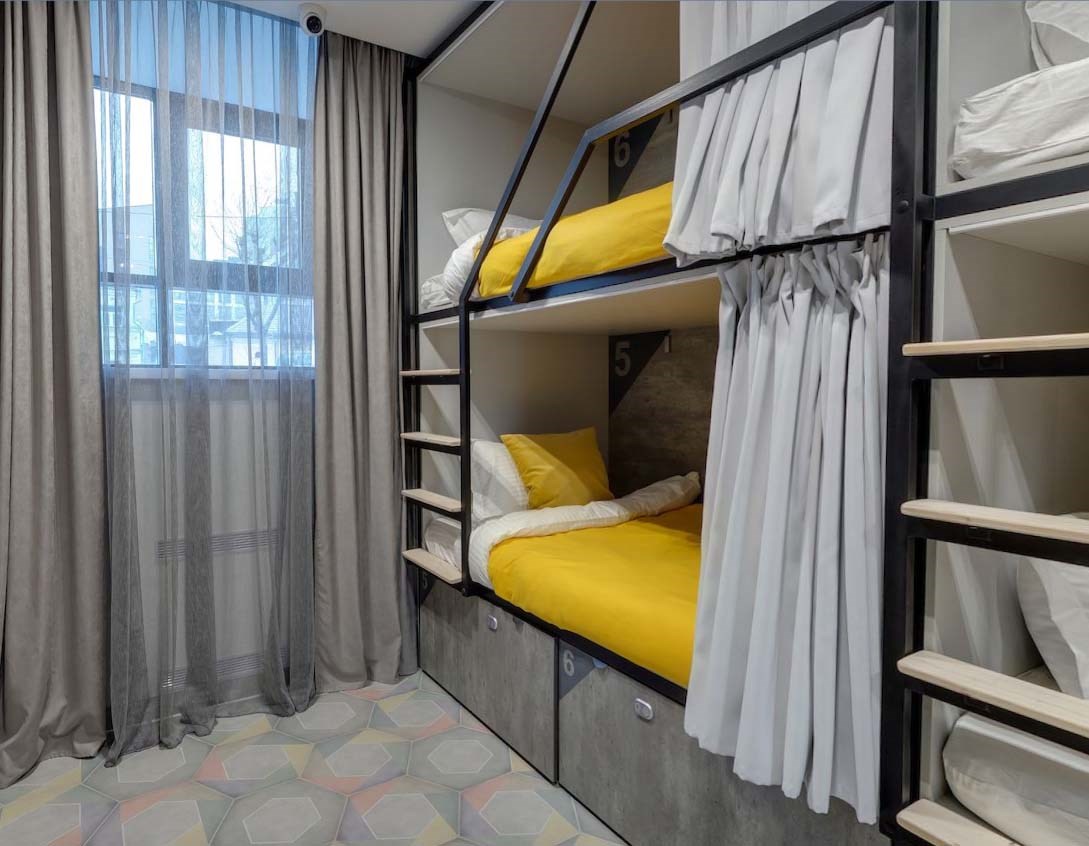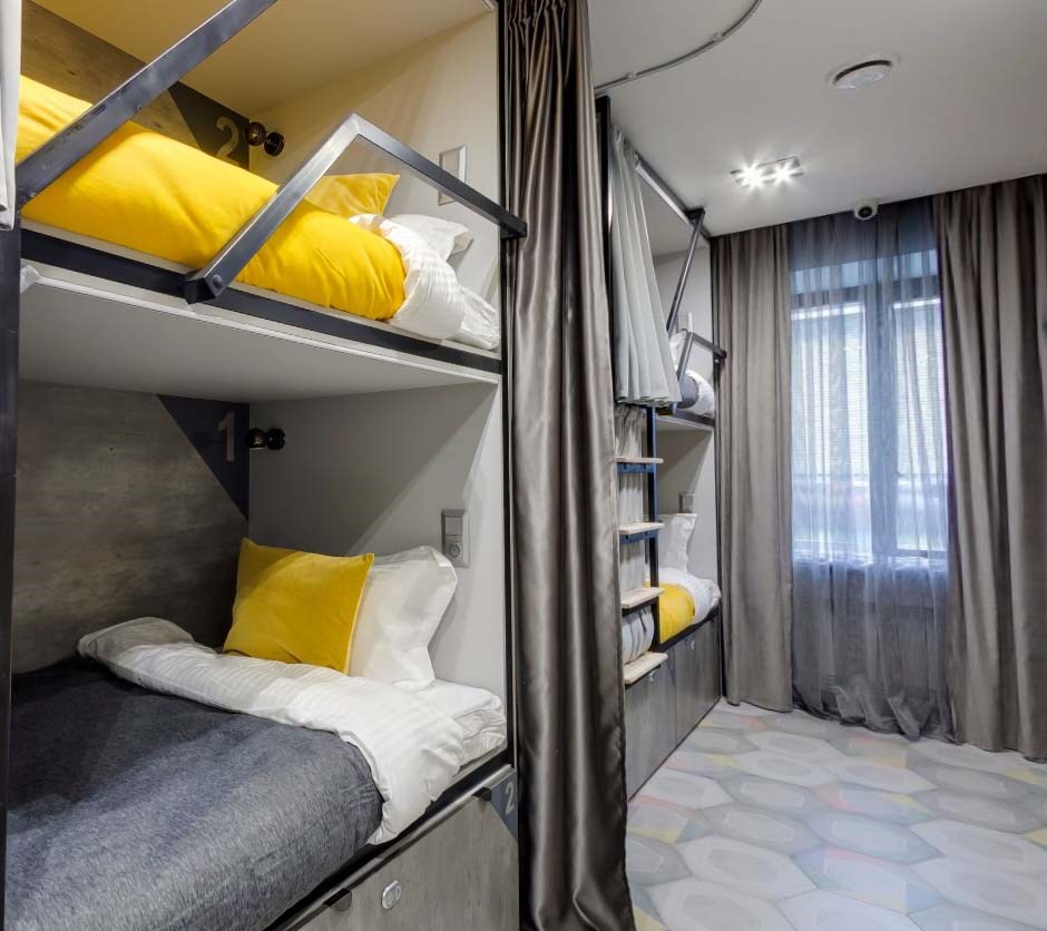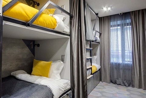 В распоряжении гостей 3-х, 4-местные номера, а также общие, мужские и женские 8-ми и 10-местные комнаты. Во многих номерах есть кухонный уголок с чайником, микроволновой печью, телевизор и санузел с душем, некоторые оборудованы стиральной машиной.В отеле оборудована общая кухня с обеденным залом, вендинговыми автоматами с разнообразными снеками, сладостями, горячими и холодными напитками. Кроме прочего гостям предлагается отдохнуть в Лаундж-зоне с мягкими диванами, проектором и большим экраном, который отлично подойдет для совместного просмотра фильмов и спортивных трансляций.И в номерах, в общих пространствах доступен беспроводной интернет, а гостям на авто по запросу предоставляется парковка.