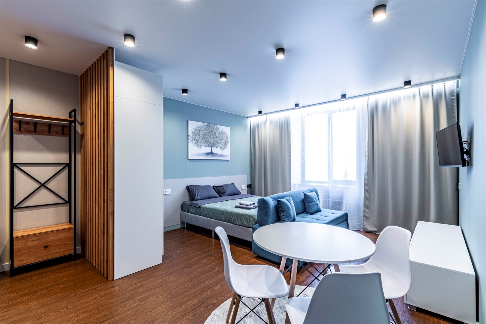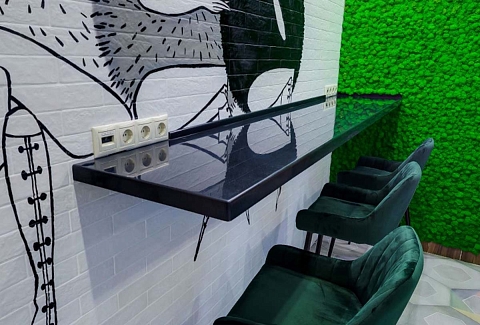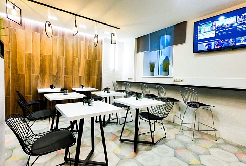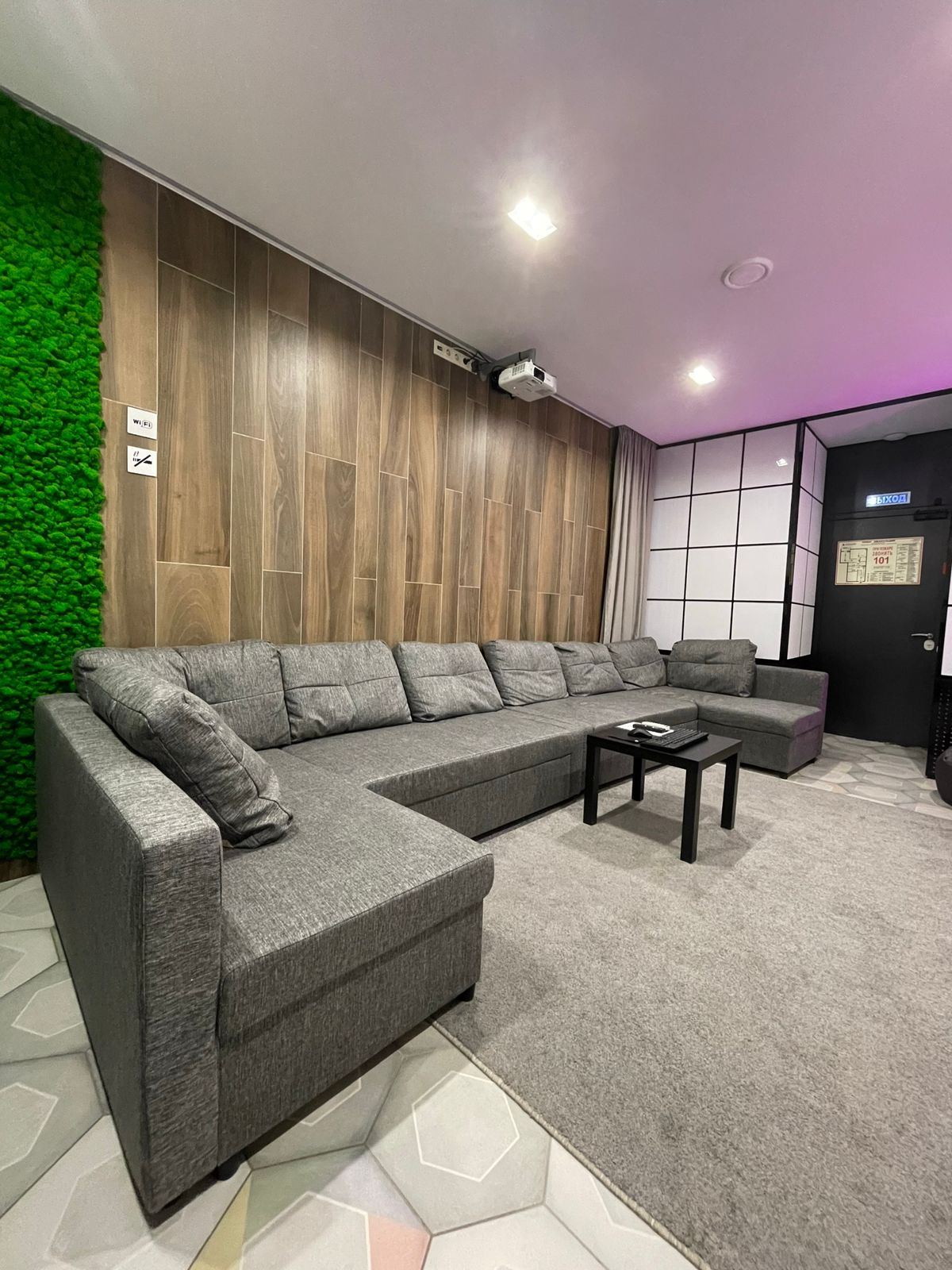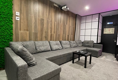 - Лаундж-зона/зона отдыха комфортабельное помещение с мягкими диванами, проектором и большим экраном, для совместного просмотра фильмов и спортивных трансляций