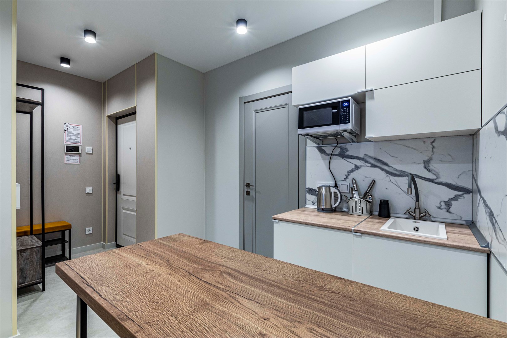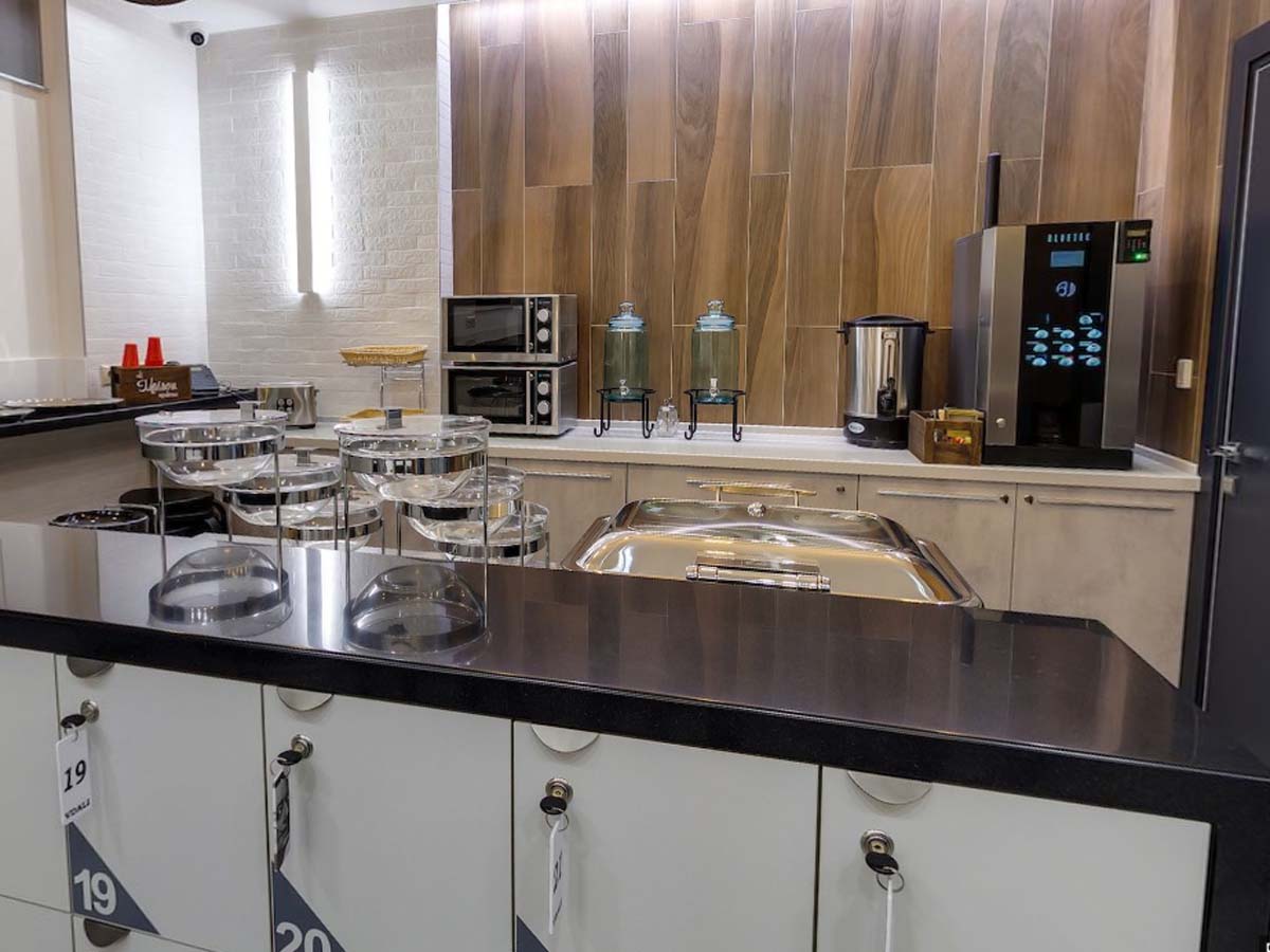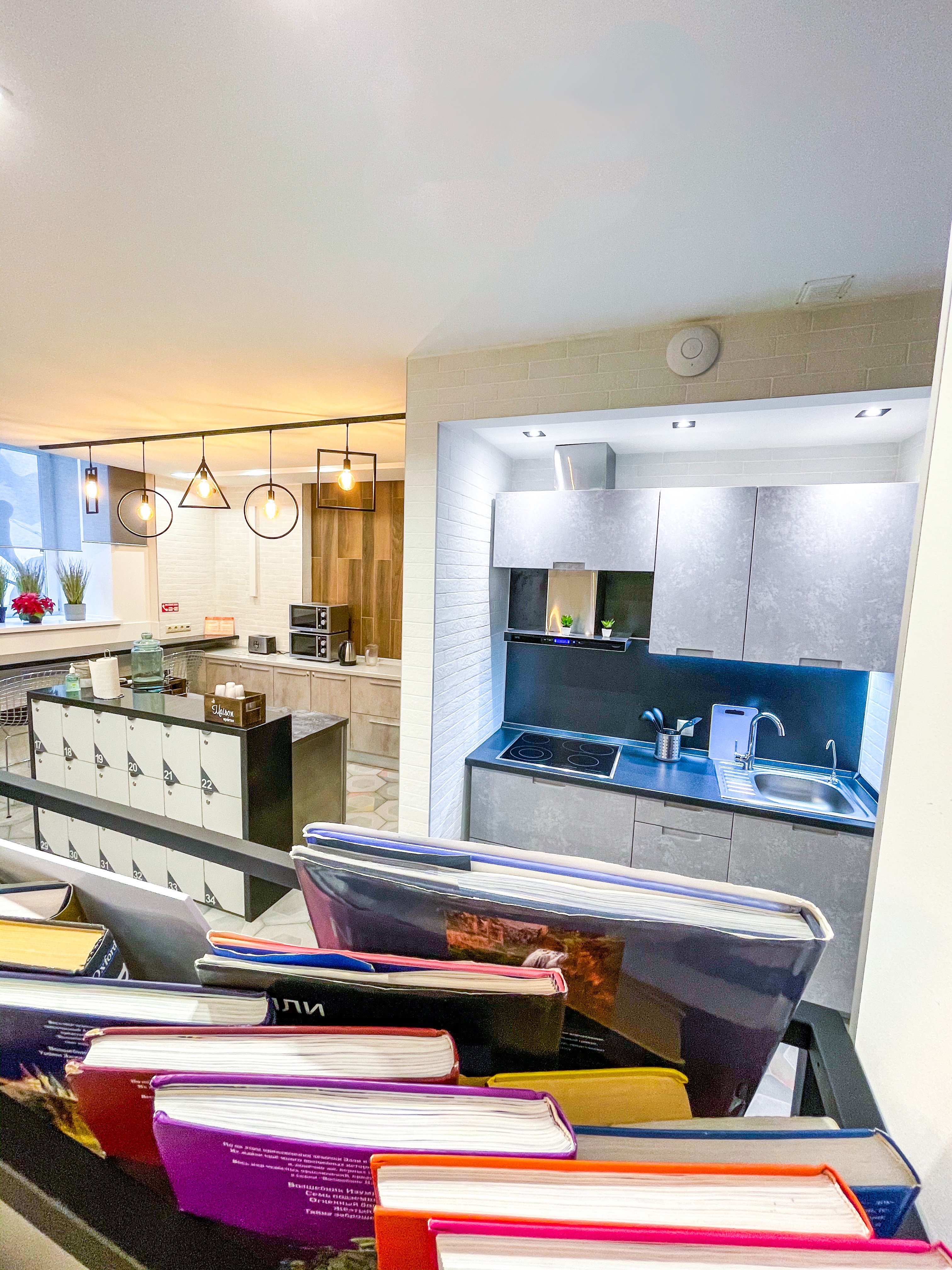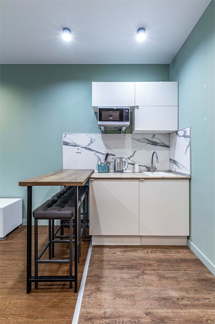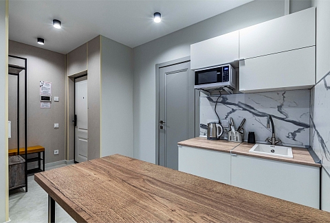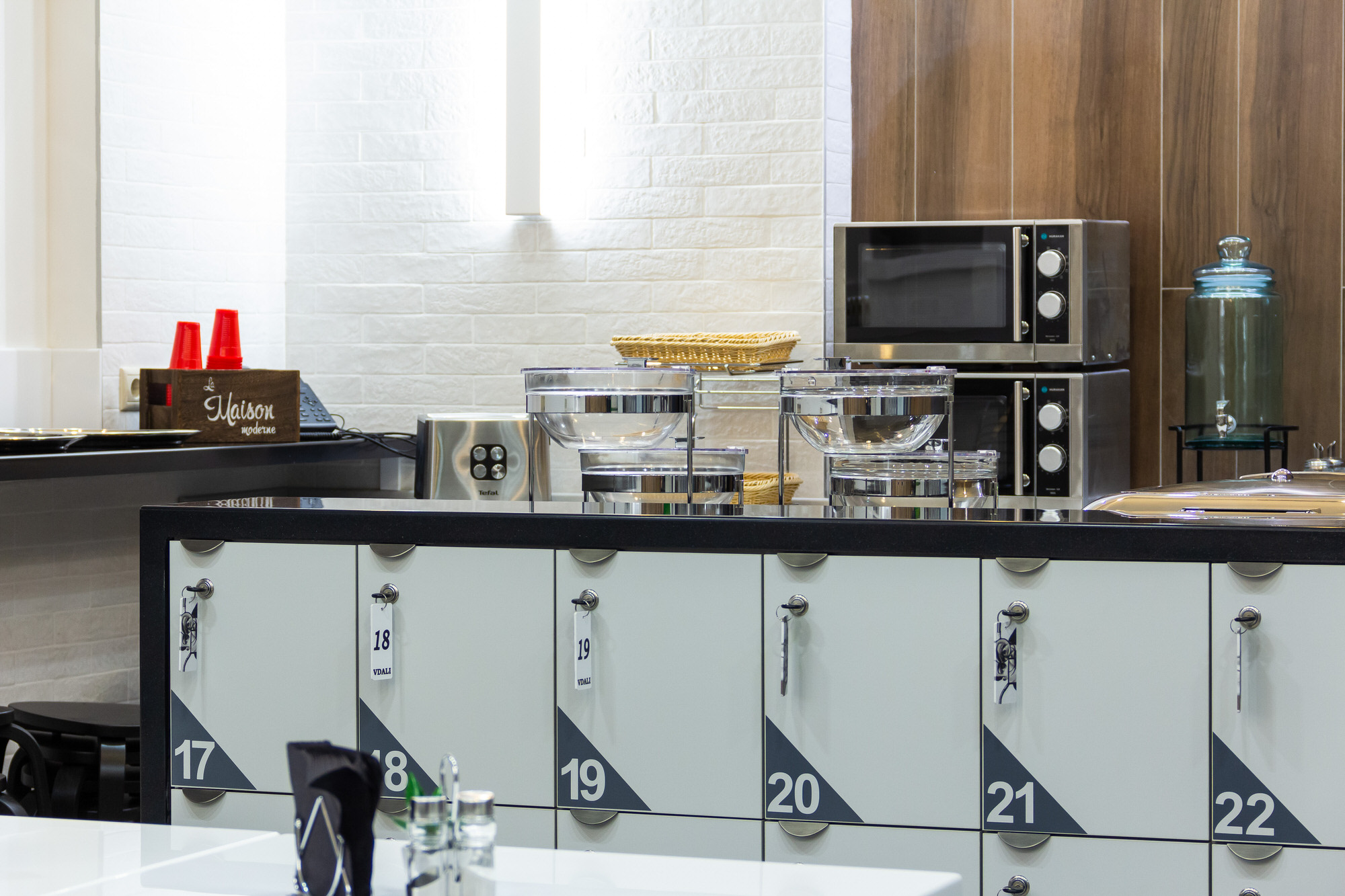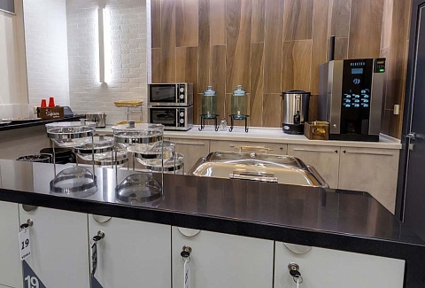 - общая кухня чайник, тостер, микроволновая печь, холодильник и вендинговые автоматы с разнообразными снеками, сладостями, горячими и холодными напитками