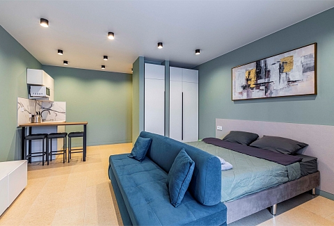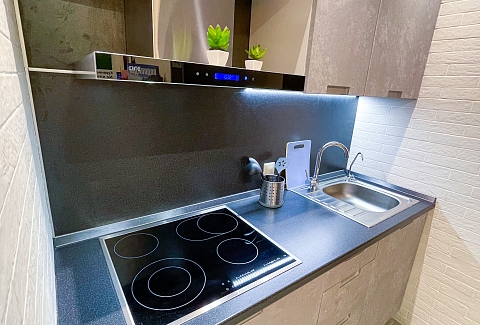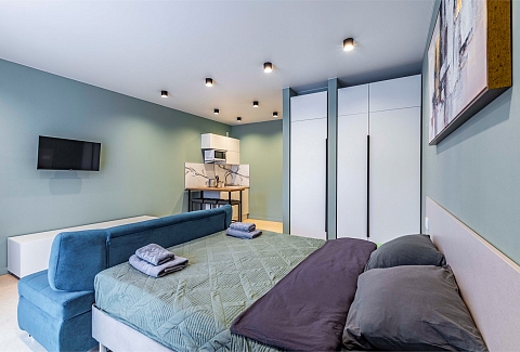 В номере: диван, диван раскладной, кровать двуспальная, стол, стулья, шкаф, микроволновая печь, набор посуды, плита электрическая, телевизор, холодильник, чайник