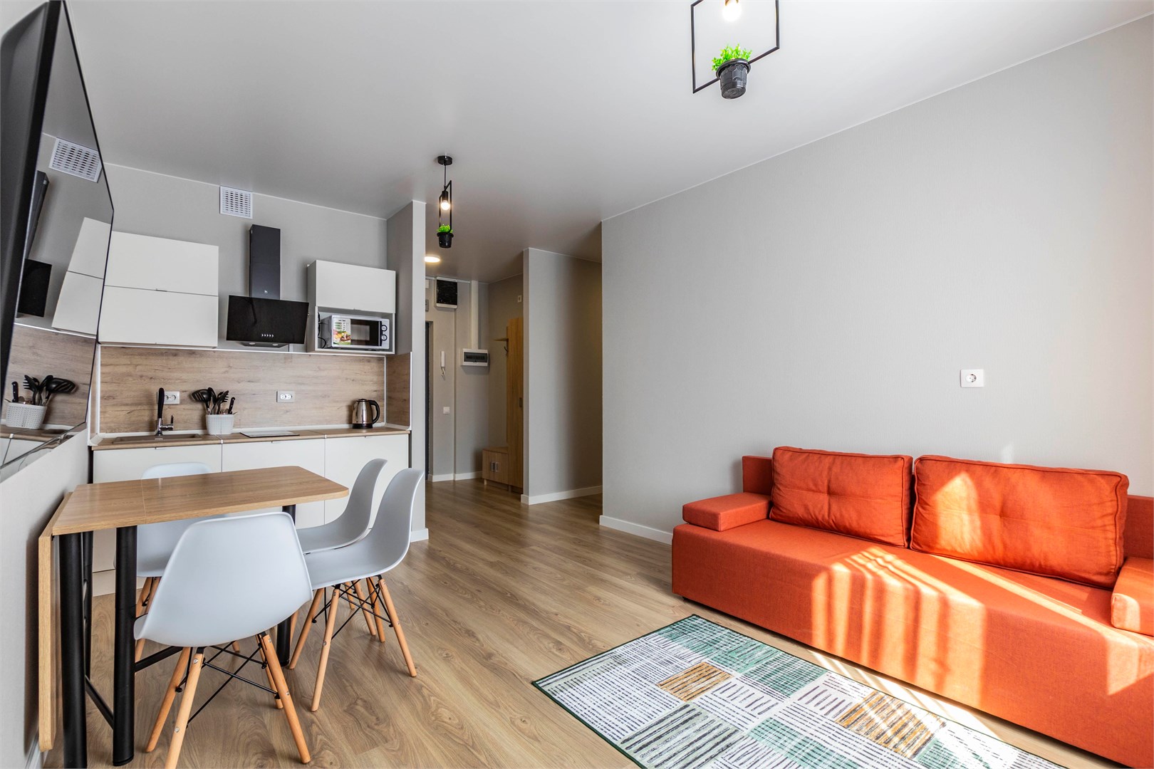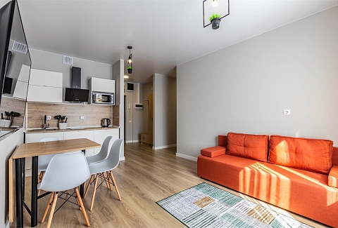 Для удобства передвижения есть лифт. Апартаменты вмещают до 7 гостей. Для комфорта предусмотрены двуспальная кровать с ортопедическим матрасом, диван, шкаф, телевизор, утюг, гладильная доска и Wi-Fi. Апартаменты оборудованы собственной ванной комнатой, где есть чистые полотенца, гигиенические средства, стиральная машина. На кухне предусмотрена необходимая бытовая техника и посуда для самостоятельной организации питания.