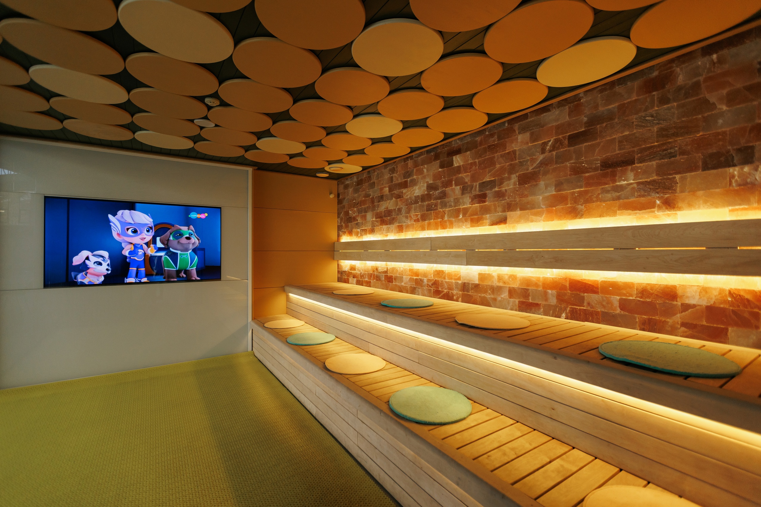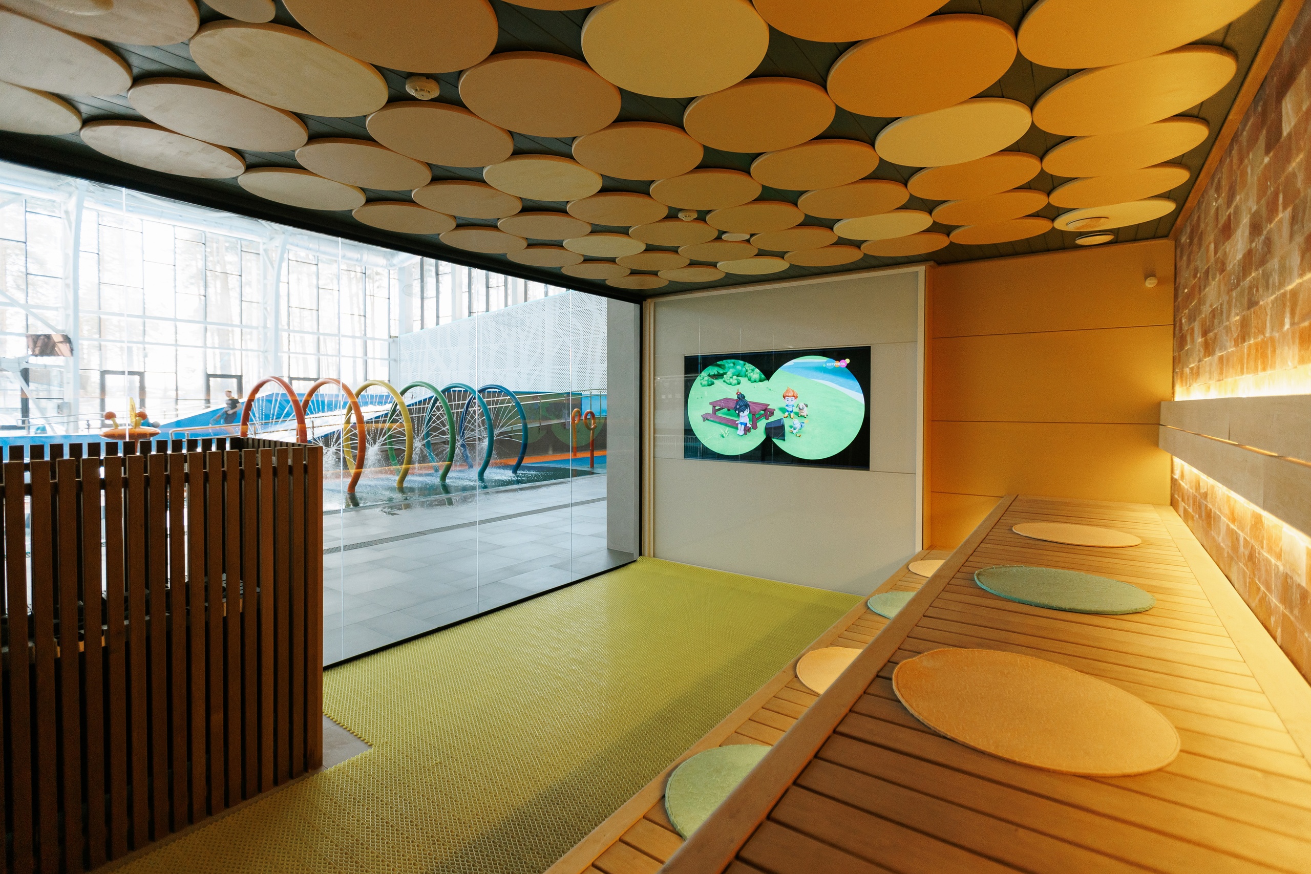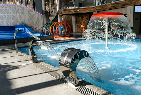 - Развлечения splash-зона для водных игр, мультфильмы в санариуме