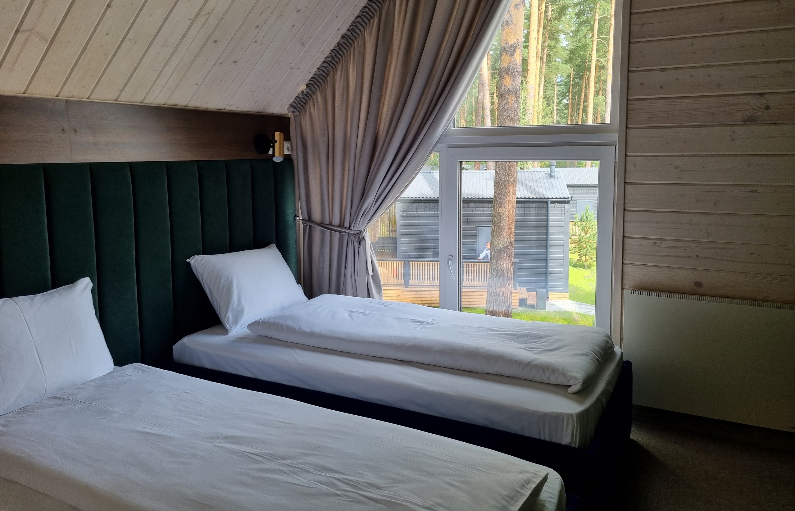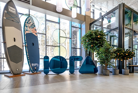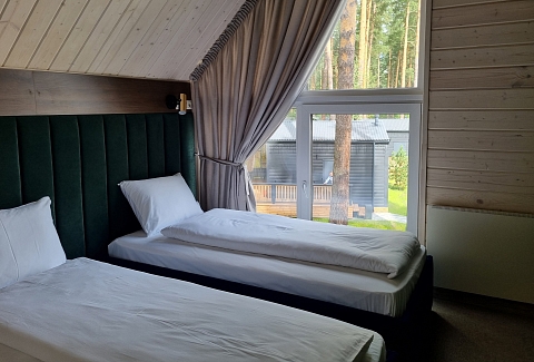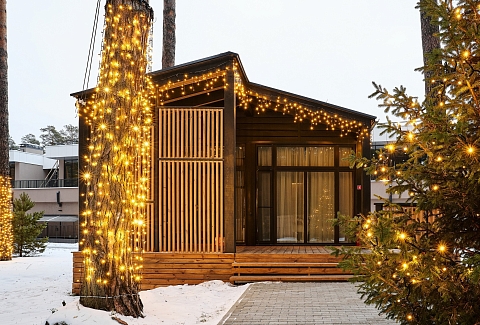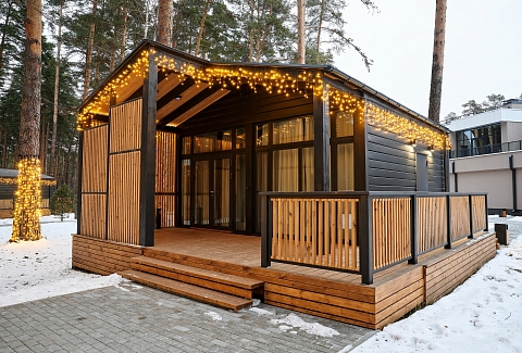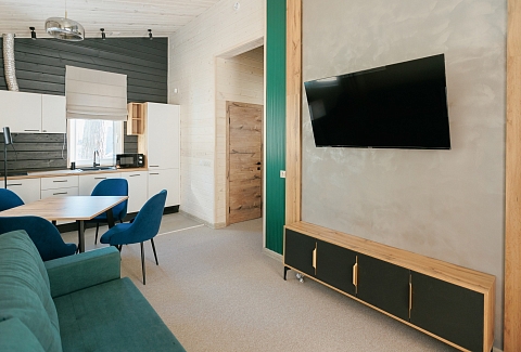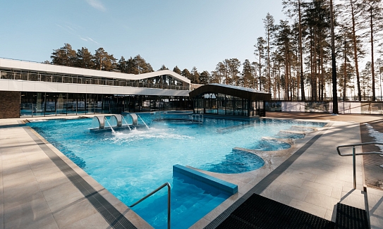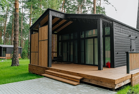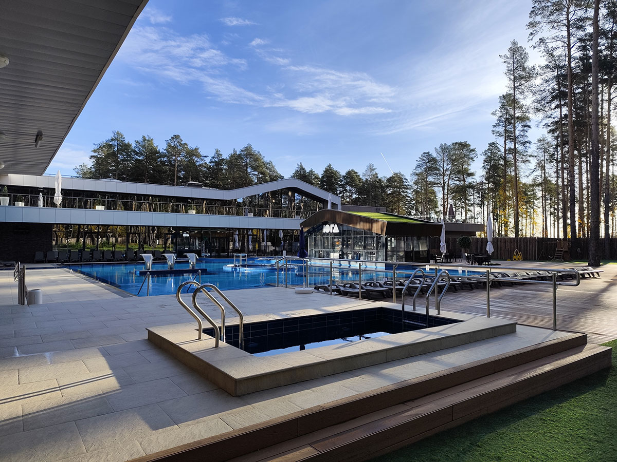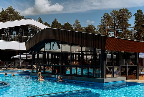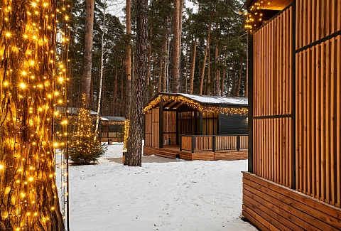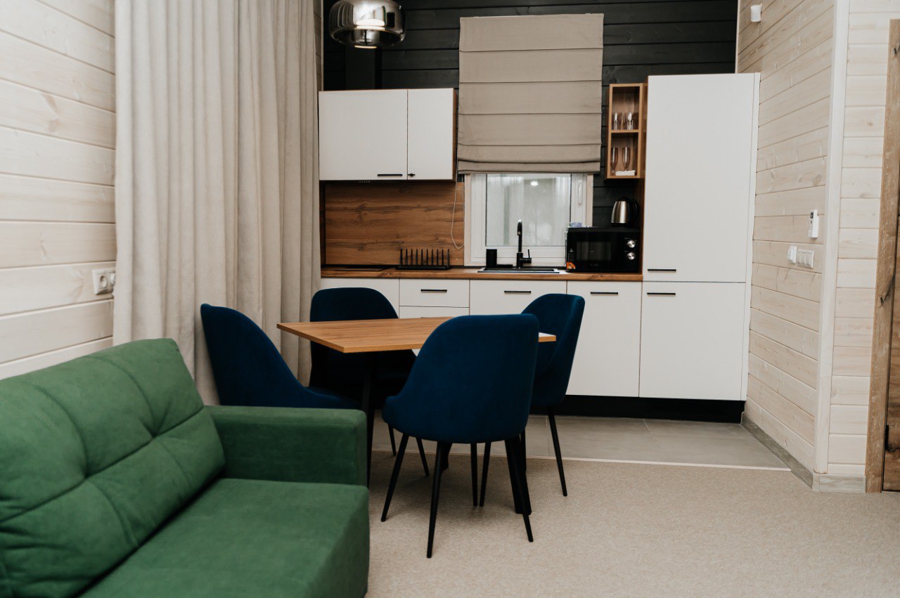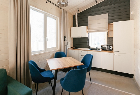 Рядом – жилой комплекс с малоэтажной застройкой, свежий воздух, лес. В 5 километрах – кольцевая дорога. До центра города – получаса пути на автомобиле, до железнодорожного вокзала – 40-45 минут. Комплекс занимает просторную закрытую территорию, на которой разместились 7 гостевых домов – 6 малых одноэтажных и 1 большой двухэтажный. Доступ к домам осуществляется только по специальному браслету. Каждый дом оснащен открытой террасой с мебелью из ротанга, мини-кухней с бытовой техникой и необходимой посудой, комфортной спальными местами, гостевой зоной с диваном и телевизором. В санузле – душ или ванна, набор гигиенических принадлежностей и полотенец, халаты, тапочки, фен. Питание организовано в кафе на 150 мест. В меню - пицца из настоящей итальянской печи, классические салаты, супы и горячие блюда, десерты, выпечка. Со вторника по воскресенье с 9.00 до 12.00 предлагается завтрак в формате «шведского стола». Работает фито-бар и пул-бар у бассейна с большим выбором напитков. Есть отдельная стойка с пенными напитками. Для маленьких гостей предусмотрено детское меню, домашние морсы, мороженое. Есть и вегетарианские блюда. В распоряжении отдыхающих три больших бассейна с артезианской подогреваемой водой общей площадью 935 квадратных метров - открытый, крытый взрослый и детский бассейны, а также splash-зона для развлечения детей. Возле бассейнов оборудована пляжная зона с зонтами и шезлонгами. Работает банный комплекс, включающий несколько тематических бань - русскую парную, баню на дровах, хаммам, пивную, можжевеловую, механическую и детский санариум. Все бани разной вместимости. Самые большие - русская и механическая. Проводятся сеансы общего парения с веерами ауфгусс. Желающие могут посетить СПА-центр. К услугам гостей – массажи, скрабирование, обертывания на выбор, авторские чаи, йол-практика. В комплексе расположен единственный в регионе аттракцион флоубординга –«Сёрф-волна». Он подойдет и для новичков, готовых к новым впечатлениям, и для профессионалов, которые хотят быть в форме круглый год. Катание проходит под руководством опытных инструкторов. Предусмотрены шлемы и спасательные жилеты для соблюдения техники безопасности.