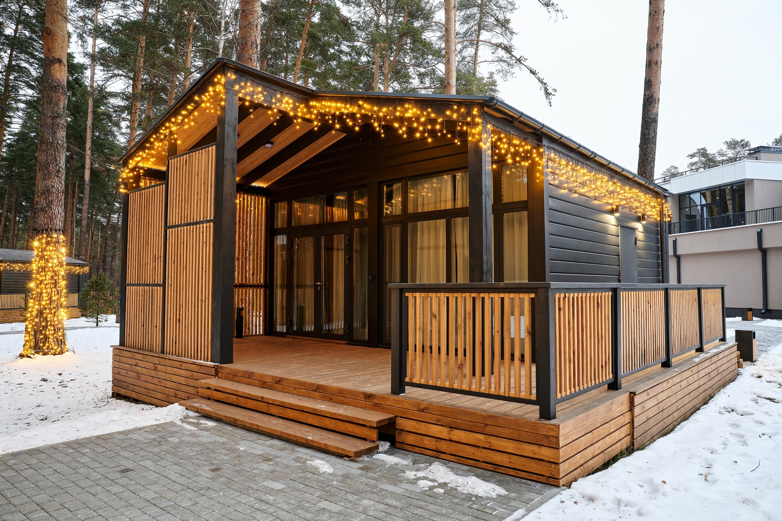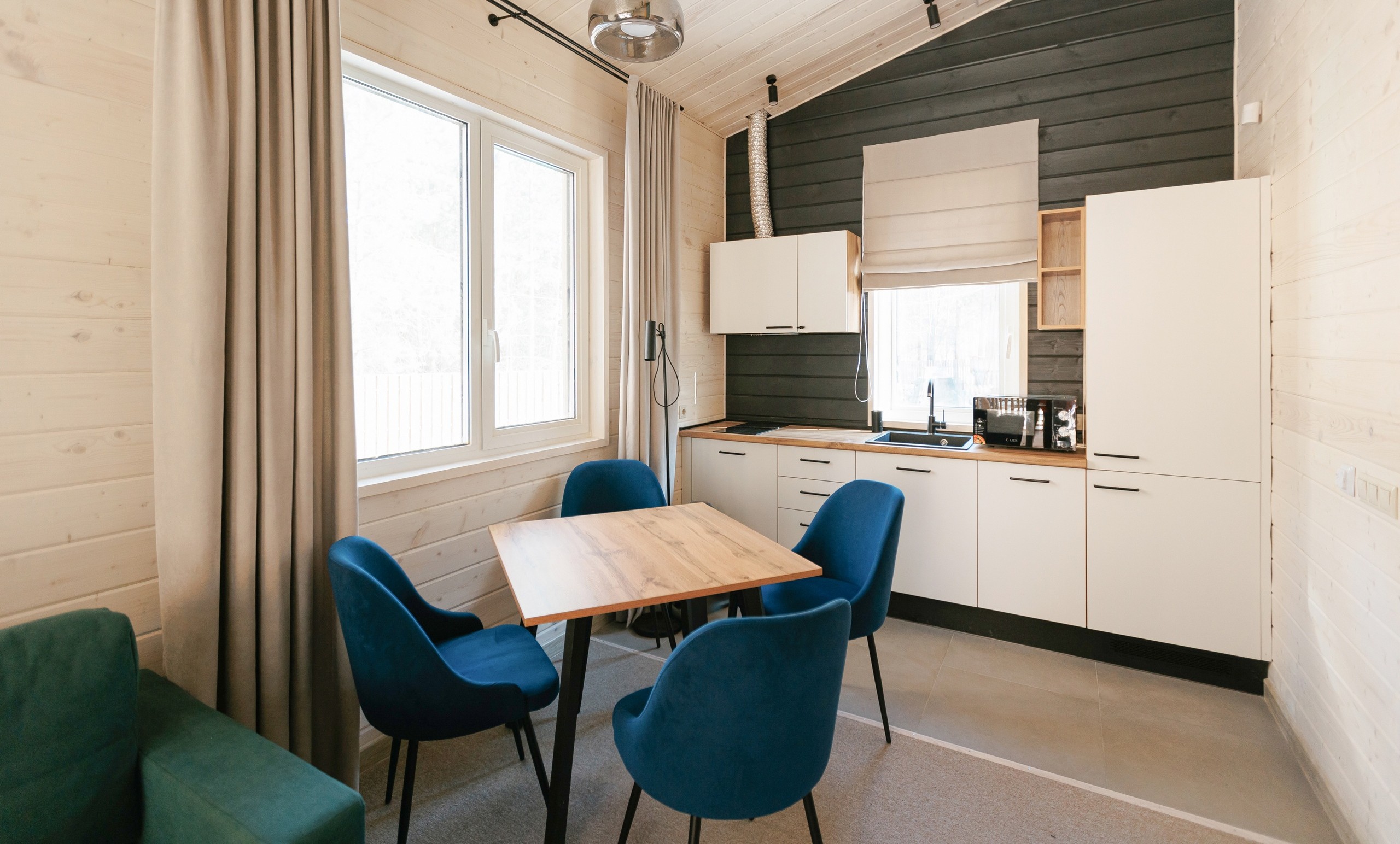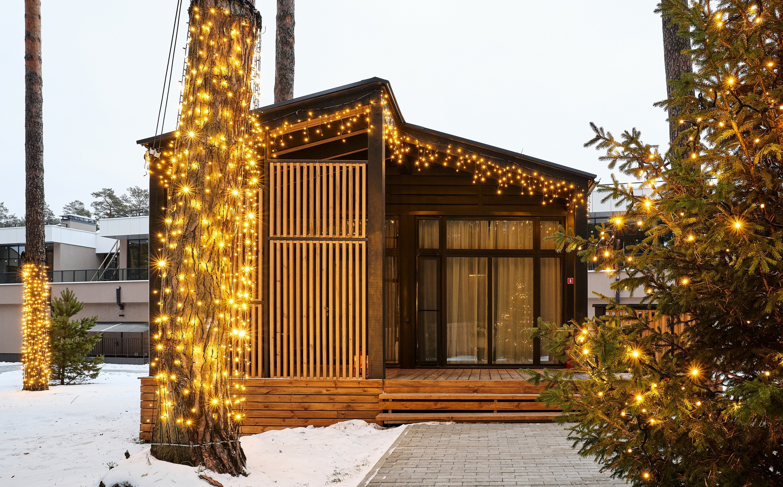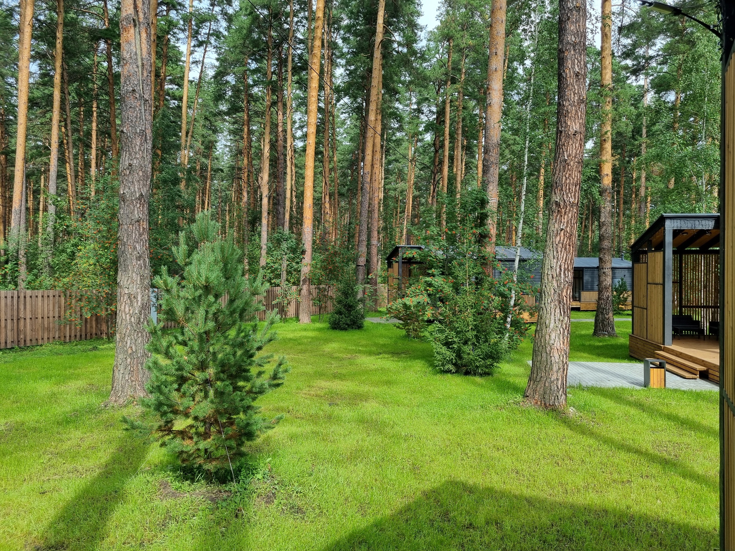 Рядом – жилой комплекс с малоэтажной застройкой, свежий воздух, лес. В 5 километрах – кольцевая дорога. До центра города – получаса пути на автомобиле, до железнодорожного вокзала – 40-45 минут. Комплекс занимает просторную закрытую территорию, на которой разместились 7 гостевых домов – 6 малых одноэтажных и 1 большой двухэтажный. Доступ к домам осуществляется только по специальному браслету. Каждый дом оснащен открытой террасой с мебелью из ротанга, мини-кухней с бытовой техникой и необходимой посудой, комфортной спальными местами, гостевой зоной с диваном и телевизором. В санузле – душ или ванна, набор гигиенических принадлежностей и полотенец, халаты, тапочки, фен. Питание организовано в кафе на 150 мест. В меню - пицца из настоящей итальянской печи, классические салаты, супы и горячие блюда, десерты, выпечка. Со вторника по воскресенье с 9.00 до 12.00 предлагается завтрак в формате «шведского стола». Работает фито-бар и пул-бар у бассейна с большим выбором напитков. Есть отдельная стойка с пенными напитками. Для маленьких гостей предусмотрено детское меню, домашние морсы, мороженое. Есть и вегетарианские блюда. В распоряжении отдыхающих три больших бассейна с артезианской подогреваемой водой общей площадью 935 квадратных метров - открытый, крытый взрослый и детский бассейны, а также splash-зона для развлечения детей. Возле бассейнов оборудована пляжная зона с зонтами и шезлонгами. Работает банный комплекс, включающий несколько тематических бань - русскую парную, баню на дровах, хаммам, пивную, можжевеловую, механическую и детский санариум. Все бани разной вместимости. Самые большие - русская и механическая. Проводятся сеансы общего парения с веерами ауфгусс. Желающие могут посетить СПА-центр. К услугам гостей – массажи, скрабирование, обертывания на выбор, авторские чаи, йол-практика. В комплексе расположен единственный в регионе аттракцион флоубординга –«Сёрф-волна». Он подойдет и для новичков, готовых к новым впечатлениям, и для профессионалов, которые хотят быть в форме круглый год. Катание проходит под руководством опытных инструкторов. Предусмотрены шлемы и спасательные жилеты для соблюдения техники безопасности.