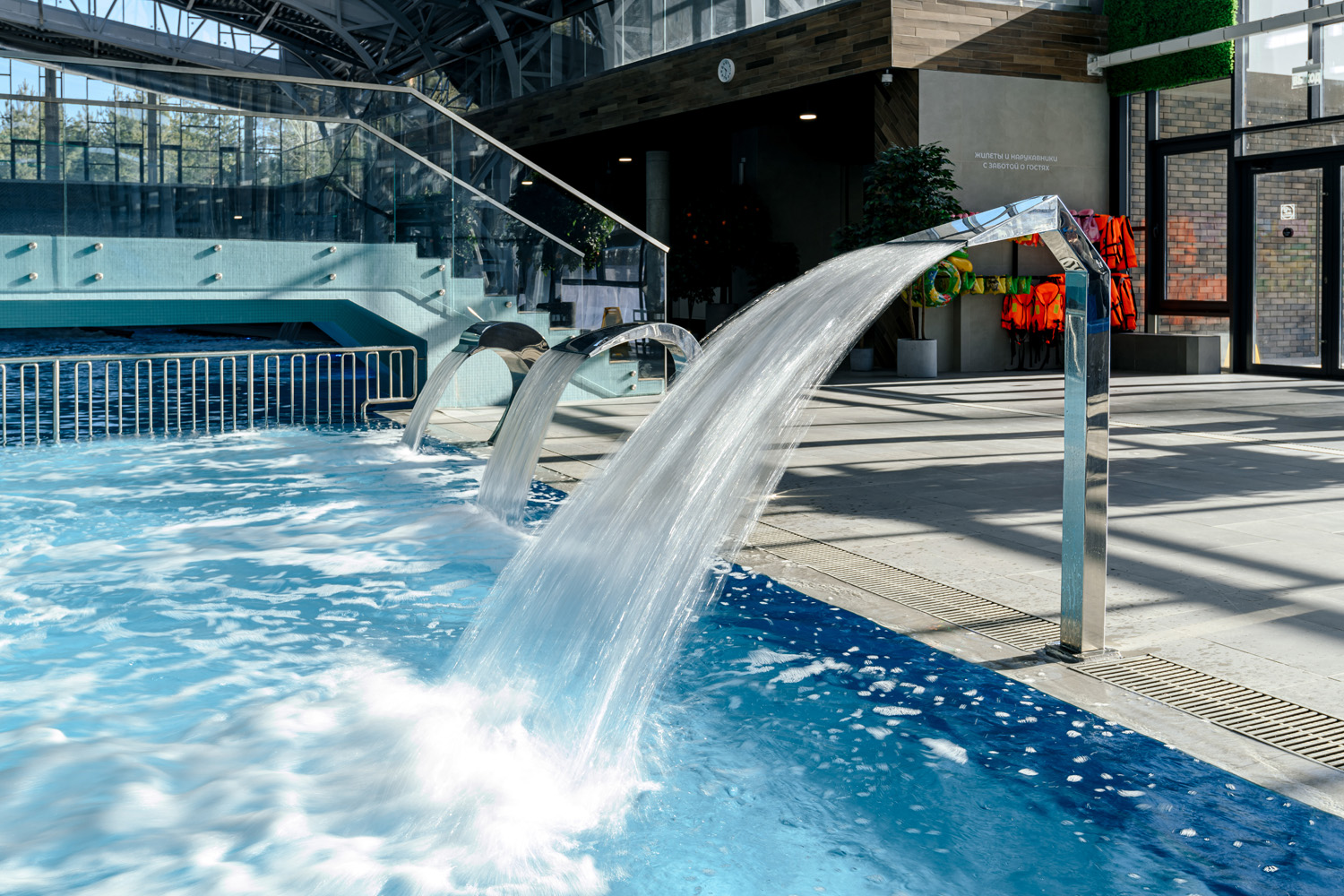 - Прокат нарукавников, жилетов, кругов в бассейне; детские стульчики в кафе