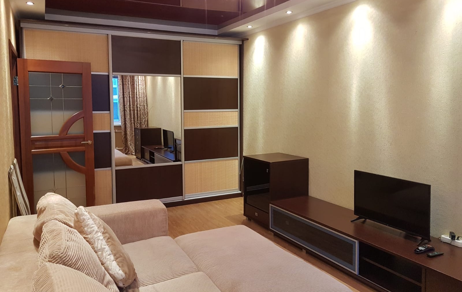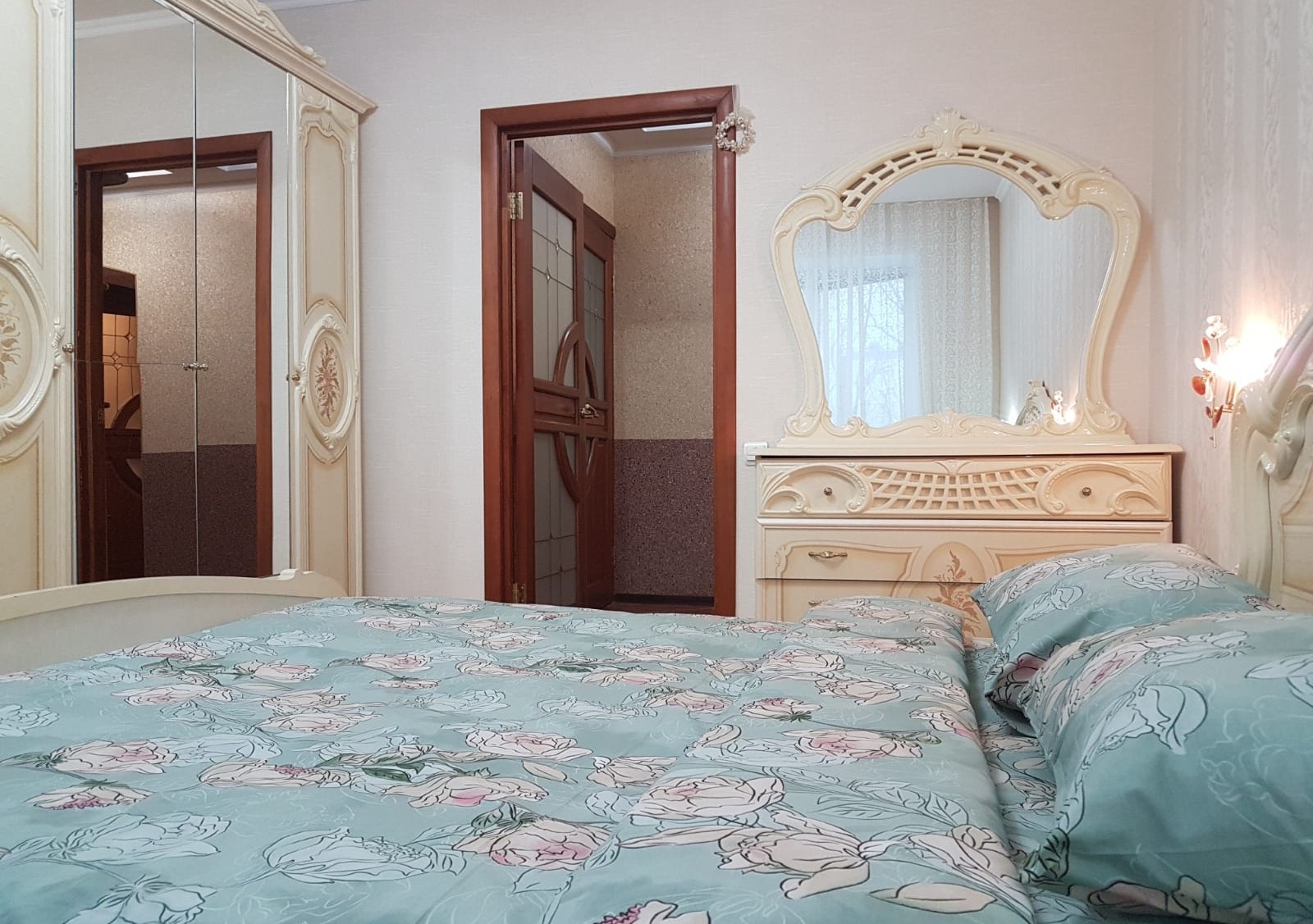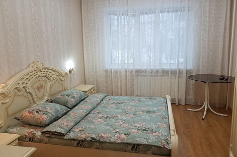 В номере: диван раскладной, комод, кровать двуспальная, кухонная мебель, прикроватные тумбочки, стол, стол обеденный, стулья, шкаф, гладильная доска, духовой шкаф, микроволновая печь, набор посуды, плита газовая, посудомоечная машина, стиральная машина, телевизор, утюг, холодильник, электрочайник