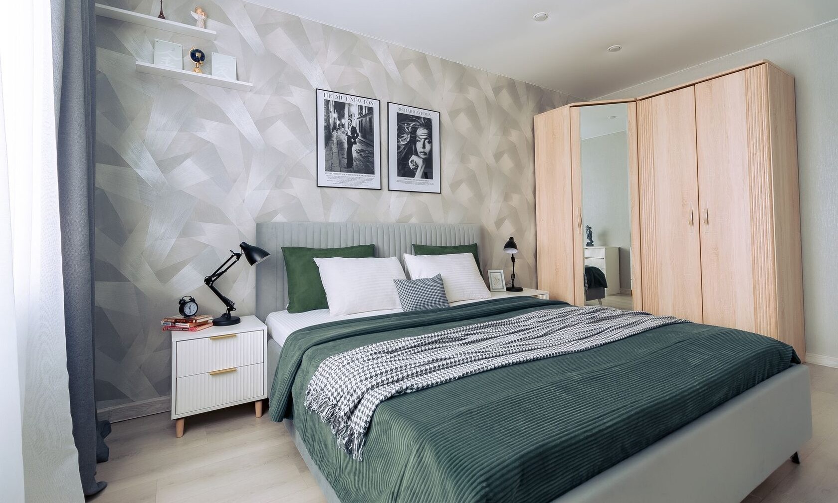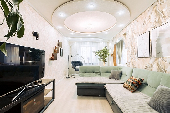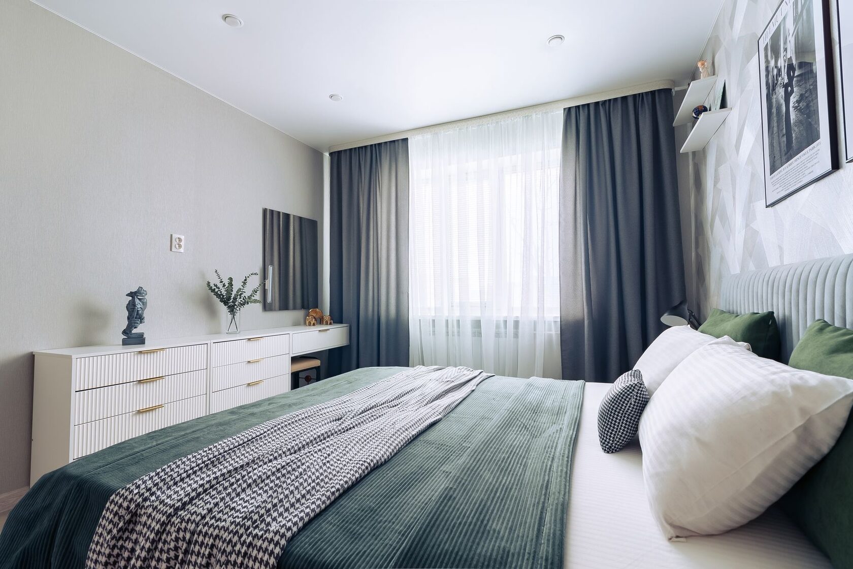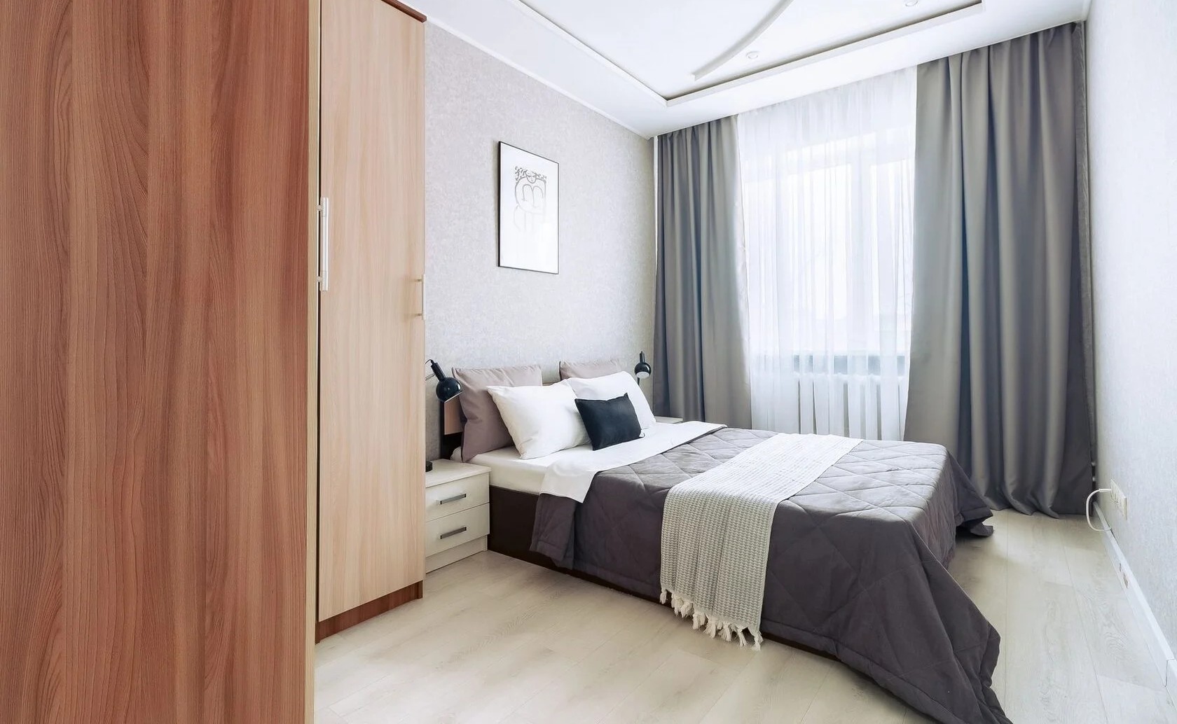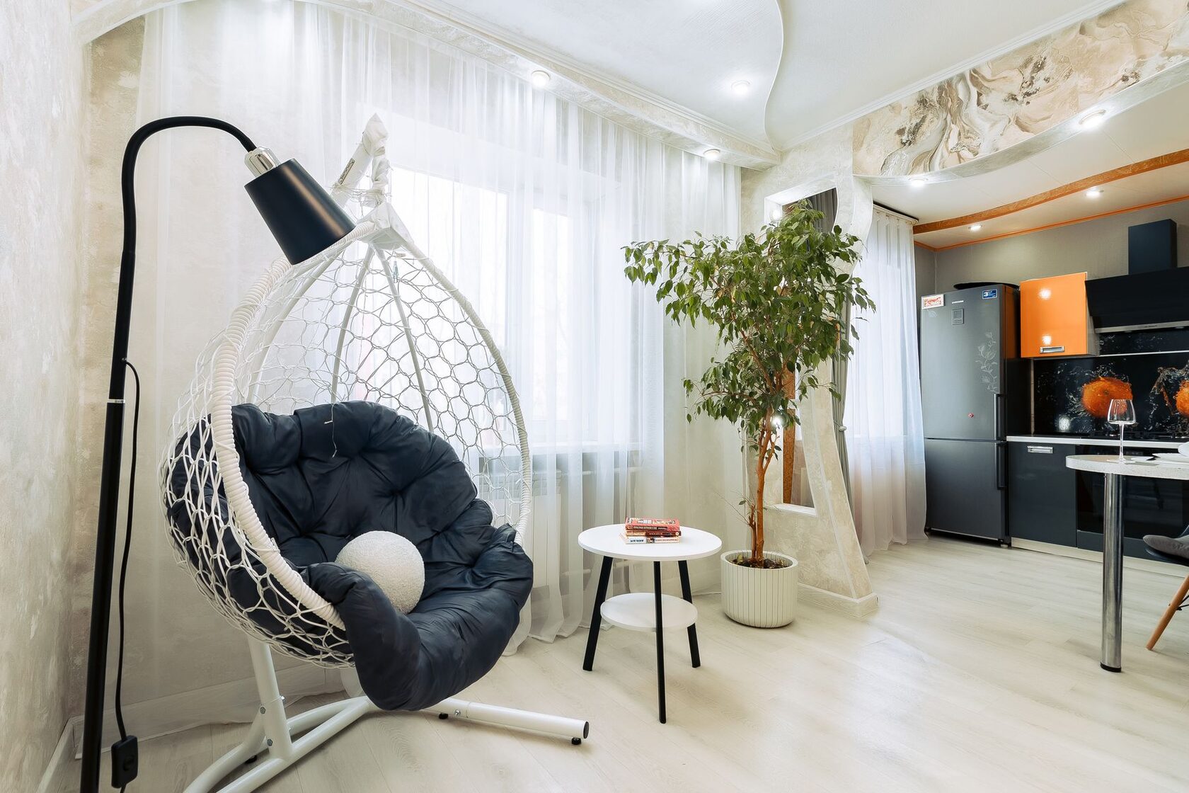 Для гостей, путешествующих на автомобиле, во дворе есть парковка. Для размещения гостей предлагаются трехкомнатные апартаменты с красивым дизайнерским интерьером. Две изолированные спальни оснащены комфортными двуспальными кроватями с ортопедическими матрасами, шкафами для вещей. Третье двуспальное место — большой раскладной диван в гостиной, где также расположено удобное кресло-капля для отдыха. В каждой комнате установлены ЖК-телевизоры с кабельными каналами, доступен беспроводной интернет. Гостиная гармонично переходит в кухню. Кухня оснащена всей необходимой мебелью и бытовой техникой: газовой плитой, духовым шкафом, холодильником, микроволновой печью, электрочайником, а также полным комплектом посуды на всех гостей. Обеденная зона представлена в виде лаконичной барной стойки. Для ухода за одеждой предусмотрены стиральная машина, сушилка для белья, утюг и гладильная доска. Санузел оборудован современной душевой кабиной, для гостей подготовлены тапочки, туалетные принадлежности и фен. Апартаменты идеально подходят как для коротких, так и для длительных поездок.