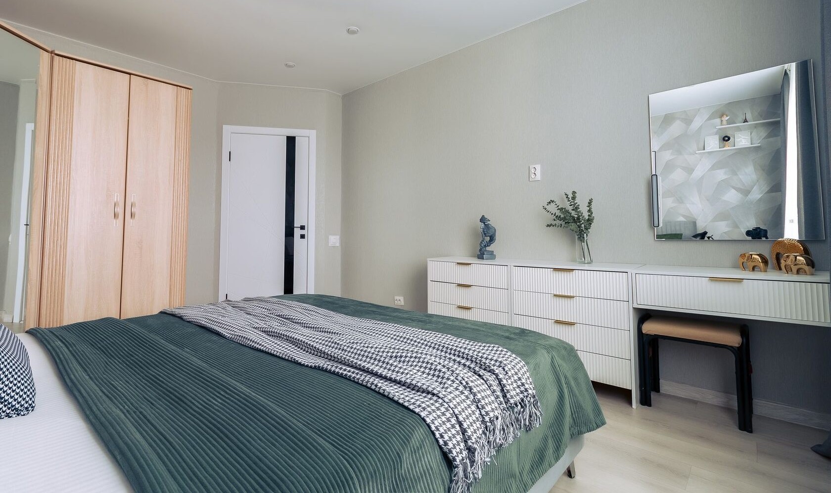 В номере: диван раскладной, комод, кровать двуспальная, прикроватные тумбочки, стол обеденный, стулья, шкаф, гладильная доска, духовой шкаф, микроволновая печь, набор посуды, плита газовая, стиральная машина, сушилка для белья, телевизор, утюг, холодильник, электрочайник
