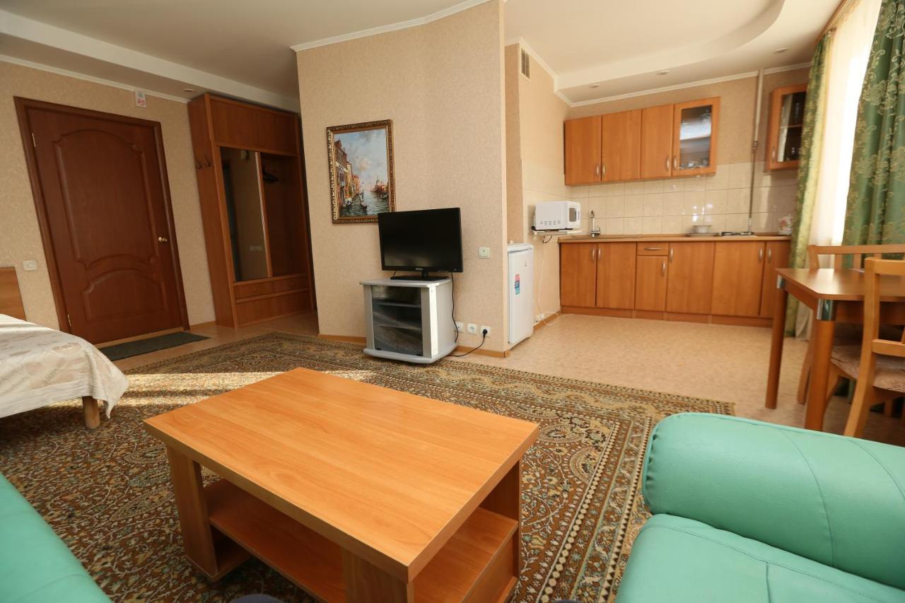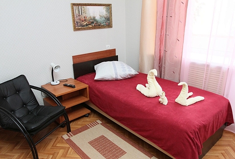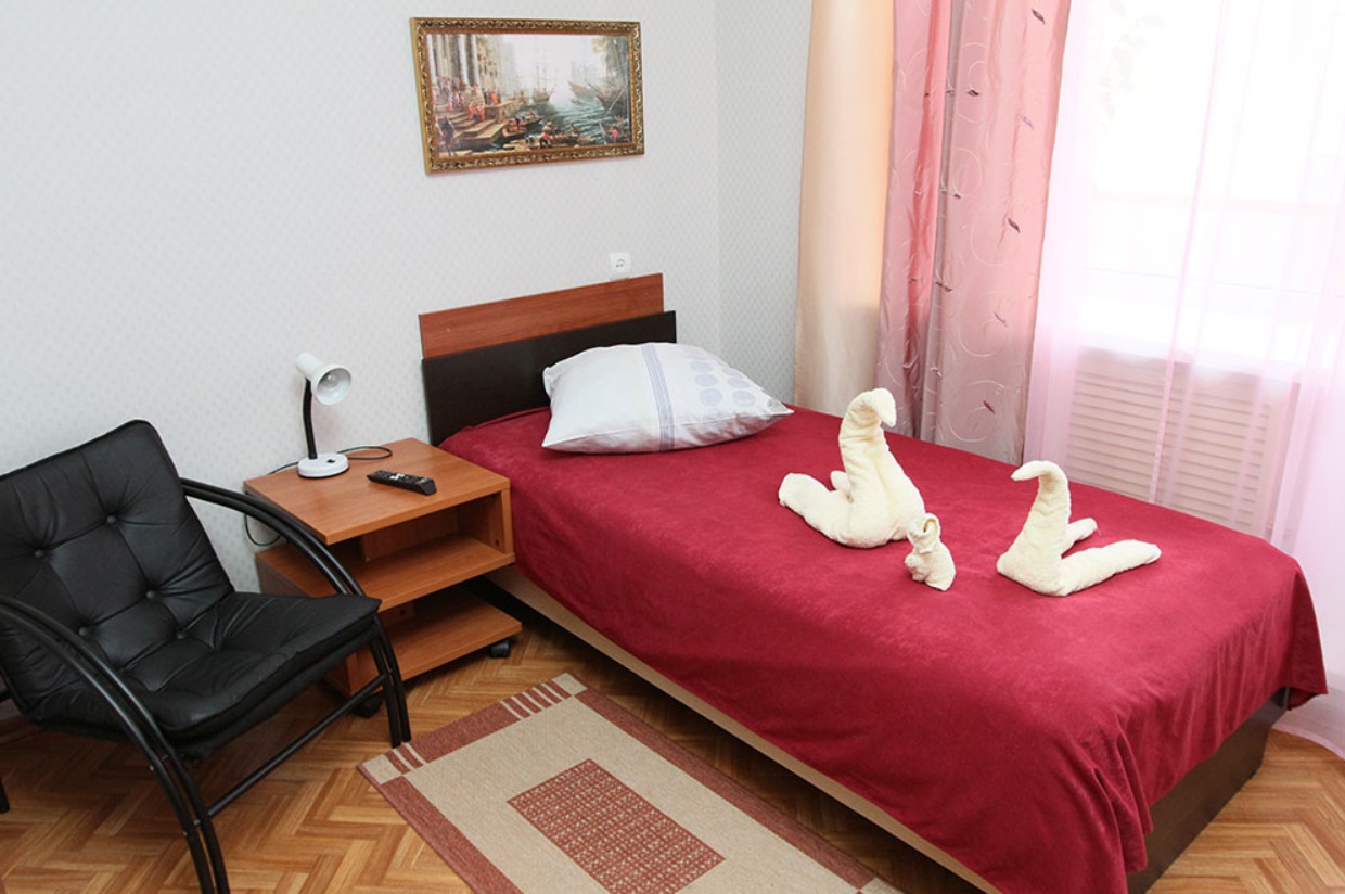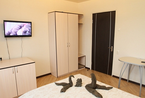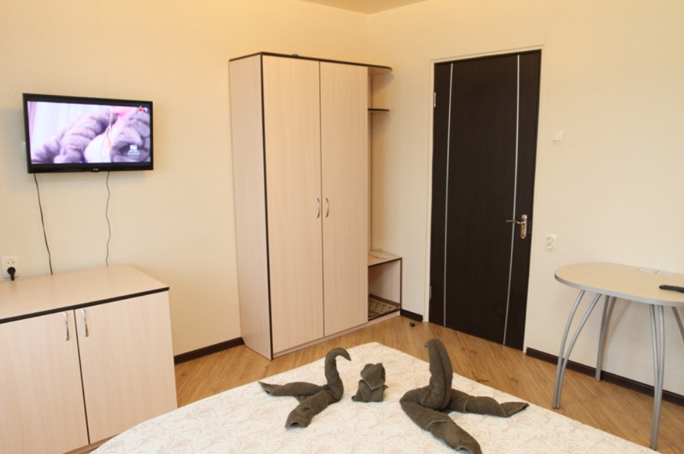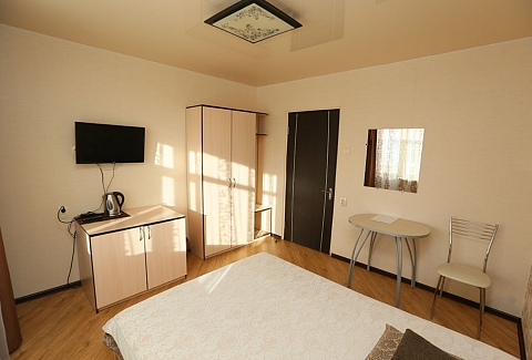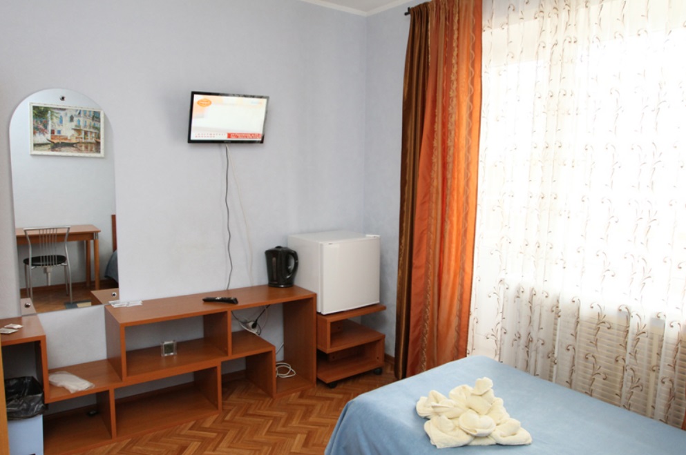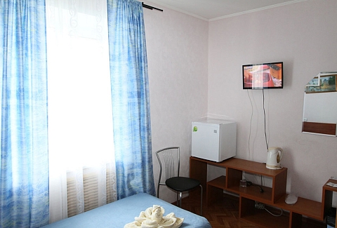 Номерной фонд представлен разным уровнем комфорта и вместимости, расположился он в 9-этажном жилом доме с лифтом. В комнатах для отдыхающих установлена комфортабельная мягкая мебель, шкаф, работает высокоскоростной интернет, есть телевизор, мини-холодильник, электрический чайник. Санузел оснащен современной сантехникой. Гостям предоставляются туалетные принадлежности, есть фен, чтобы высушить волосы.