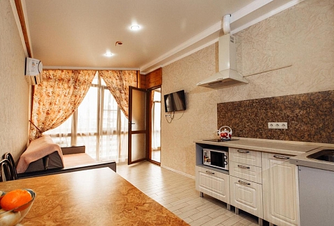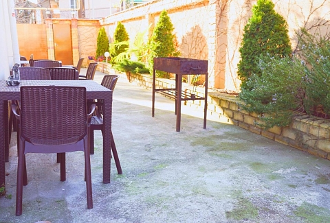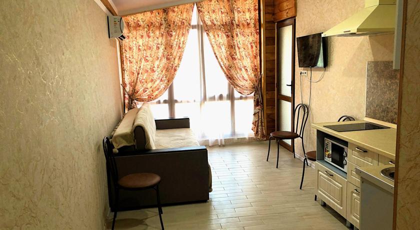 За 10 минут можно доехать до дельфинария, океанариума или же до знаменитого Олимпийского парка.Отель, расположенный в 750 метрах от берега моря, состоит из двух трехэтажных корпусов с уютными двориками, находящихся на расстоянии друг от друга. В отеле 17 номеров разных категорий, в каждом предусмотрена ванная комната, есть кондиционер, телевизор, а в Апартаментах - собственная кухня.Гости из стандартных номеров могут воспользоваться общей кухней - там есть вся необходимая посуда и техника. Также среди услуг - беспроводной интернет и парковочные (неохраняемые) места возле корпусов.До моря и галечного оборудованного пляжа пешком можно дойти за 10 минут по тенистой дороге.