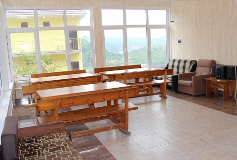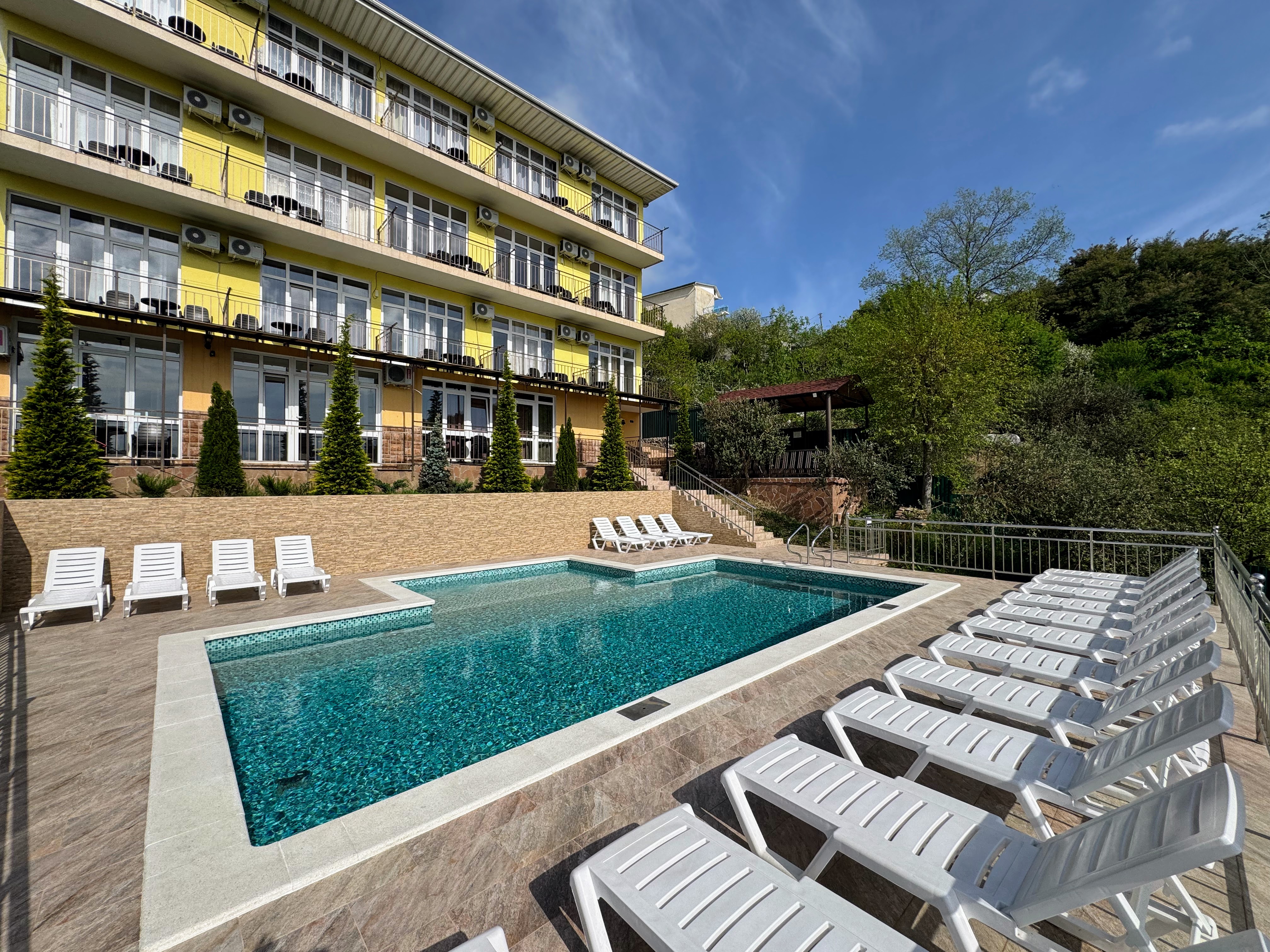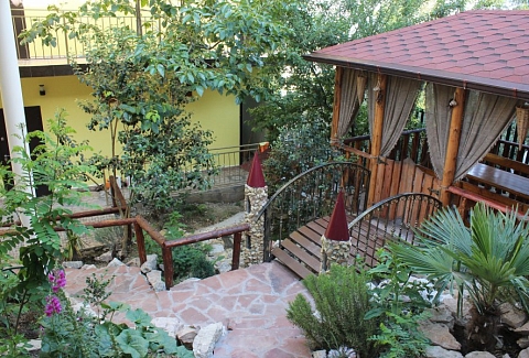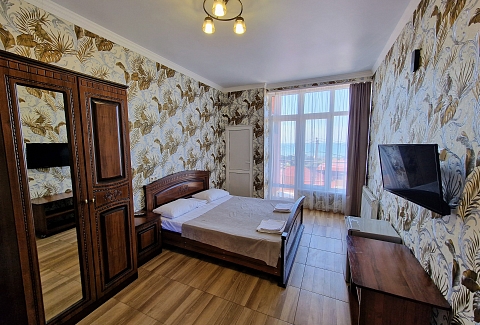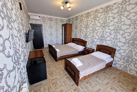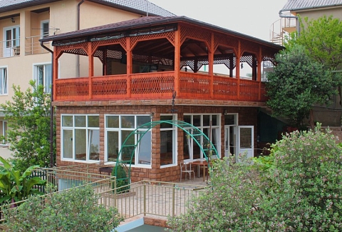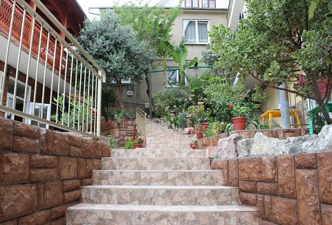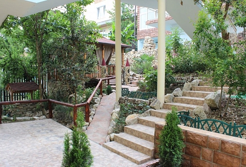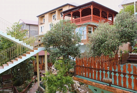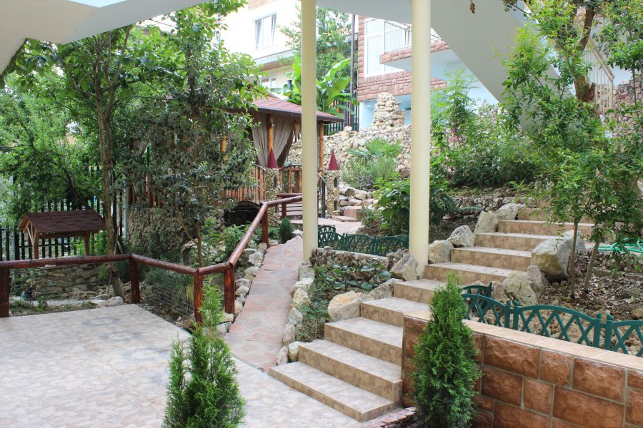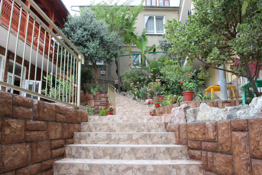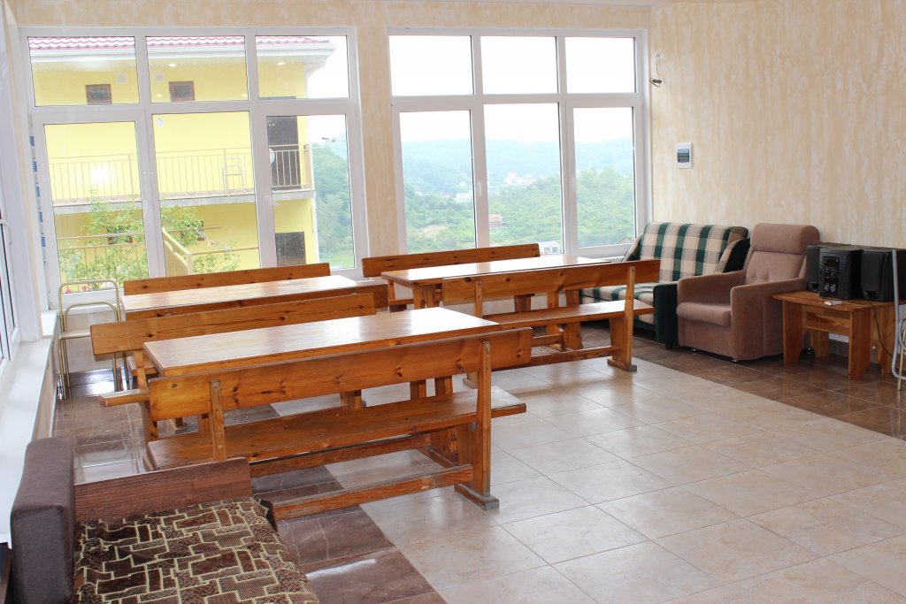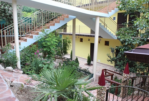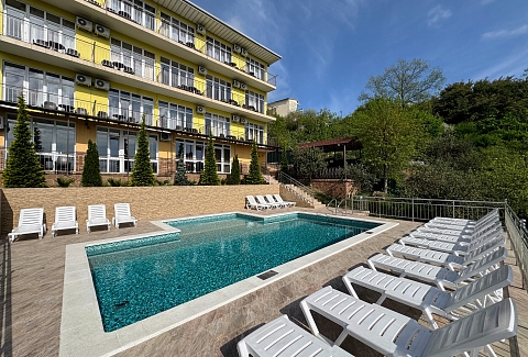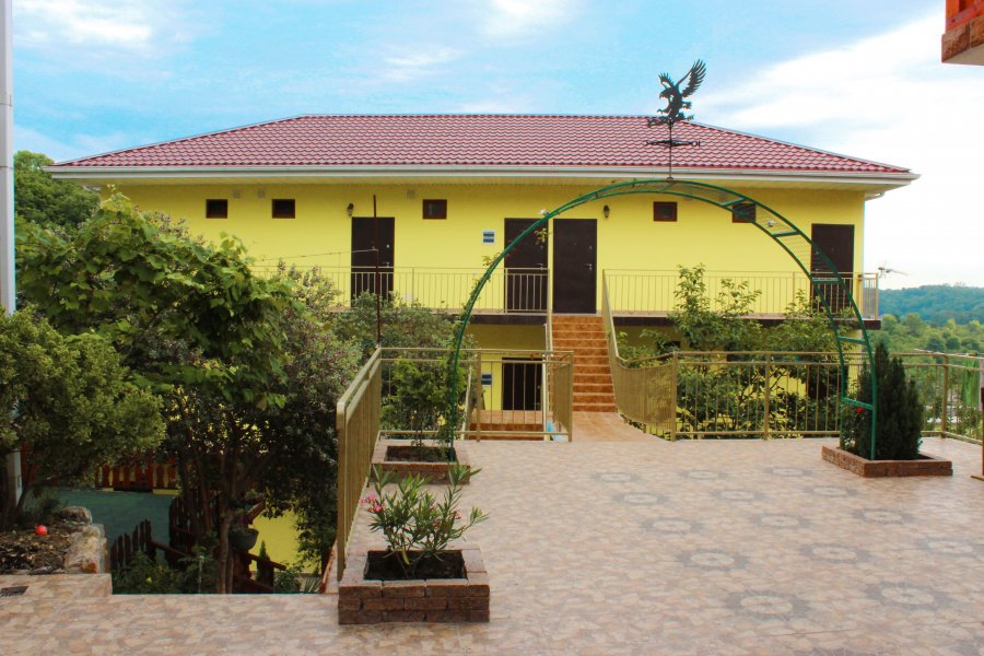 В 30 метрах от отеля работает продуктовой магазин, в доступной близости — кафе, бары, рестораны, дискотеки, магазины и торгово-развлекательные центры. До железнодорожного вокзала - 3,5 километра, а до международного аэропорта - 7,5.Комплекс занимает благоустроенную территорию в спокойном и уютном районе. Гостевой дом включает два трехэтажных спальных корпуса (без лифта). Отдыхающих ожидают номера всеми удобствами, включая собственную ванную комнату, кондиционер, телевизор и балкон с местом для отдыха. Из окон открываются живописные панорамы моря или Кавказских гор.В гостевом доме есть столовая, и оборудована кухня для самостоятельного приготовления пищи. Всем отдыхающим доступны услуги прачечной и беспроводной интернет. Для детей во внутреннем дворике организована игровая площадка с горками.До морского побережья 15-20 минут ходьбы, для гостей отеля к морскому побережью предусмотрен трансфер, регулярно курсирующий в сезон. Отдыхающие могут выбрать, как общий городской пляж, так и воспользоваться пляжами санаториев. Все пляжи покрыты галькой, оснащены лежаками, навесами, шезлонгами.