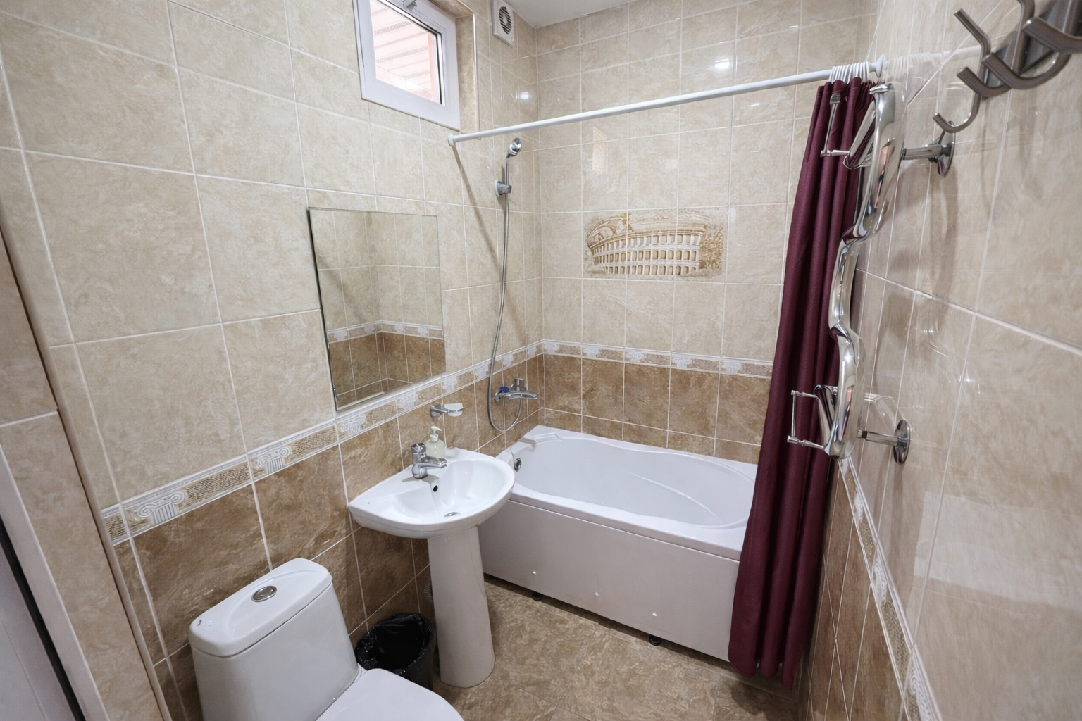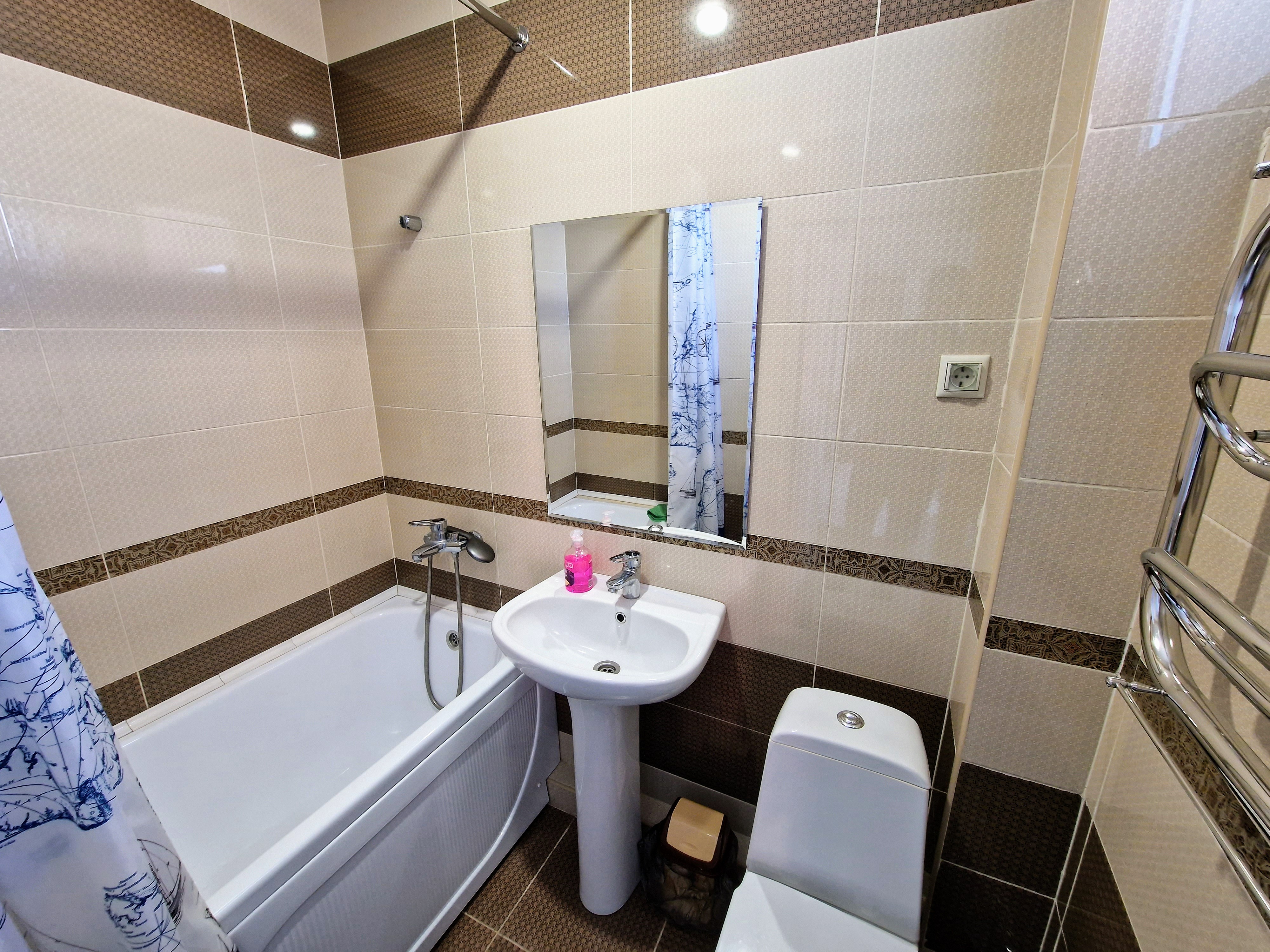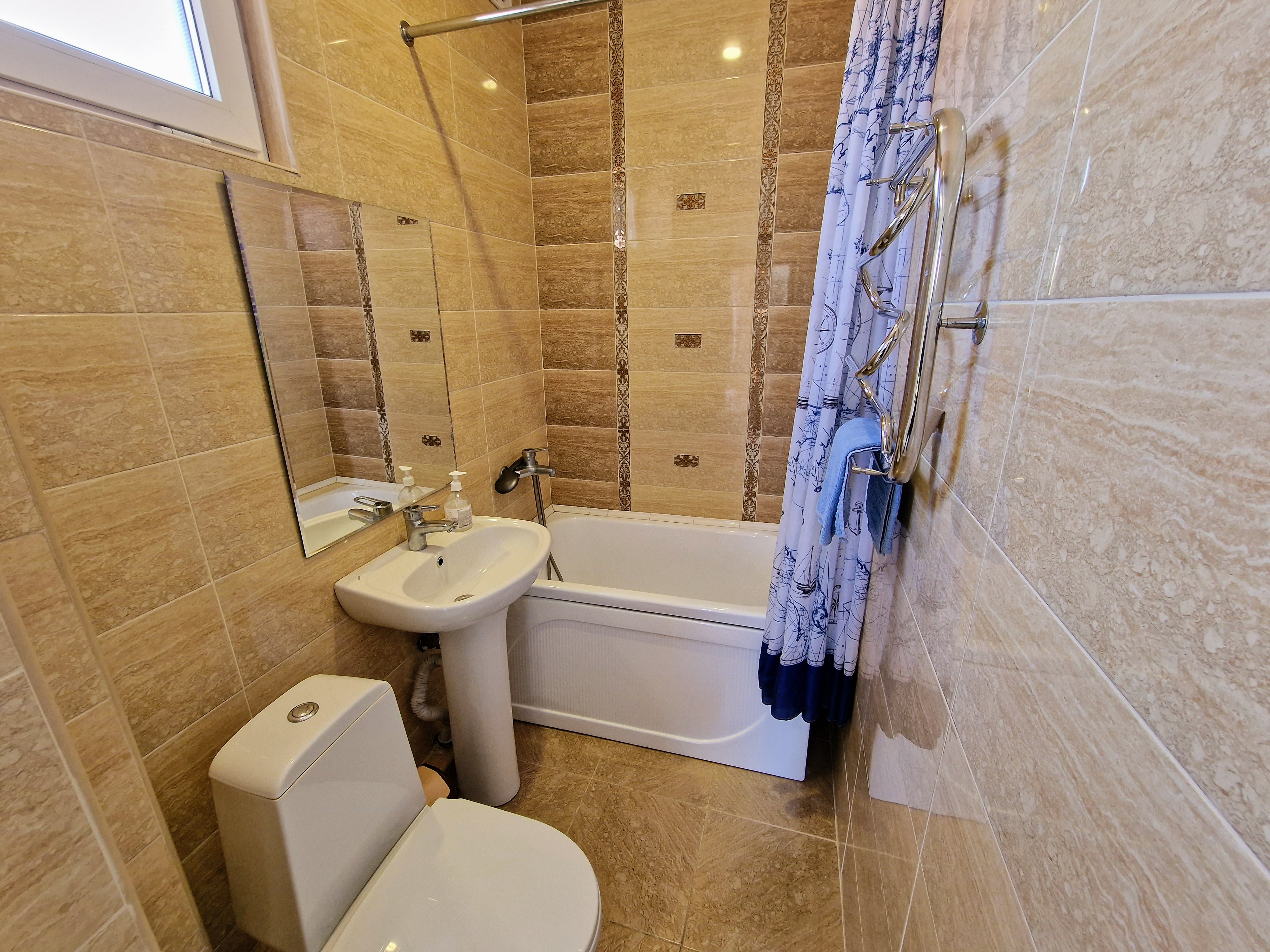 Санузел: с ванной, туалетные принадлежности, фен