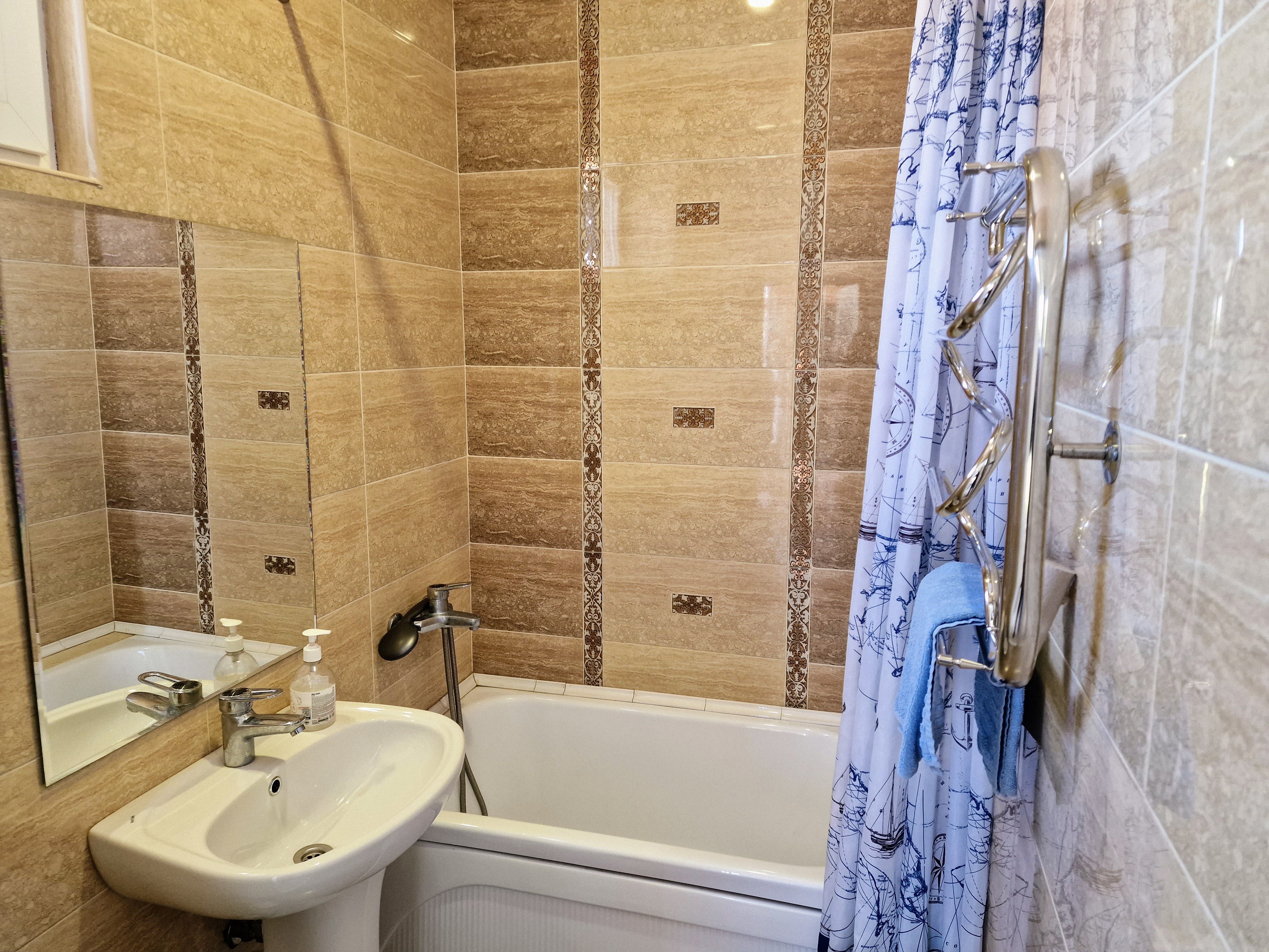 Санузел: с душем, туалетные принадлежности, фен