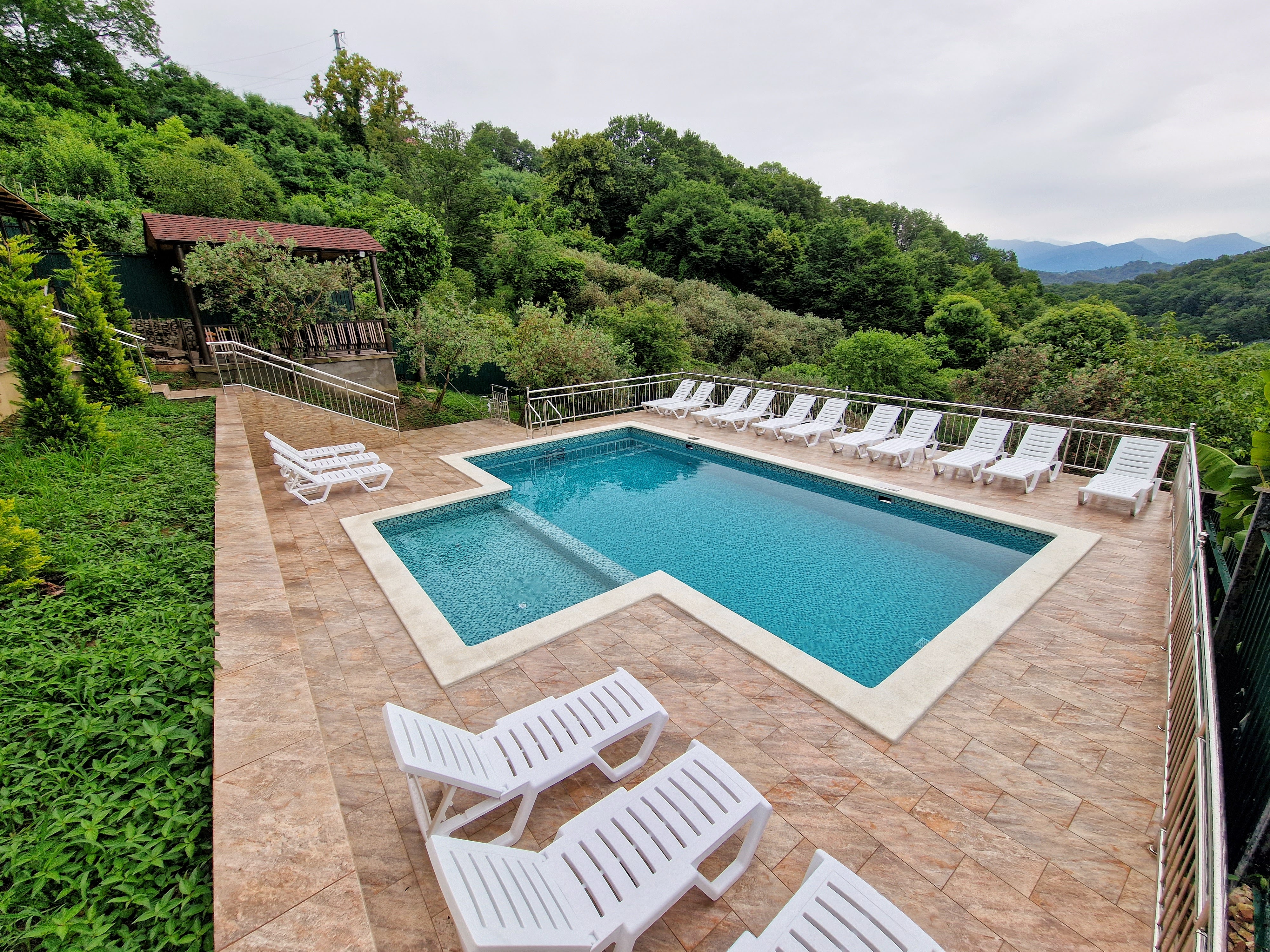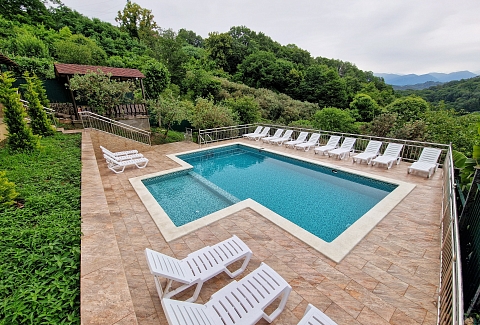 - бассейн с подогревом и детской зоной, шезлонги