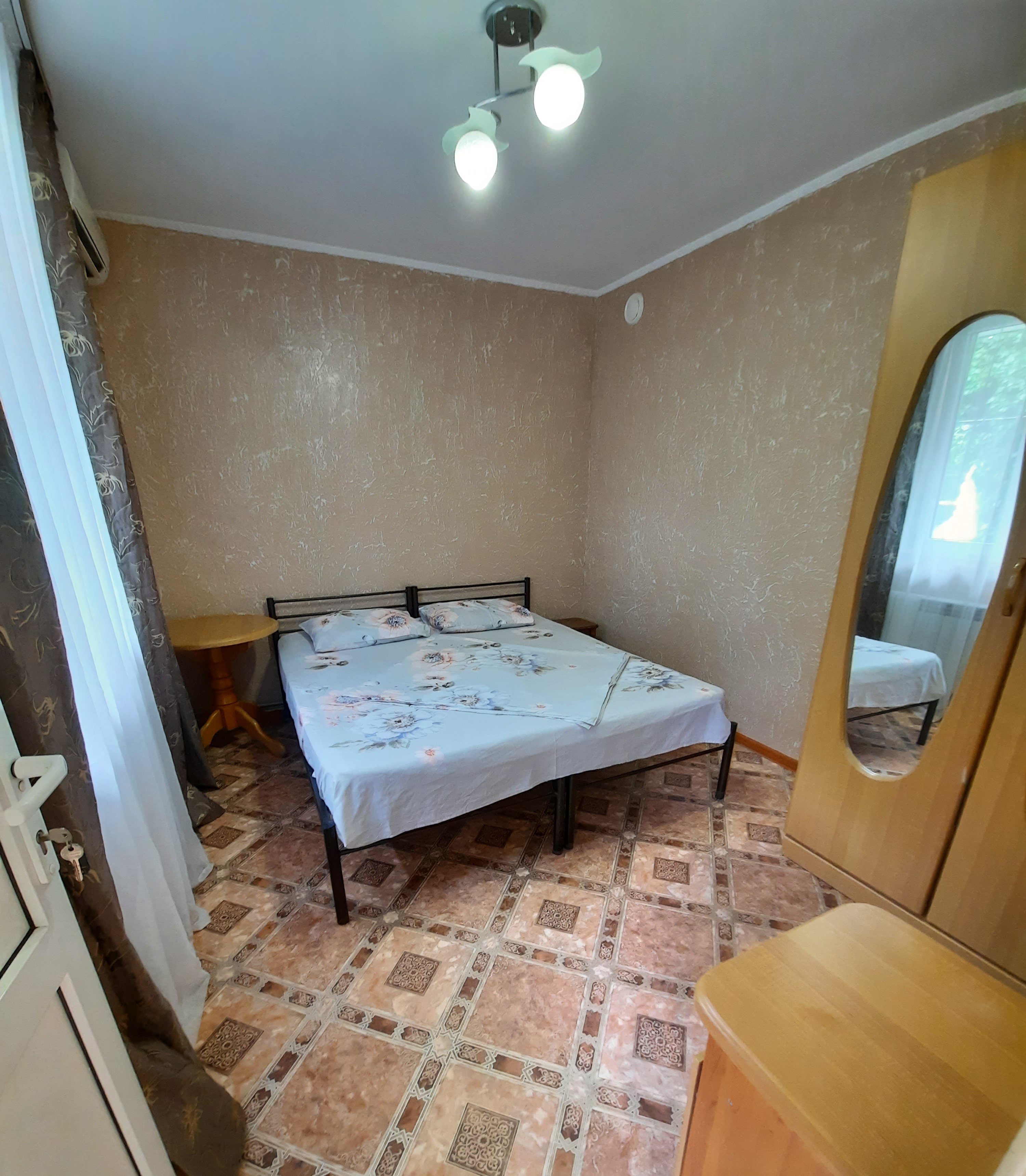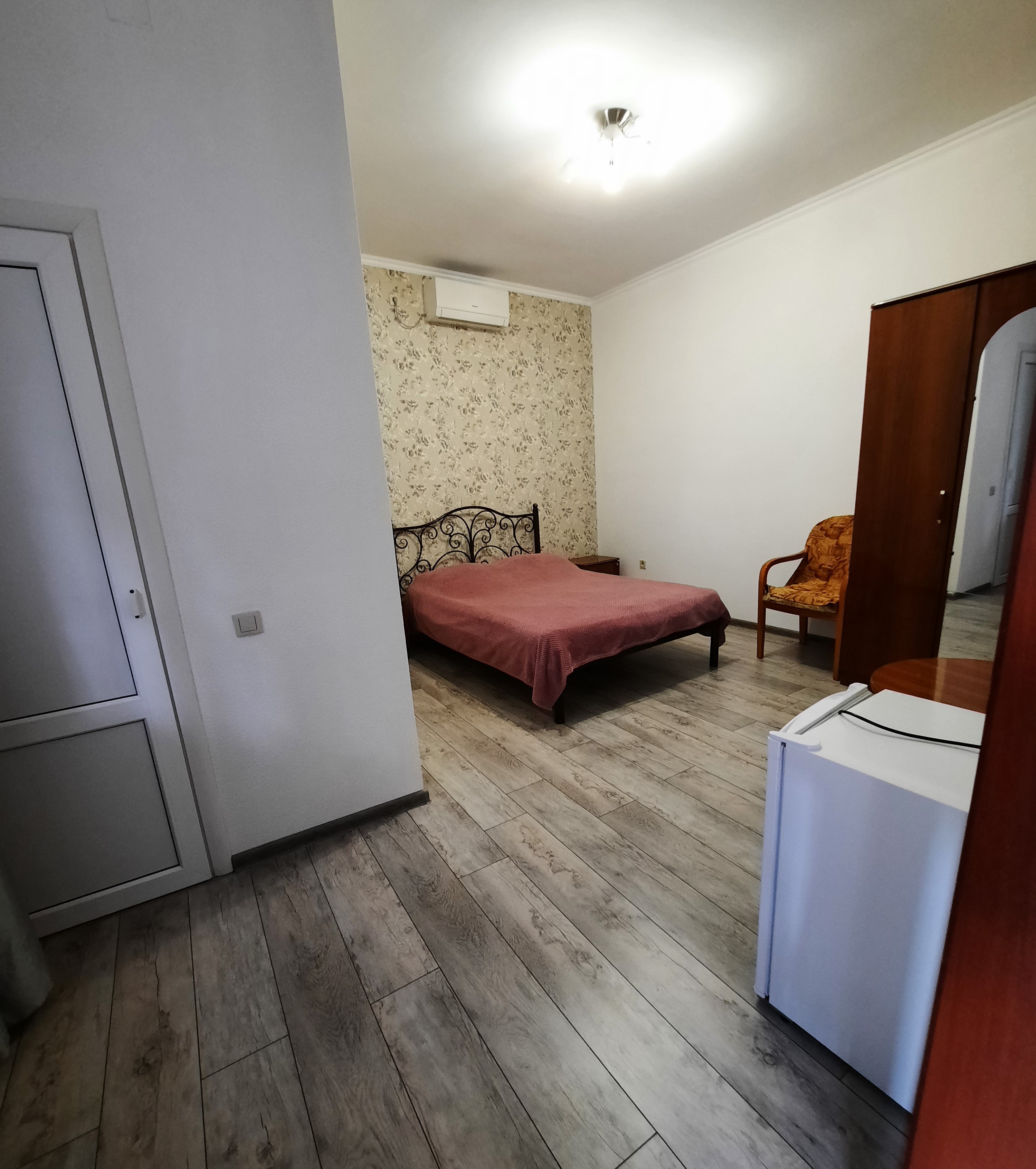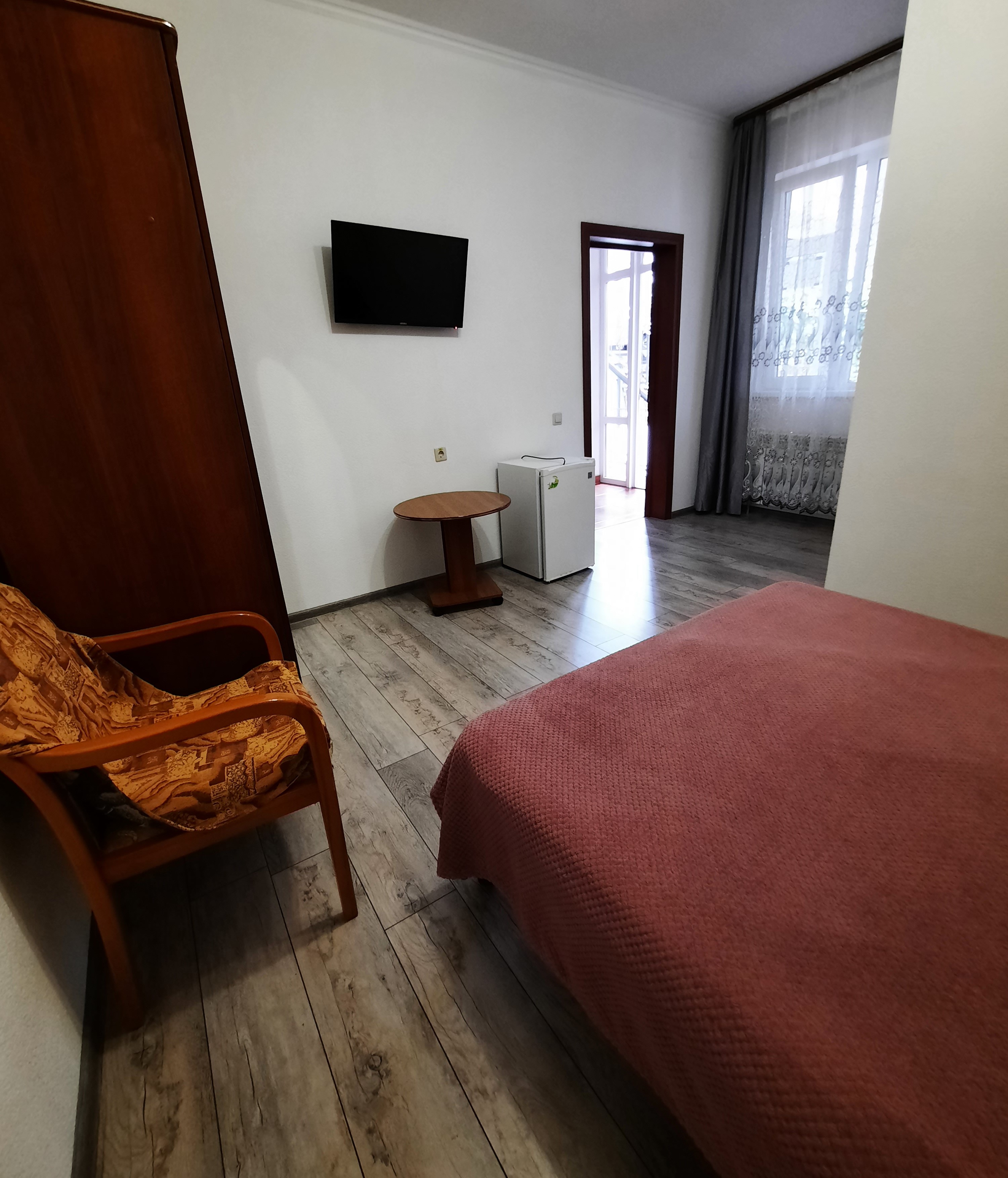 В распоряжении гостей двух- и трехместные номера с удобствами. В каждом номере имеется санузел с душем, установлена сплит-система, есть телевизор и мини-холодильник.Для гостей организована общая кухня, есть общие зоны для отдыха. Также среди услуг — беспроводной интернет, парковка прачечная. В 5 минутах ходьбы — галечный оборудованный пляж с раздевалками, навесами, шезлонгами и большим выбором водных развлечений.