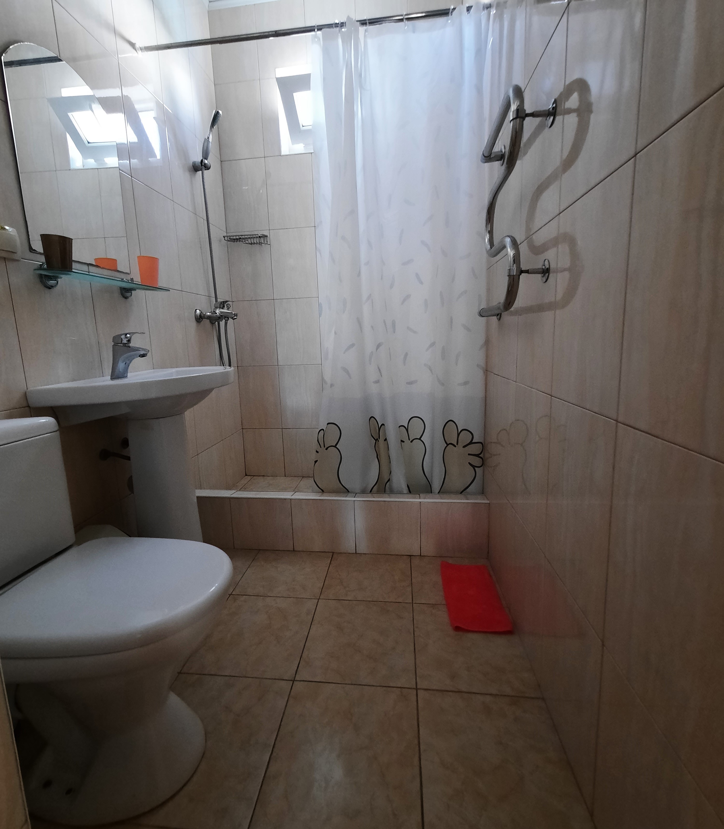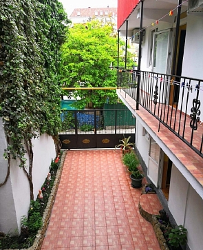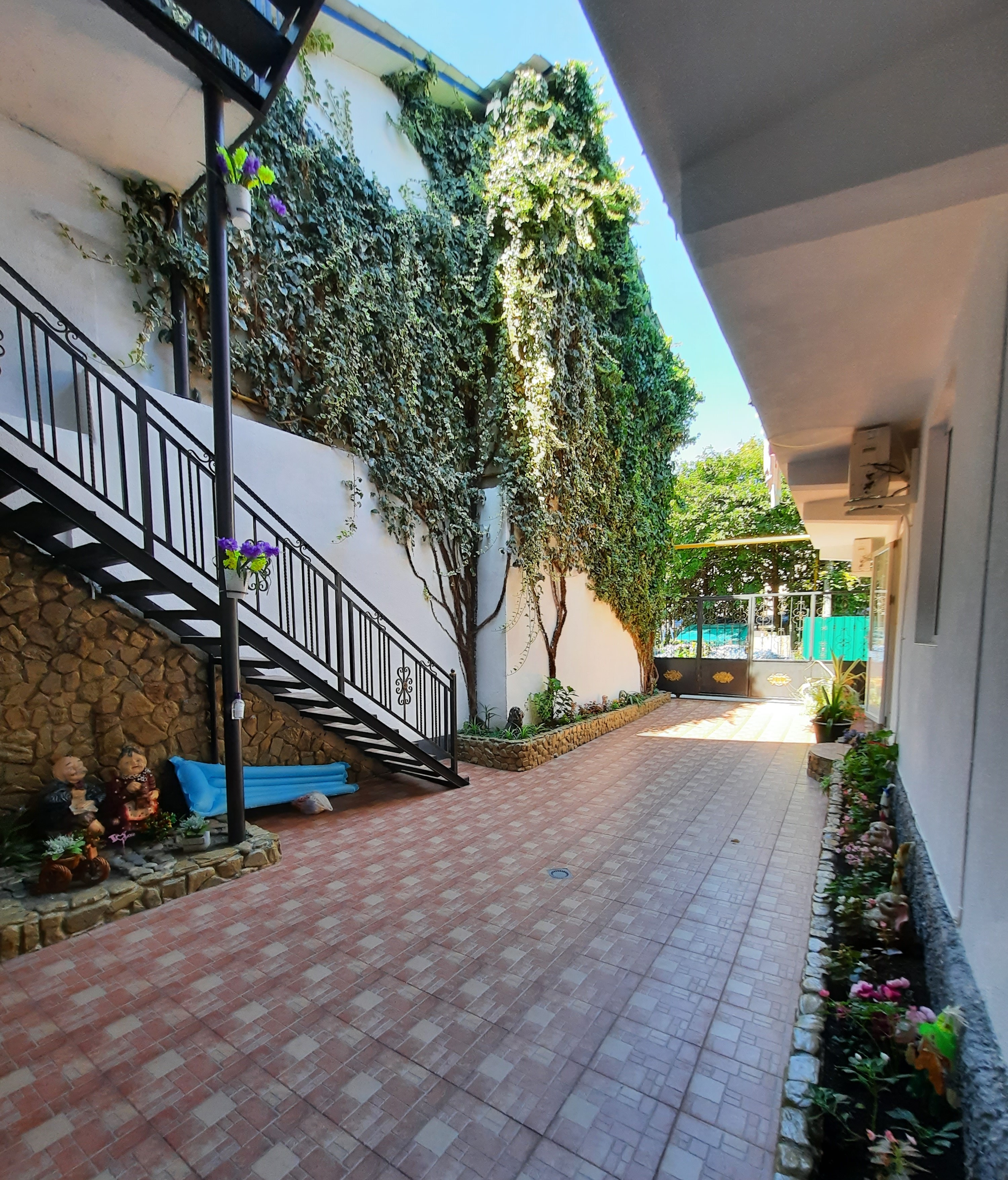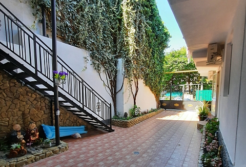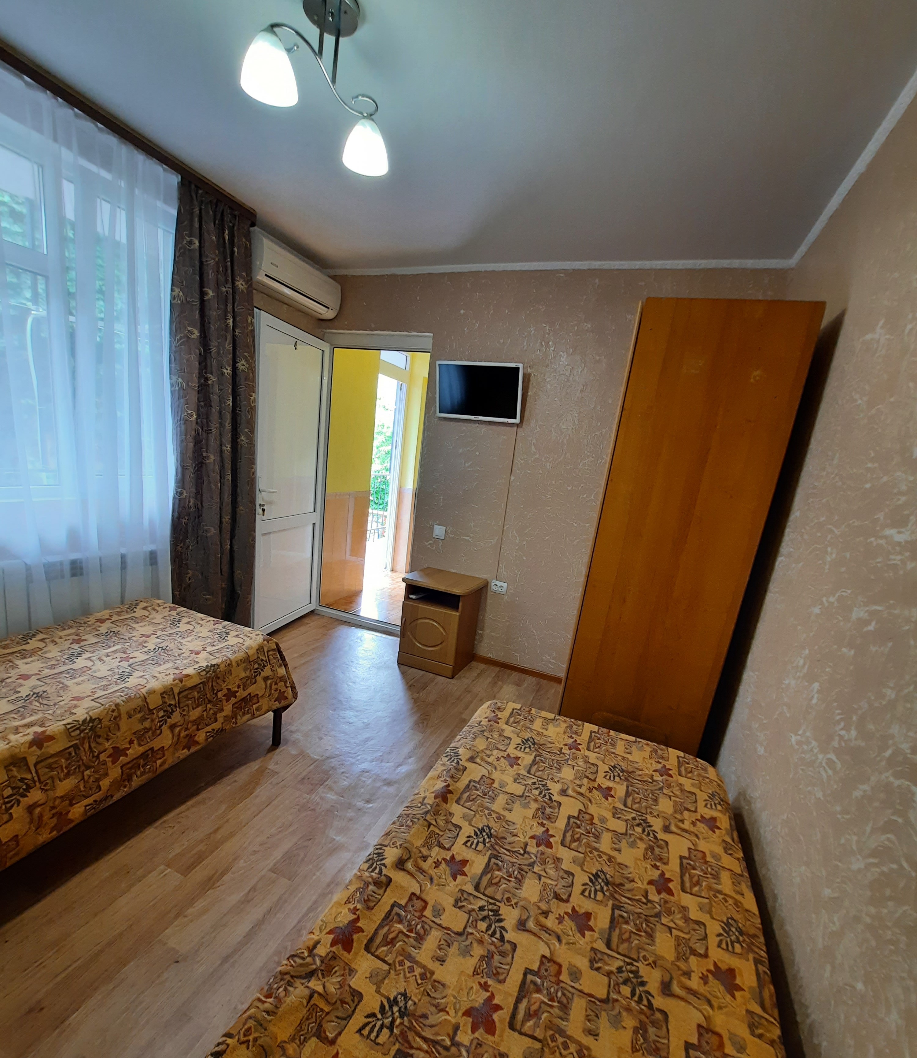В распоряжении гостей двух- и трехместные номера с удобствами. В каждом номере имеется санузел с душем, установлена сплит-система, есть телевизор и мини-холодильник.Для гостей организована общая кухня, есть общие зоны для отдыха. Также среди услуг — беспроводной интернет, парковка прачечная. В 5 минутах ходьбы — галечный оборудованный пляж с раздевалками, навесами, шезлонгами и большим выбором водных развлечений.