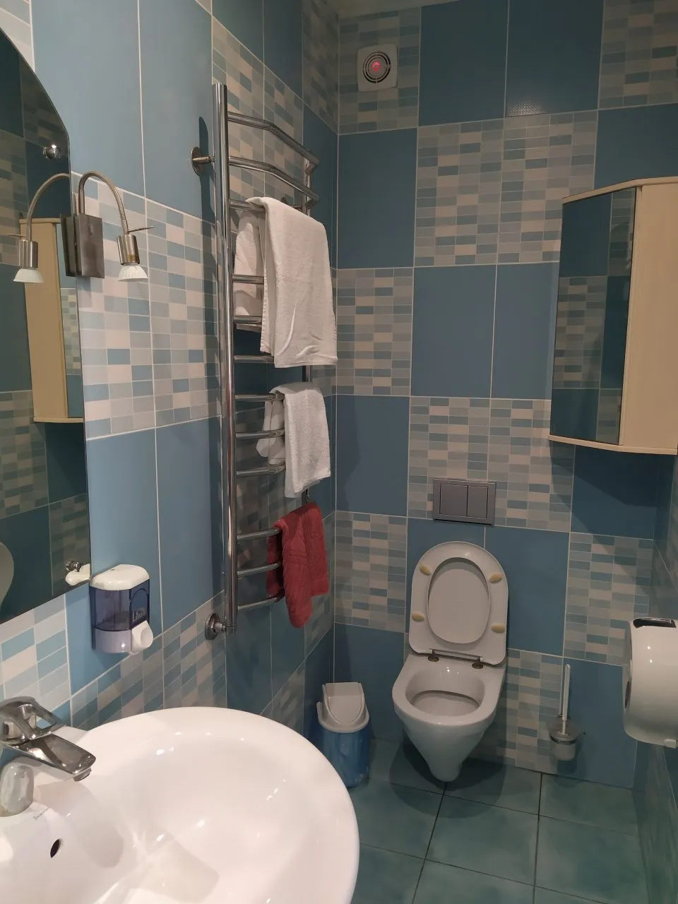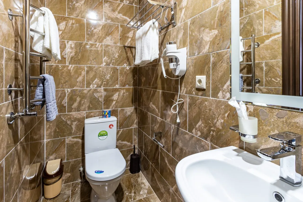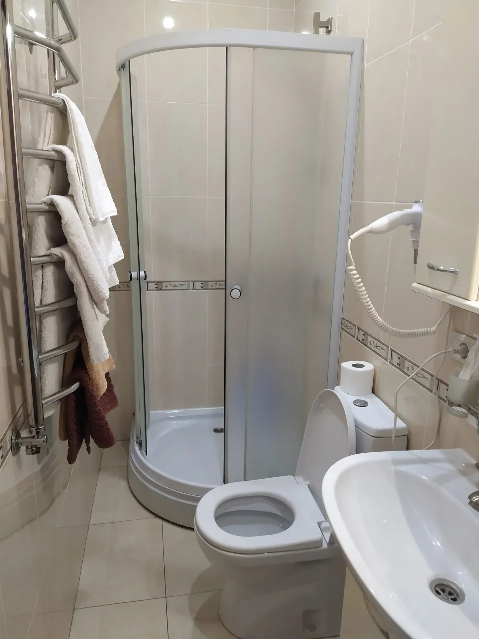 Санузел: с душем, туалетные принадлежности, фен