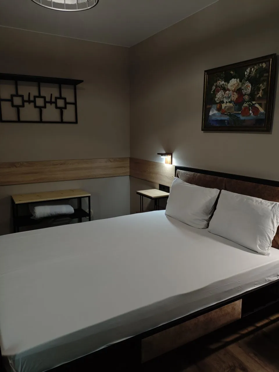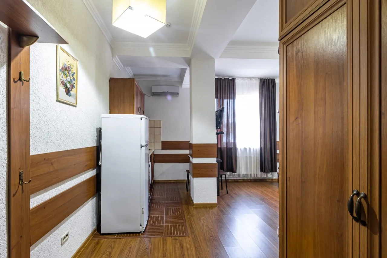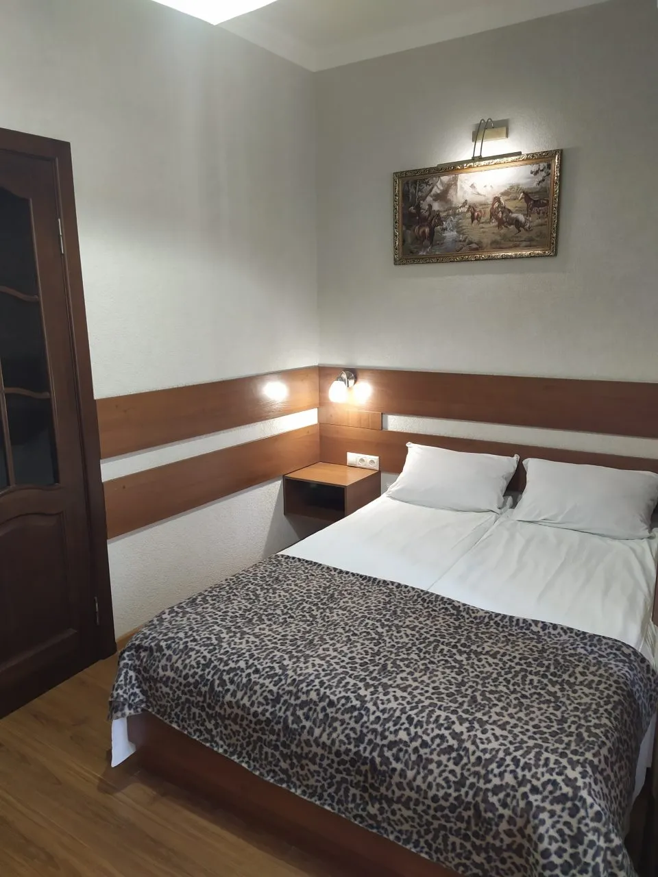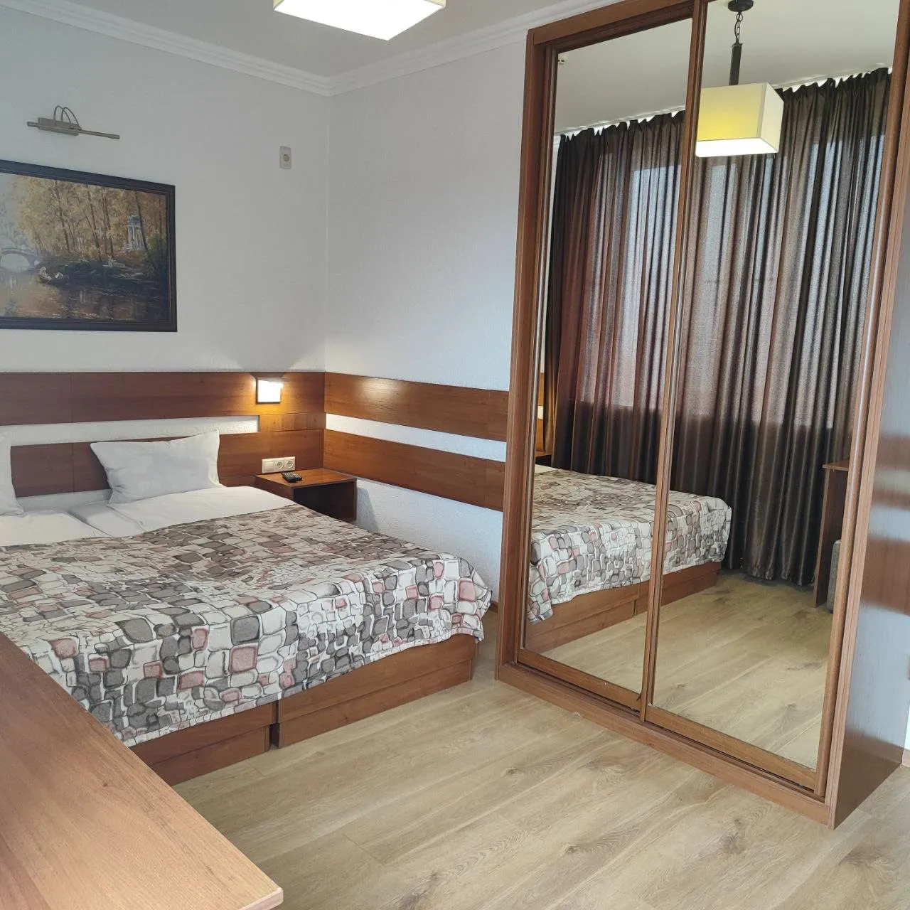 В номере: вешалка, зеркало, кровать двуспальная, прикроватные тумбочки, шкаф, кондиционер, мини-холодильник, телевизор ЖК