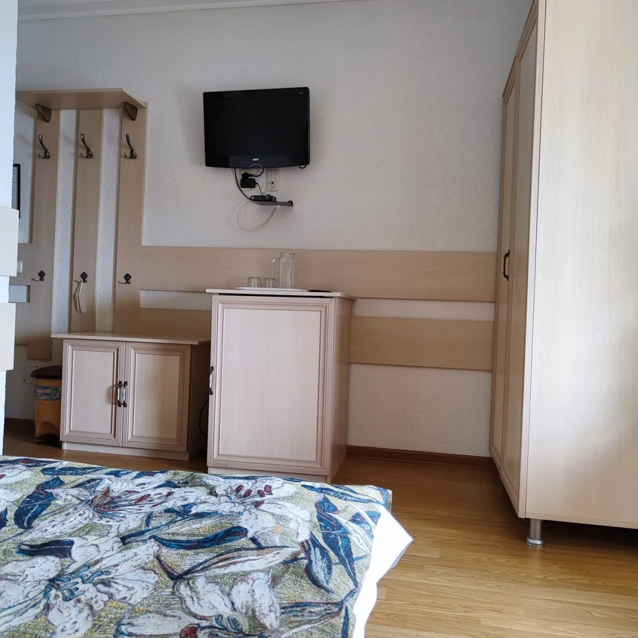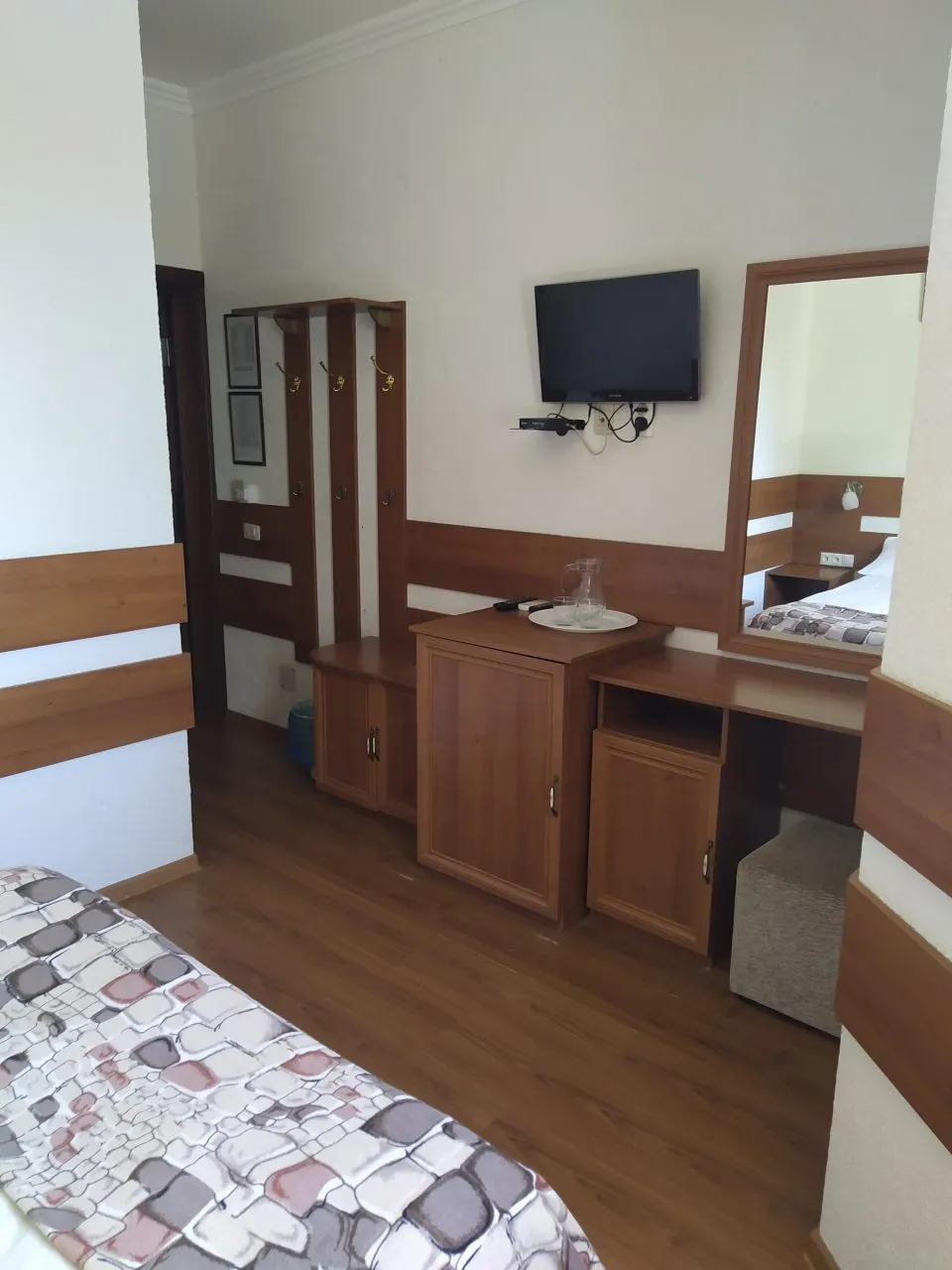 В номере: вешалка, зеркало, кровати односпальные, прикроватные тумбочки, шкаф, кондиционер, мини-холодильник, телевизор ЖК