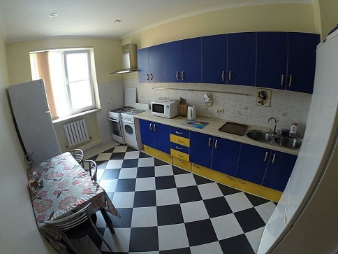 - общая кухня посуда и приборы, чайник, микроволновая печь, кухонная плита и холодильник