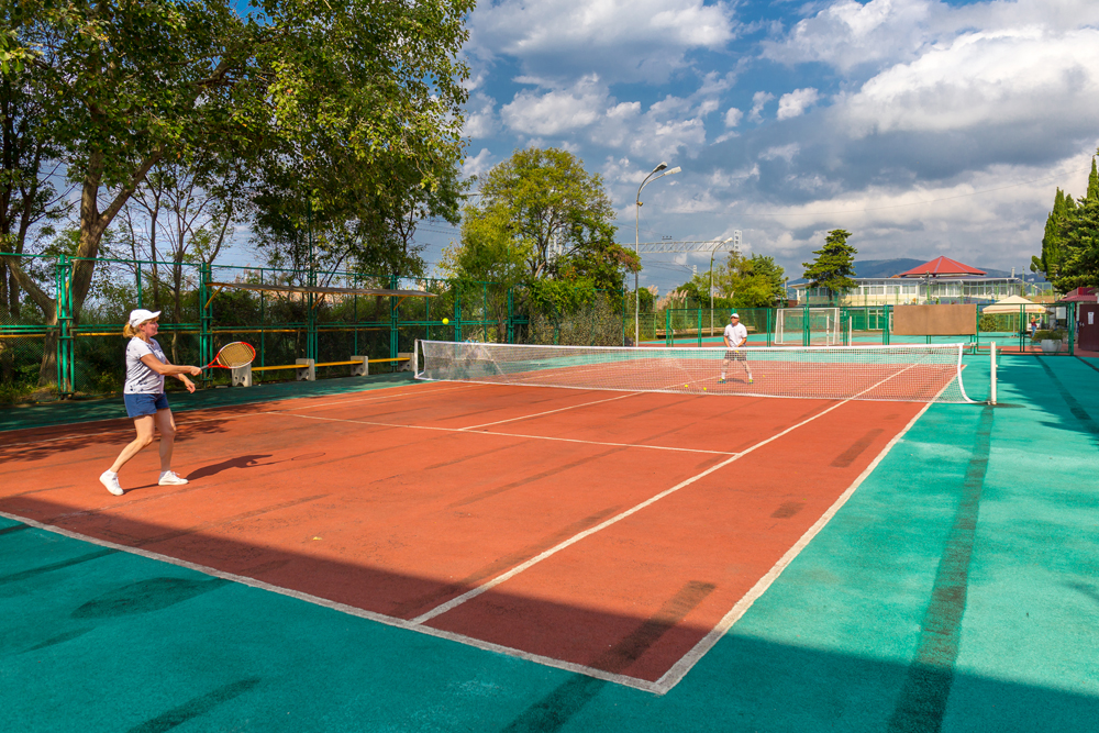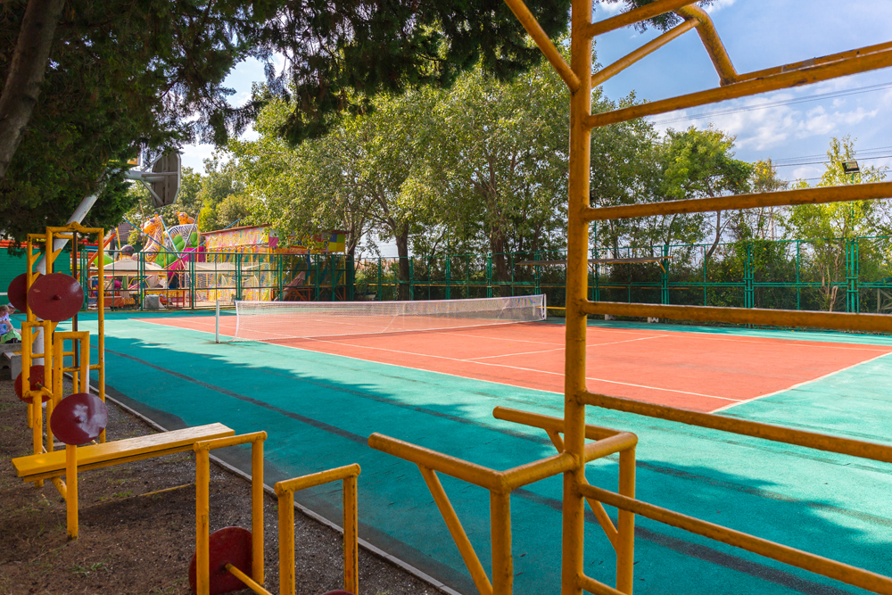 - теннисный корт с профессиональным покрытием