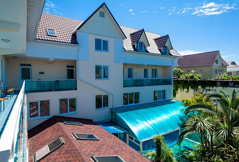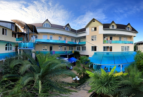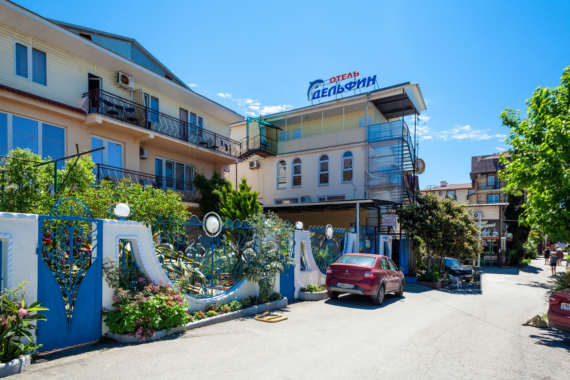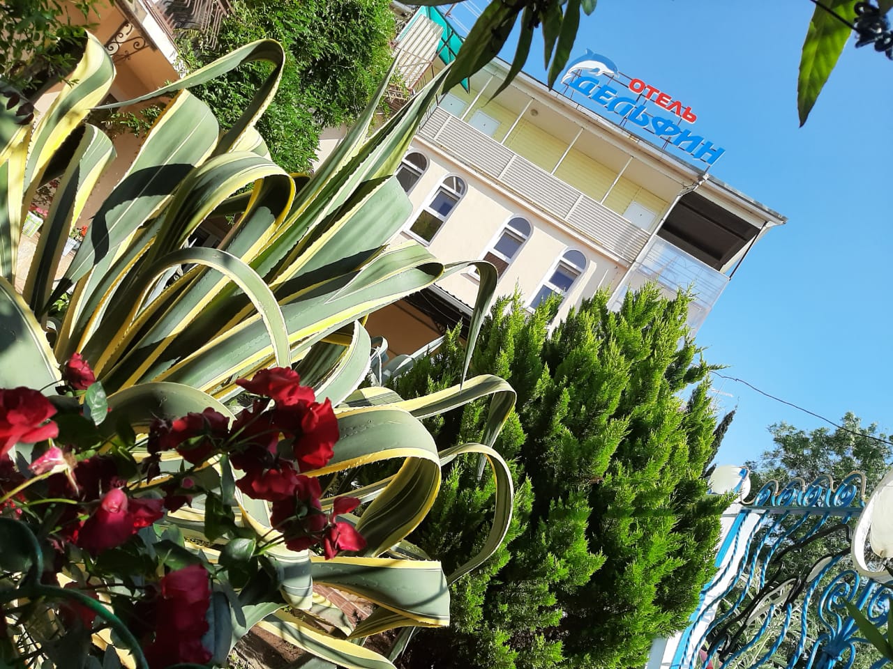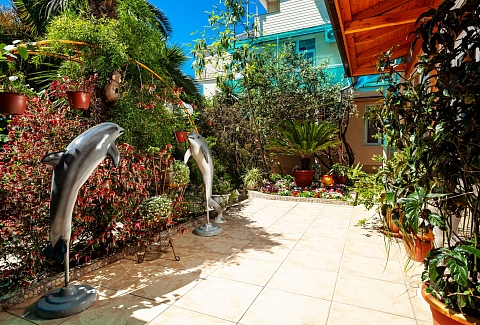 Частная гостиница «Дельфин» расположена на первой линии, так близко к морю, что игривые перекаты волн и морской шепот будут отдаленно доноситься в ваше окно, оставляя в душе приятное ощущение комфорта и спокойствия. А манящий своим могуществом горизонт моря, будет приковывать ваш взгляд и часами удерживать возле окна. На территории гостиницы есть несколько зон отдыха, где вы сможете в спокойствии отдохнуть под нависающими кронами южных деревьев и пальм, искупаться в летнем бассейне и понежиться под солнцем на шезлонгах, а так же дать возможность детям резвиться на детской площадке.
