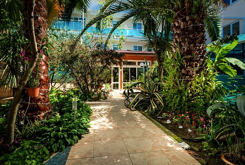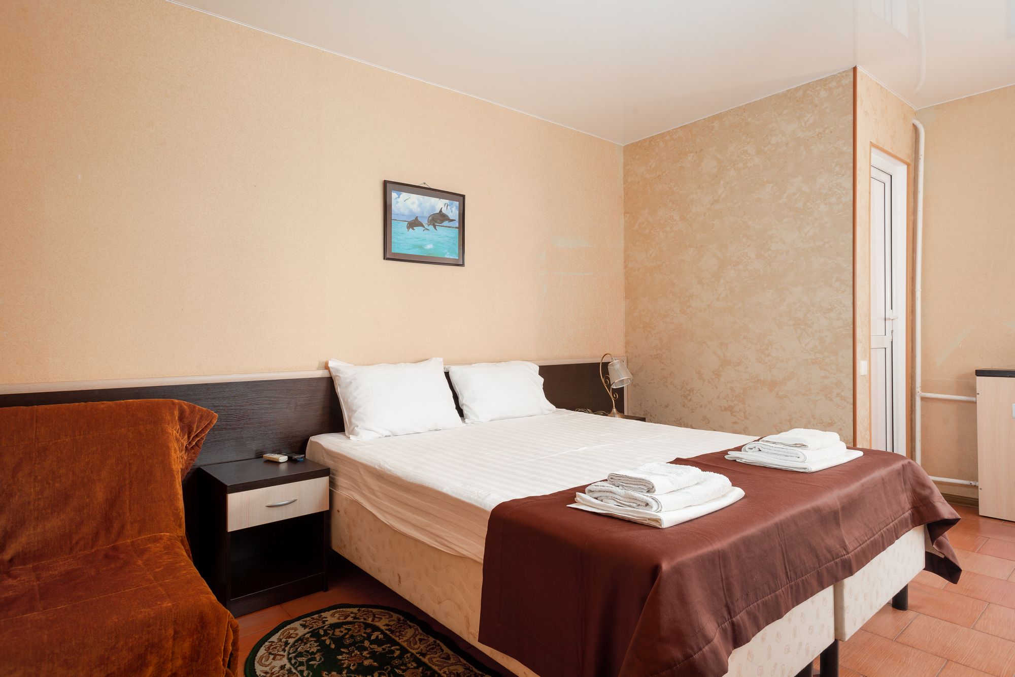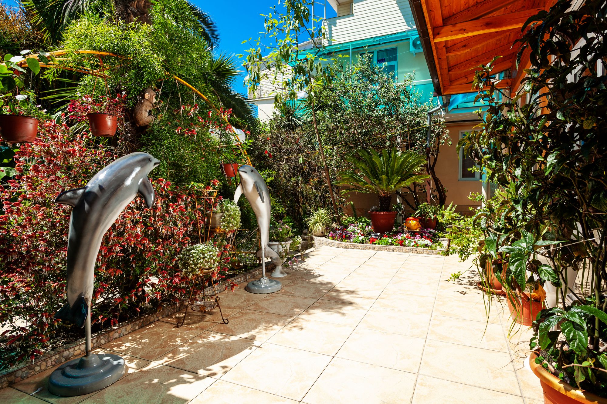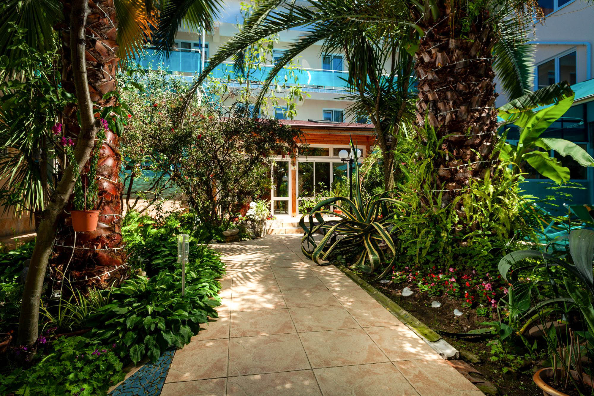 Частная гостиница «Дельфин» расположена на первой линии, так близко к морю, что игривые перекаты волн и морской шепот будут отдаленно доноситься в ваше окно, оставляя в душе приятное ощущение комфорта и спокойствия. А манящий своим могуществом горизонт моря, будет приковывать ваш взгляд и часами удерживать возле окна. На территории гостиницы есть несколько зон отдыха, где вы сможете в спокойствии отдохнуть под нависающими кронами южных деревьев и пальм, искупаться в летнем бассейне и понежиться под солнцем на шезлонгах, а так же дать возможность детям резвиться на детской площадке.