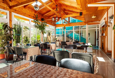 - столовая европейская, кавказская кухня, в сезон с 08:00 до 21:00, в несезон с 08:00 до 20:00