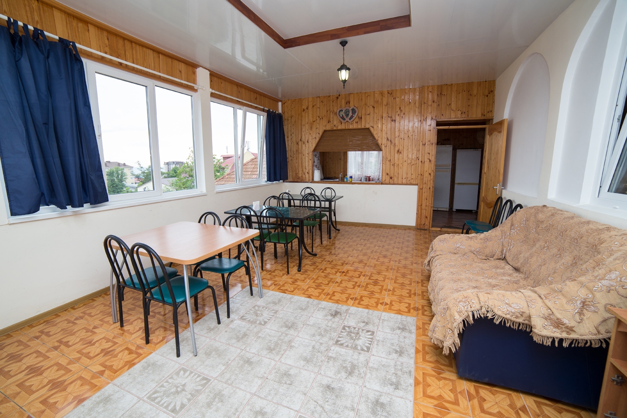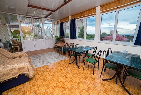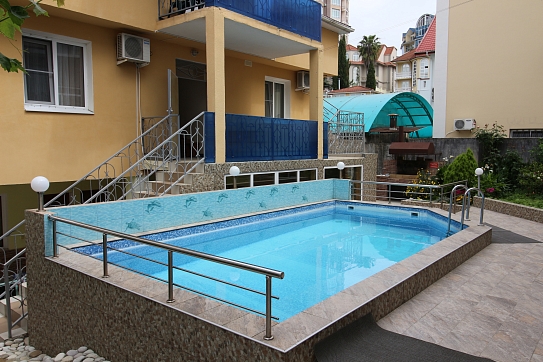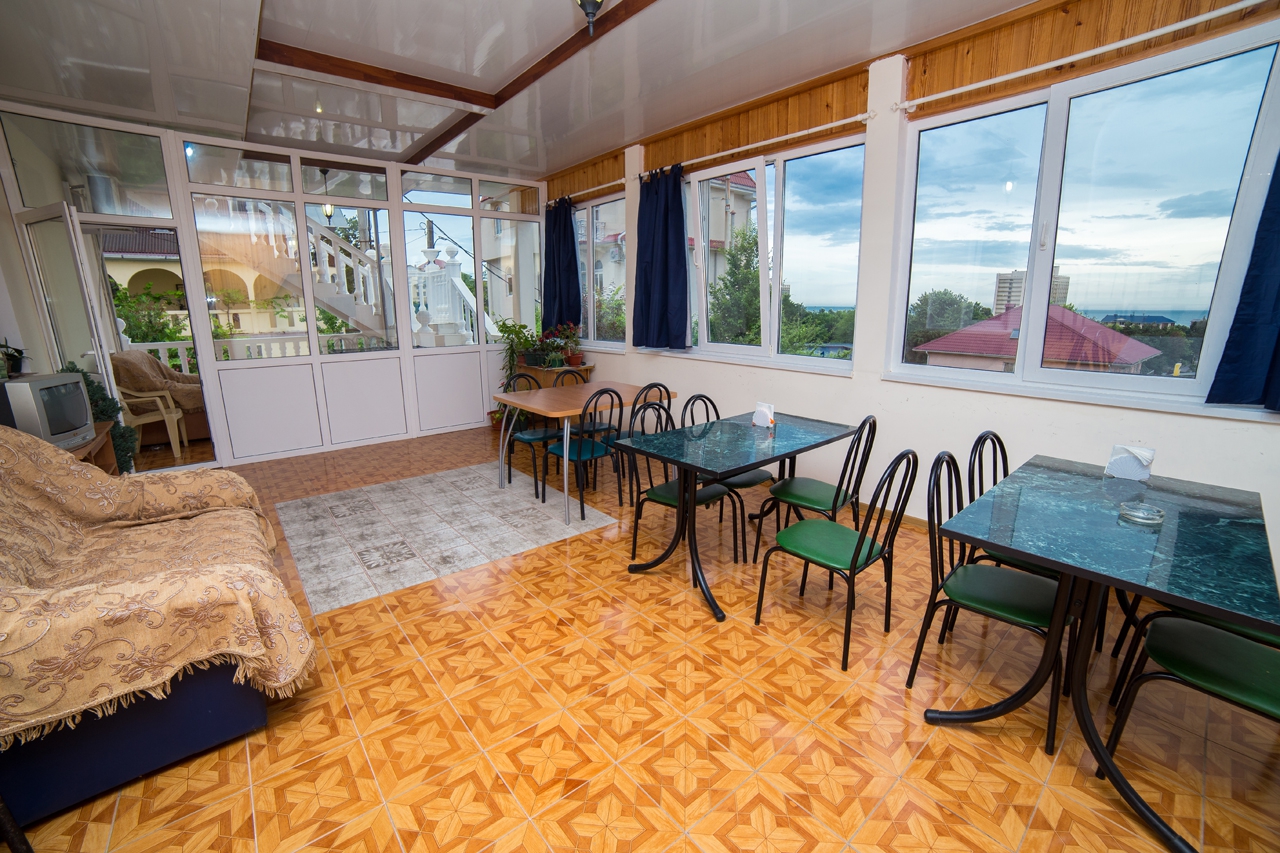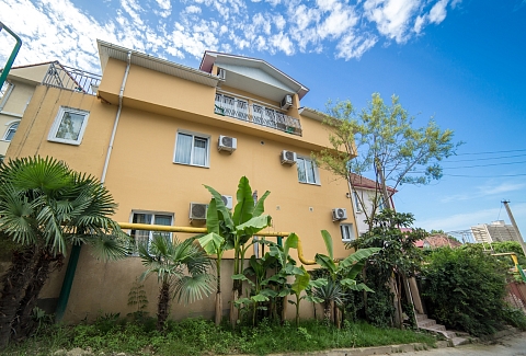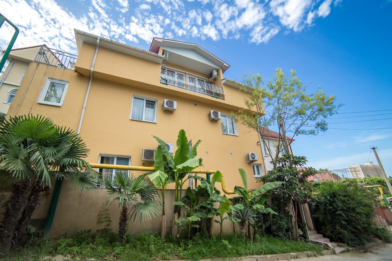 Трехэтажный отель разместился на тихой зеленой улице. Жилой фонд, рассчитанный на 18 номеров, предлагает отдыхающим номера Стандарт, а также двухкомнатные Люксы и Студии с кухней. Все номера оснащены сплит-системой, есть телевизор и холодильник. Из некоторых номеров открываются панорамные виды на море. В распоряжении гостей общая кухня для самостоятельного приготовления пищи, мангальная зона, открытый подогреваемый бассейн, беспроводной интернет, стоянка для автомобилей. На ресепшене можно арендовать дополнительную бытовую технику. В 800 метрах находится городской пляж, покрытый мелкой галькой. На пляже установлены раздевалки, лежаки, навесы, работают душевые, кафе, есть прокат шезлонгов, много водных развлечений.