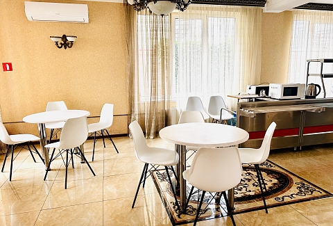 В пешей доступности находятся магазины, уютные кафе и остановка общественного транспорта, откуда легко добраться до шумного центра Сочи, живописной Красной Поляны или гостеприимной Абхазии. В двадцати минутах ходьбы железнодорожная станция, а всего в пятнадцати — оживленный Курортный городок с его прогулочными аллеями, Океанариумом и Дельфинарием. Пятиэтажное здание окружает тихий, зеленый двор с местами для отдыха и мангальной зоной, где по вечерам собираются дружные компании. Для семей с детьми создано особое пространство с яркой детской площадкой и небольшим прохладным бассейном, который радует малышей в летние месяцы.В номерах есть всё необходимое, кондиционер, телевизор ЖК, холодильник, чайный набор посуды. В большинстве номеров есть балкон с красивым видом. Здесь можно неспешно выпить кофе за столиком на свежем воздухе, вдыхая смешанный аромат морского бриза и хвои. На этажах гостям доступны гладильные принадлежности, кулеры с водой и микроволновые печи. Собственная столовая предлагает гостям вкусные и сытные домашние блюда, которые можно выбрать по системе полюбившегося многим комплексного питания — от сытного завтрака до полноценного трехразового рациона. После дня, проведенного на галечном городском пляже с развитой инфраструктурой, приятно вернуться в спокойную атмосферу дома, взять книгу из небольшой библиотеки или настольную игру для вечера в кругу близких. Для тех, кто ценит активность, доступен прокат сапбордов.Всего в одной минуте пешком расположен пляж. На пляже за дополнительную плату можно арендовать шезлонг и зонт.