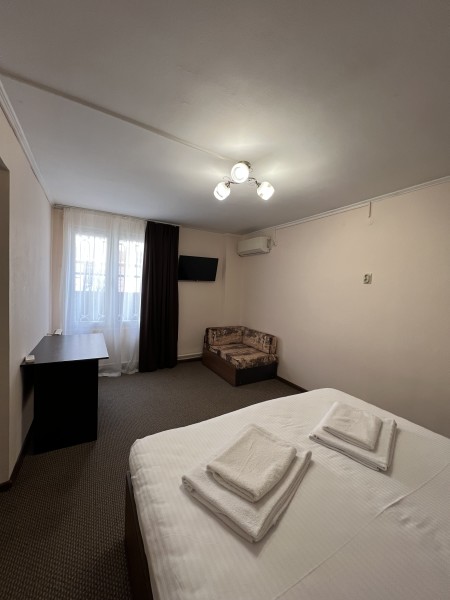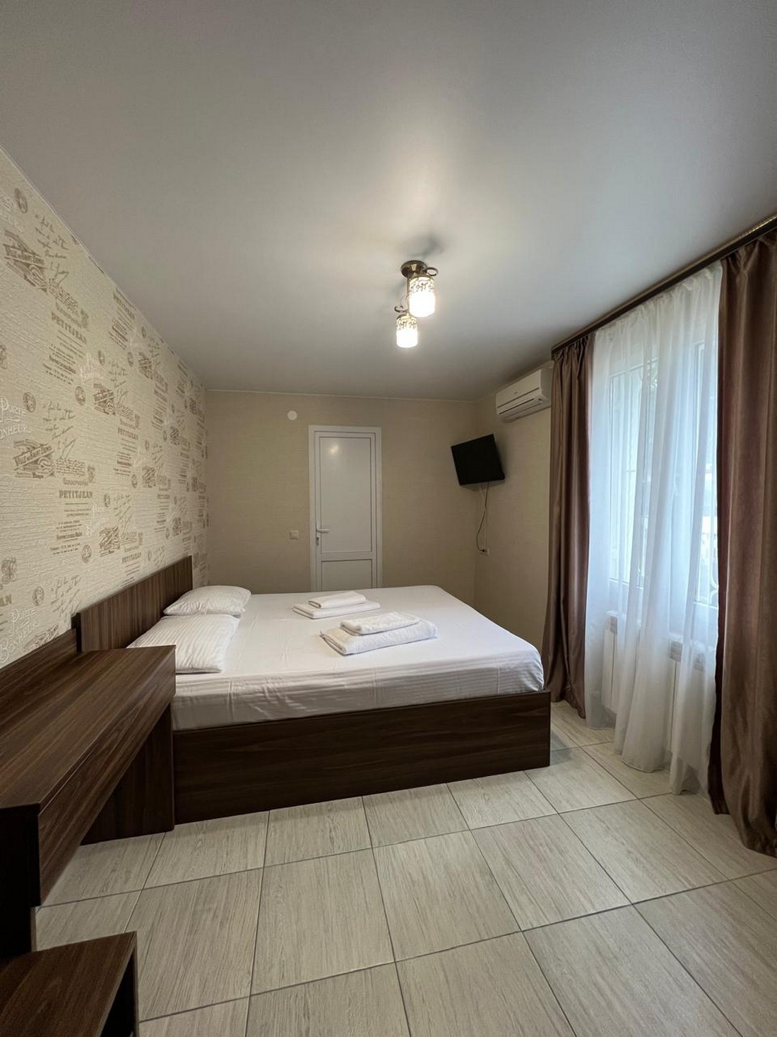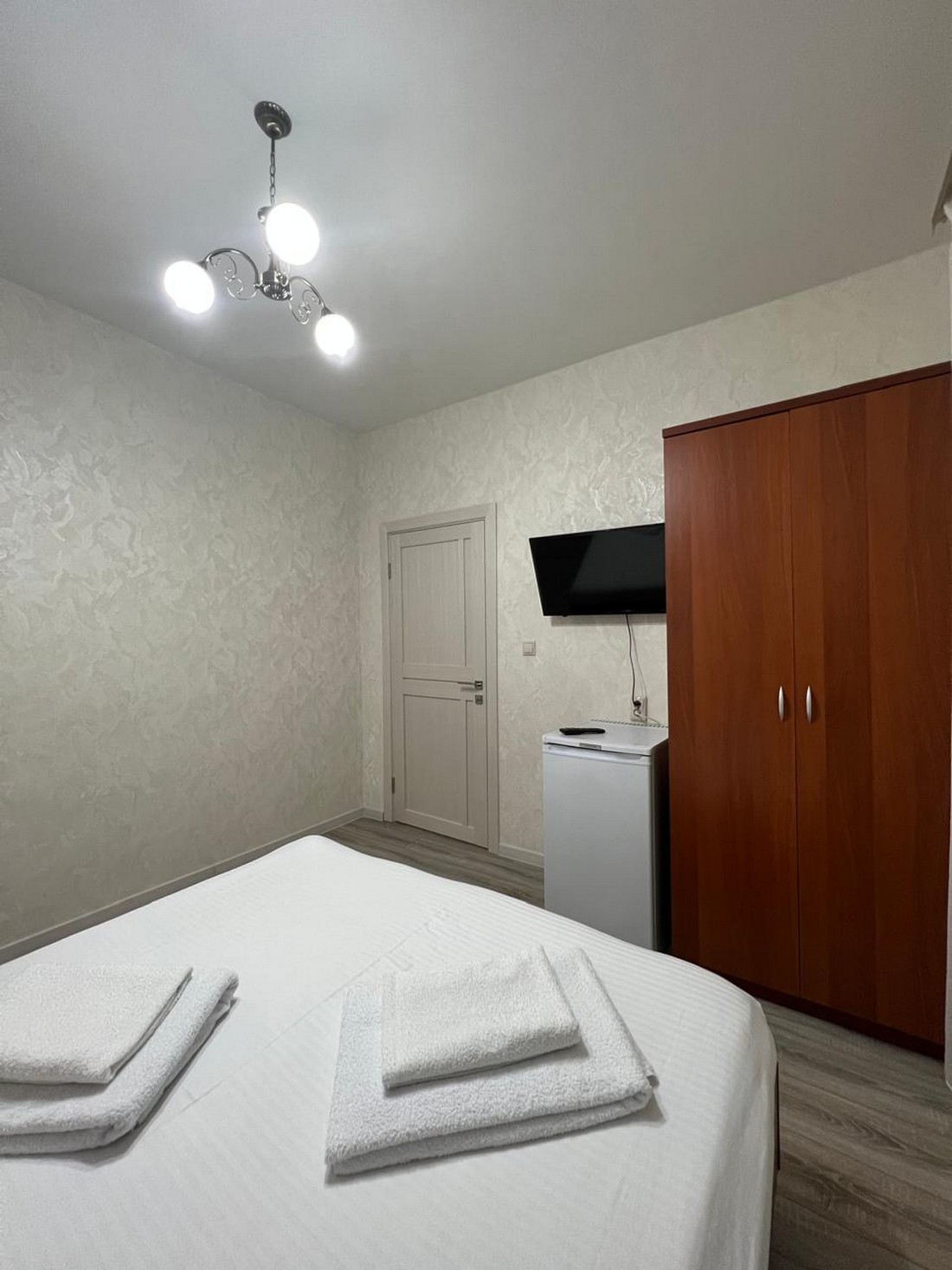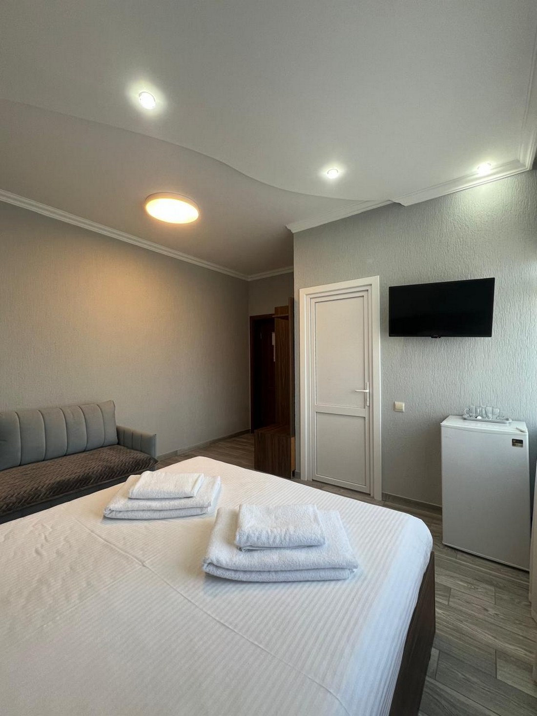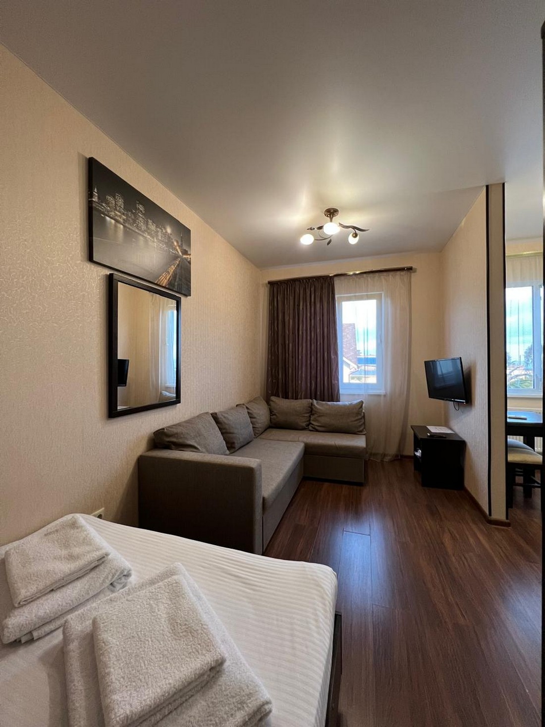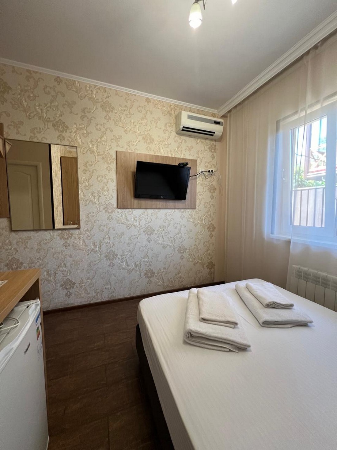 В номере: вешалка, диван, кровать двуспальная, шкаф, сплит-система, телевизор, холодильник