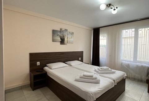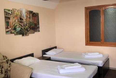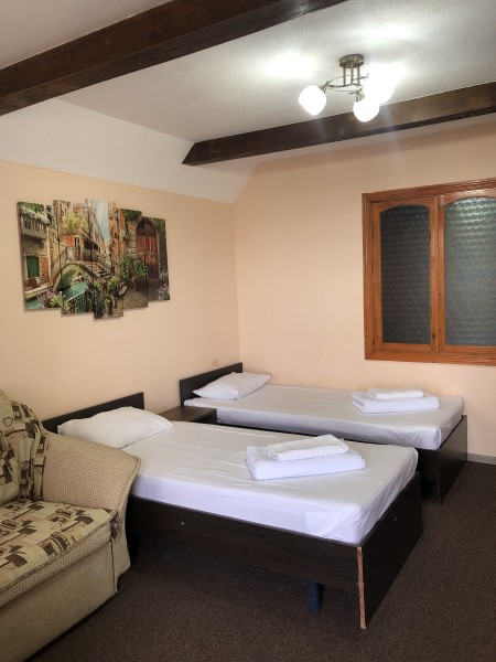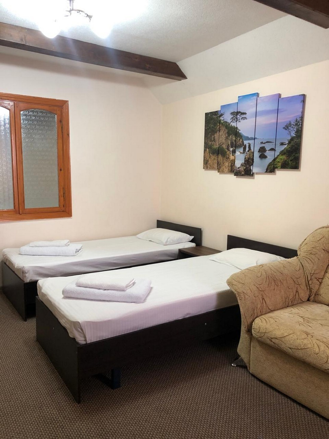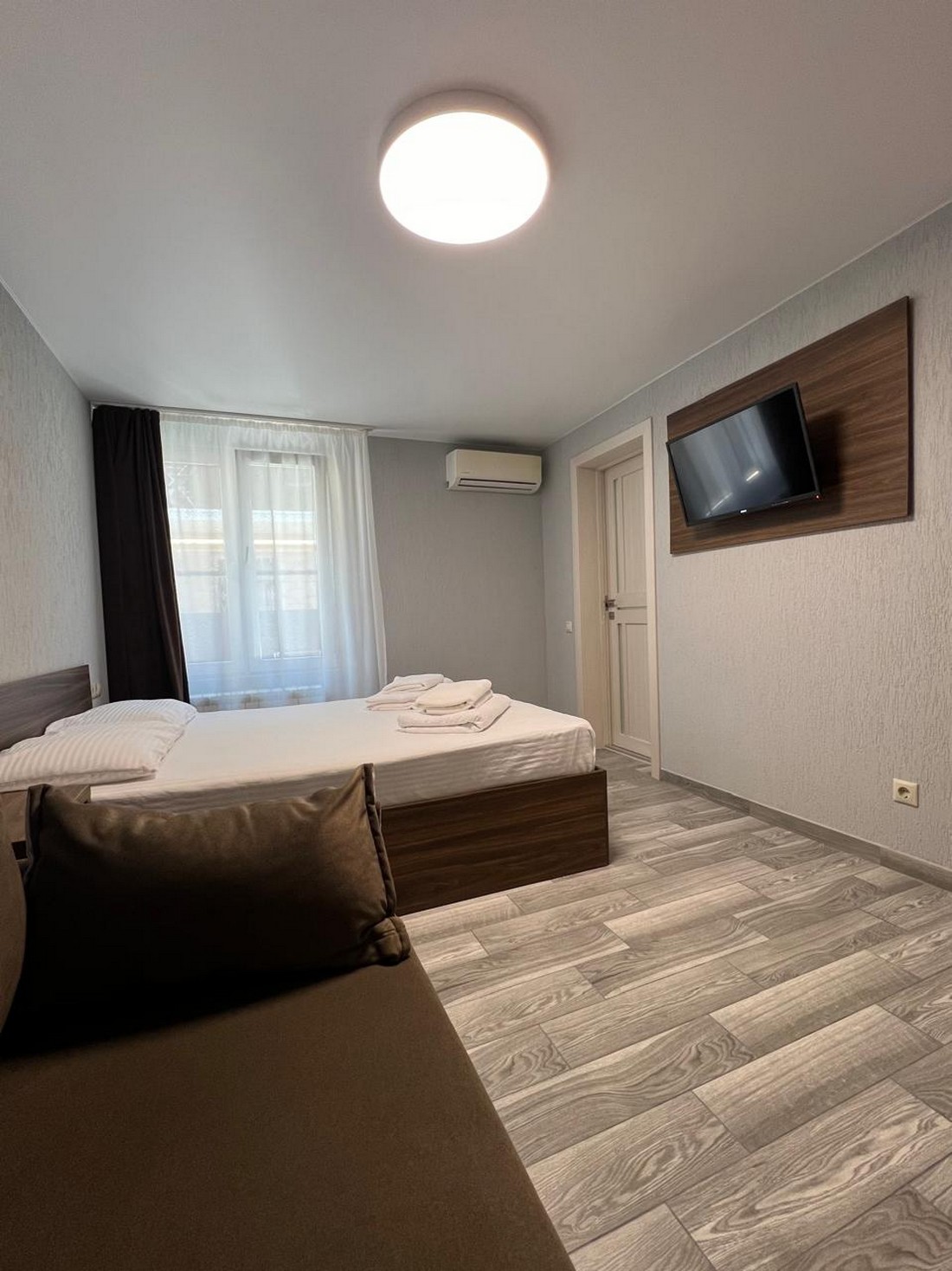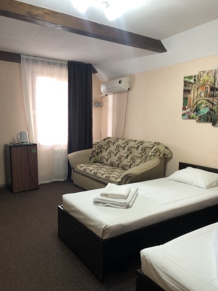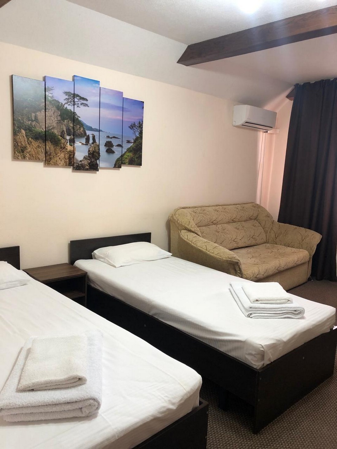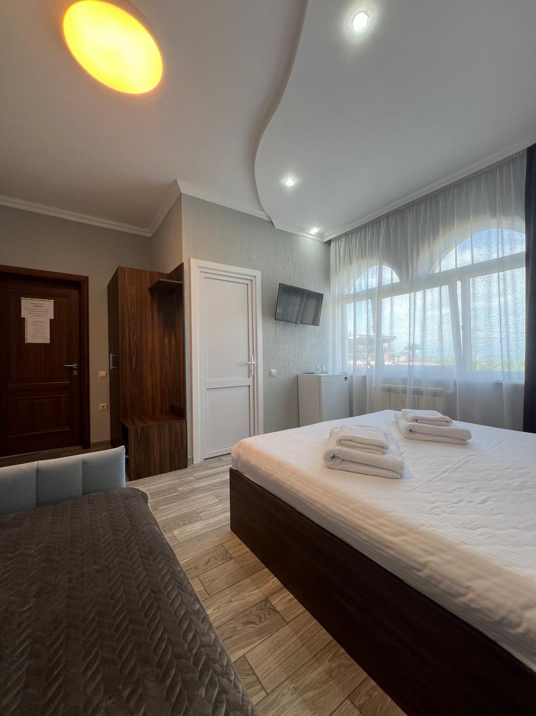 В номере: диван, кровати односпальные, кровать двуспальная, шкаф, сейф, сплит-система, телевизор, холодильник