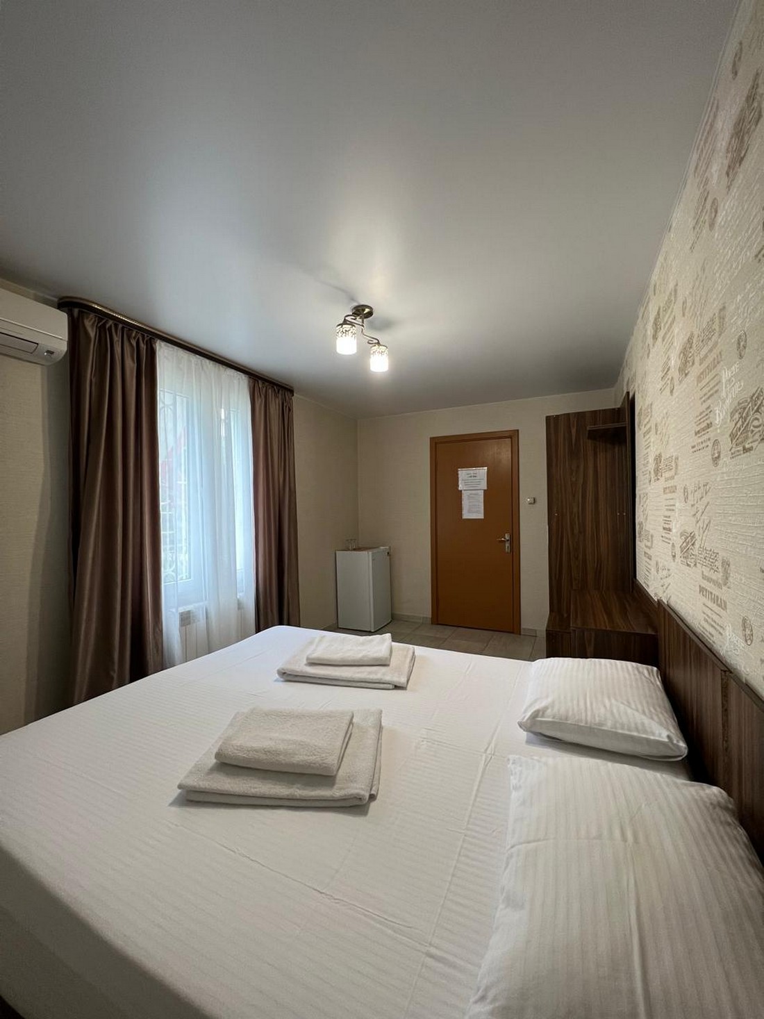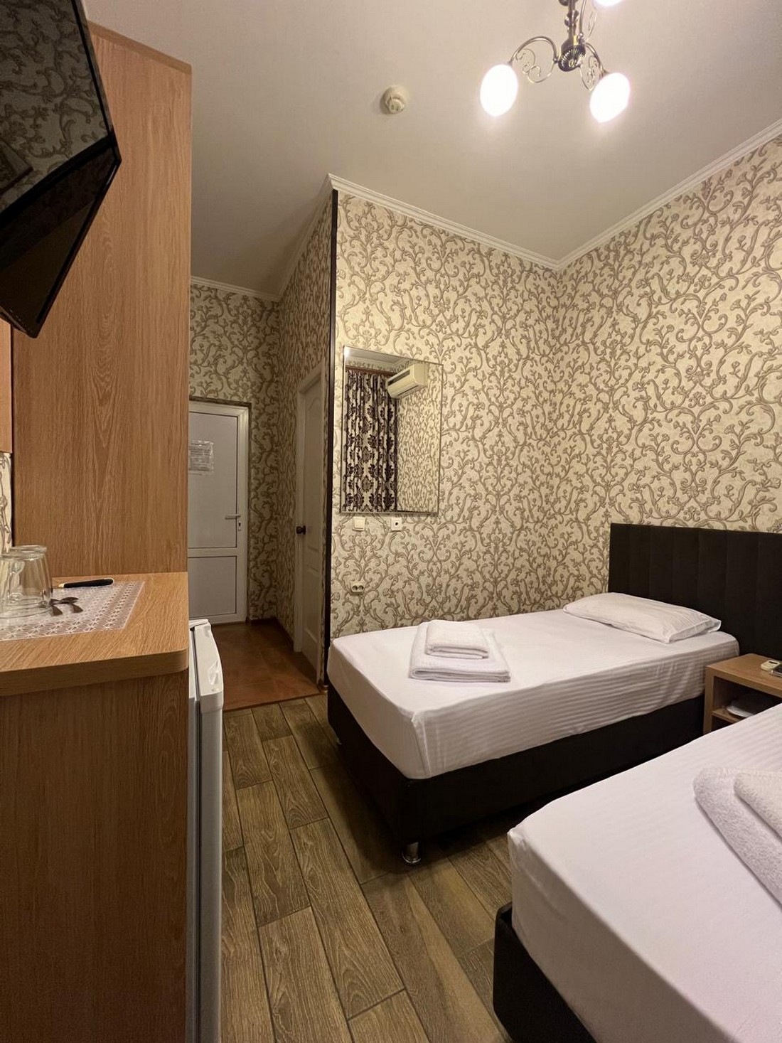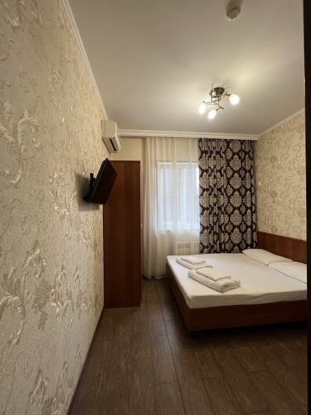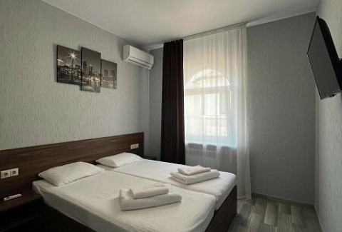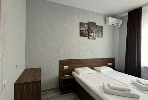 В номере: вешалка, кровати односпальные /одна двуспальная кровать, шкаф, сейф, сплит-система, телевизор, холодильник