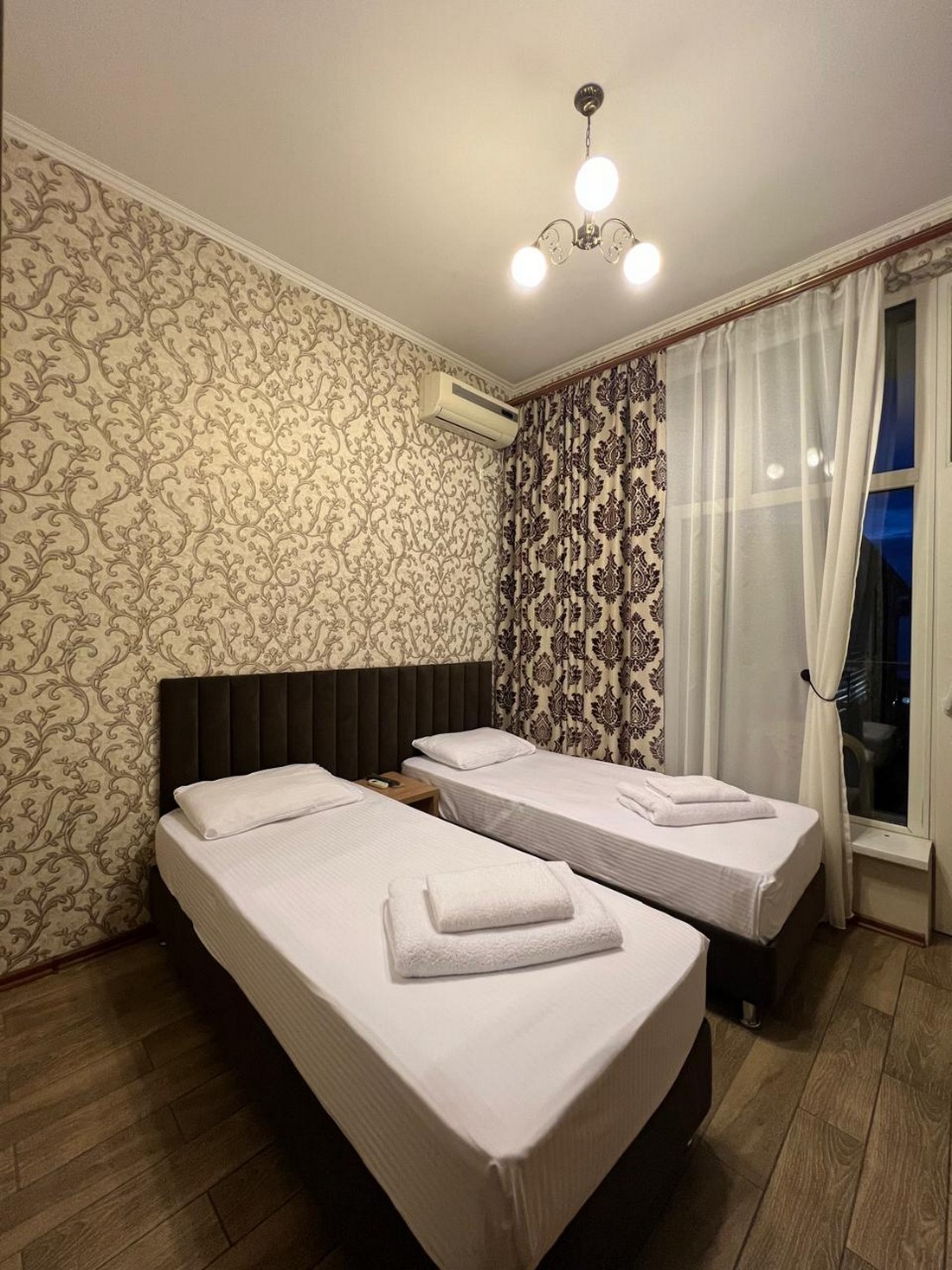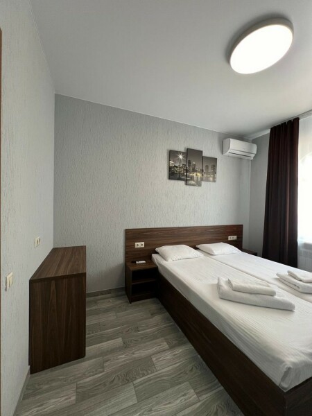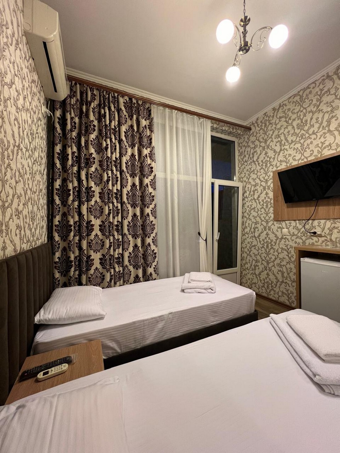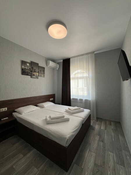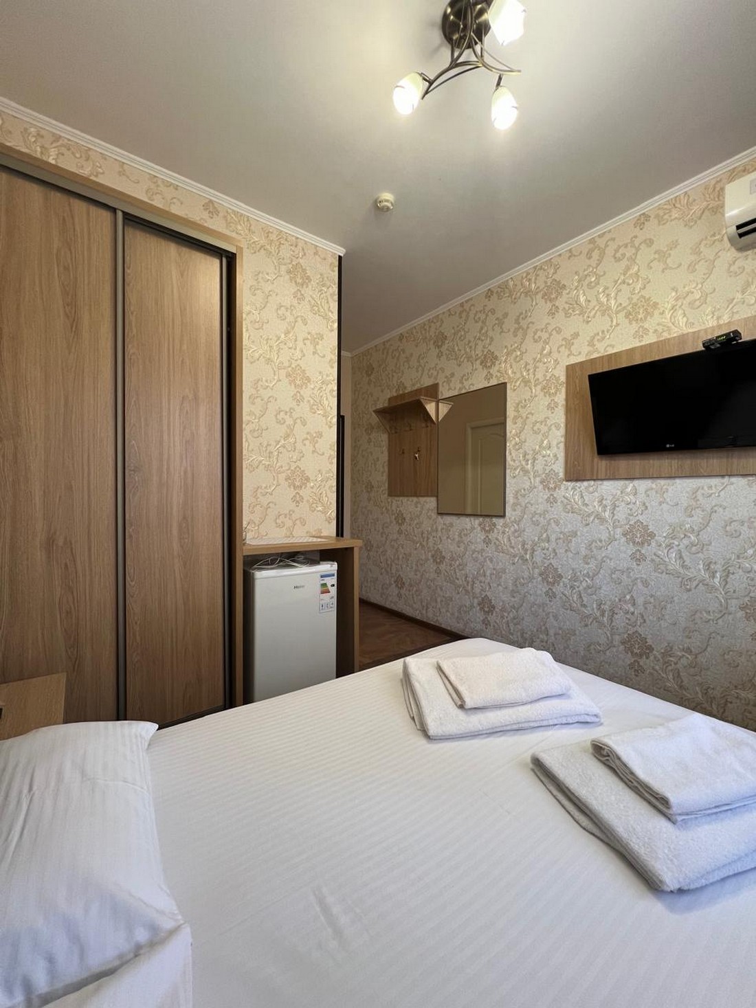 В номере: вешалка, кровати односпальные /одна двуспальная кровать, шкаф, сейф, сплит-система, телевизор, холодильник