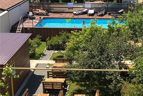 Самолетом до аэропорта Адлер, далее на автобусе №105,105с до остановки «Пансионат Знание», далее пройти 790 м до гостевого дома.