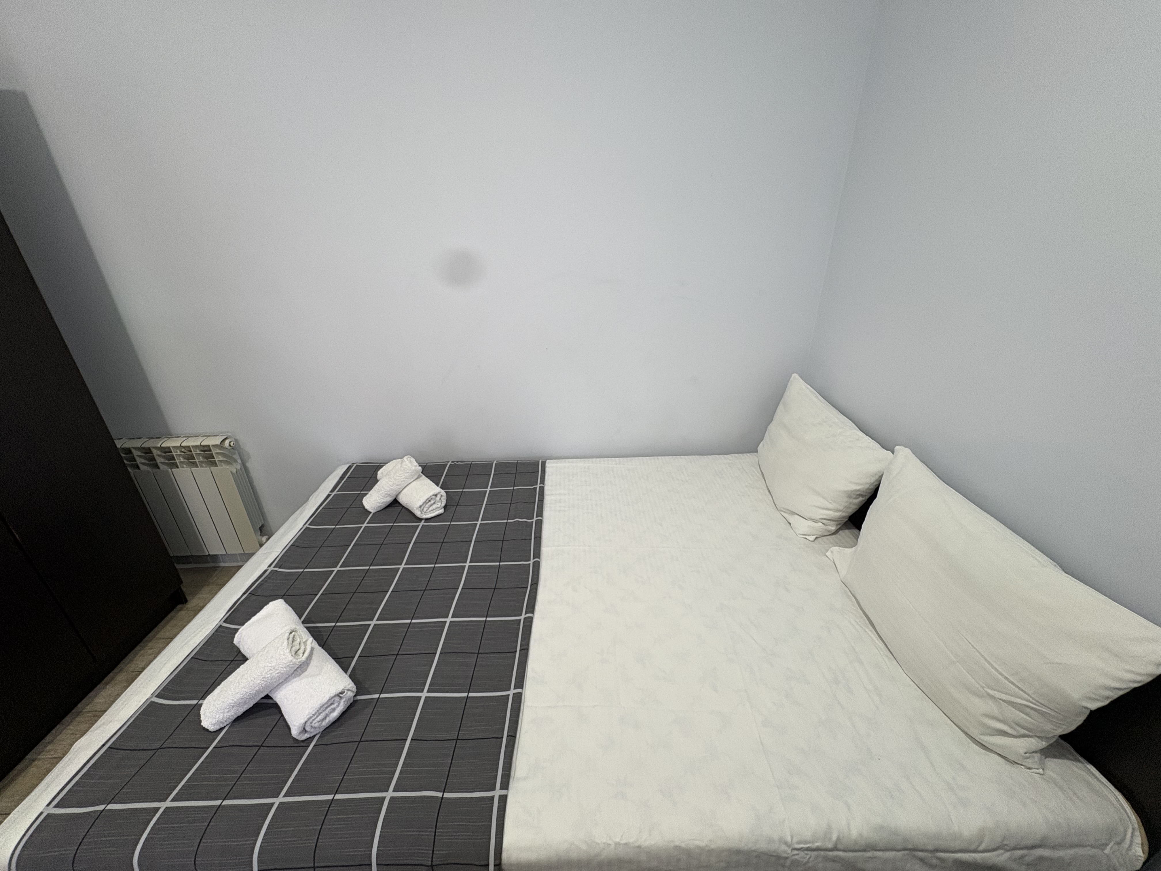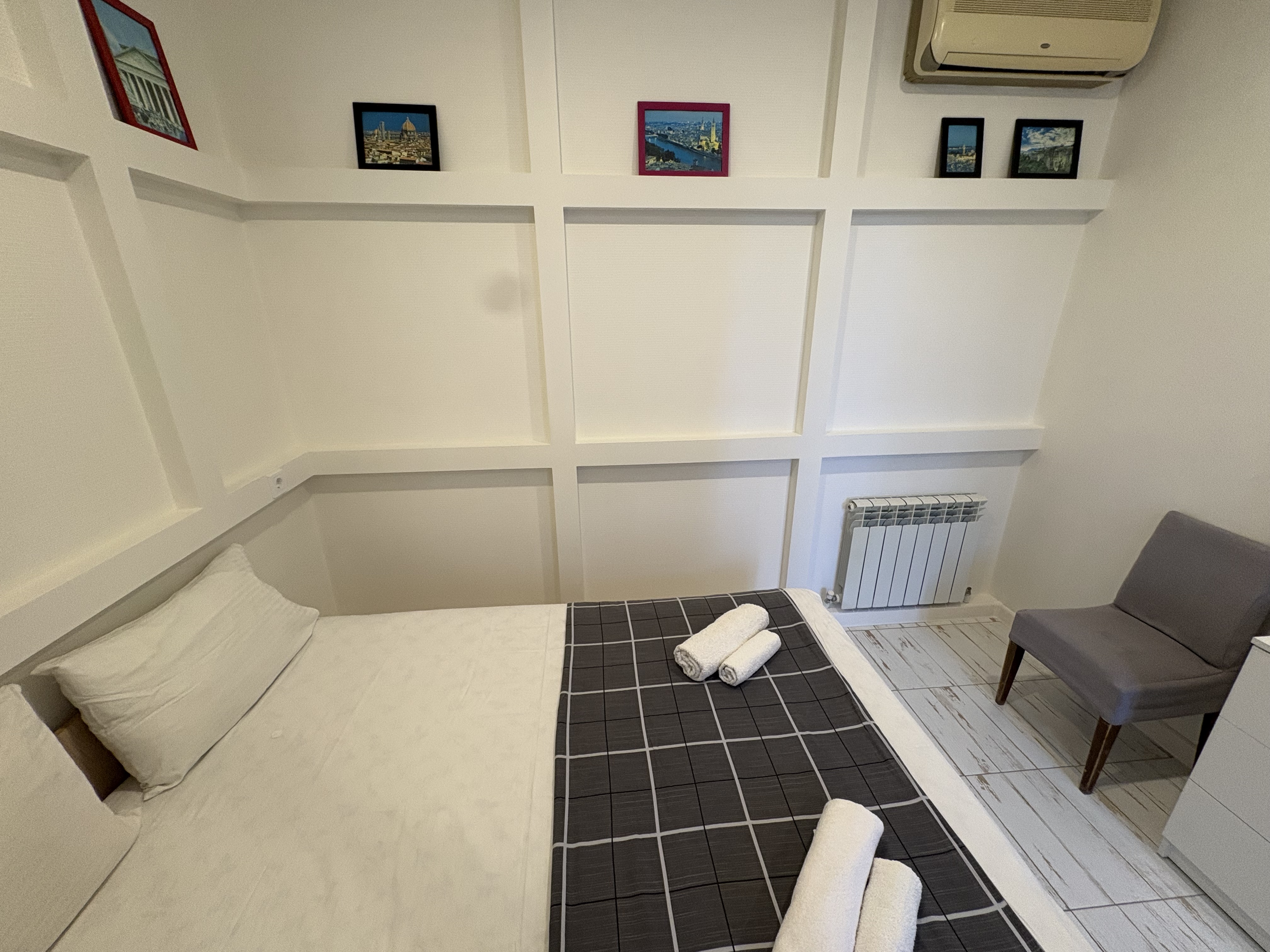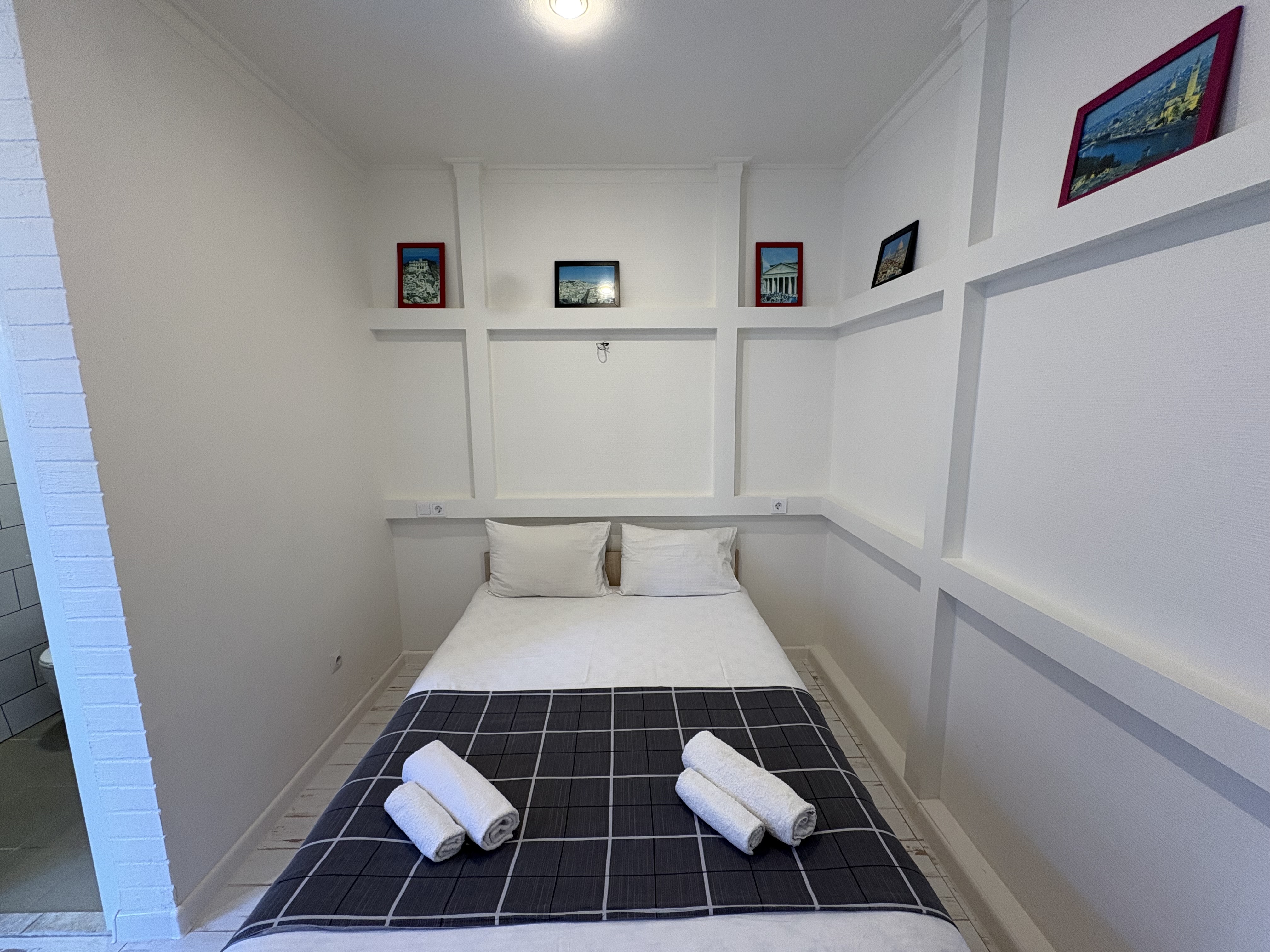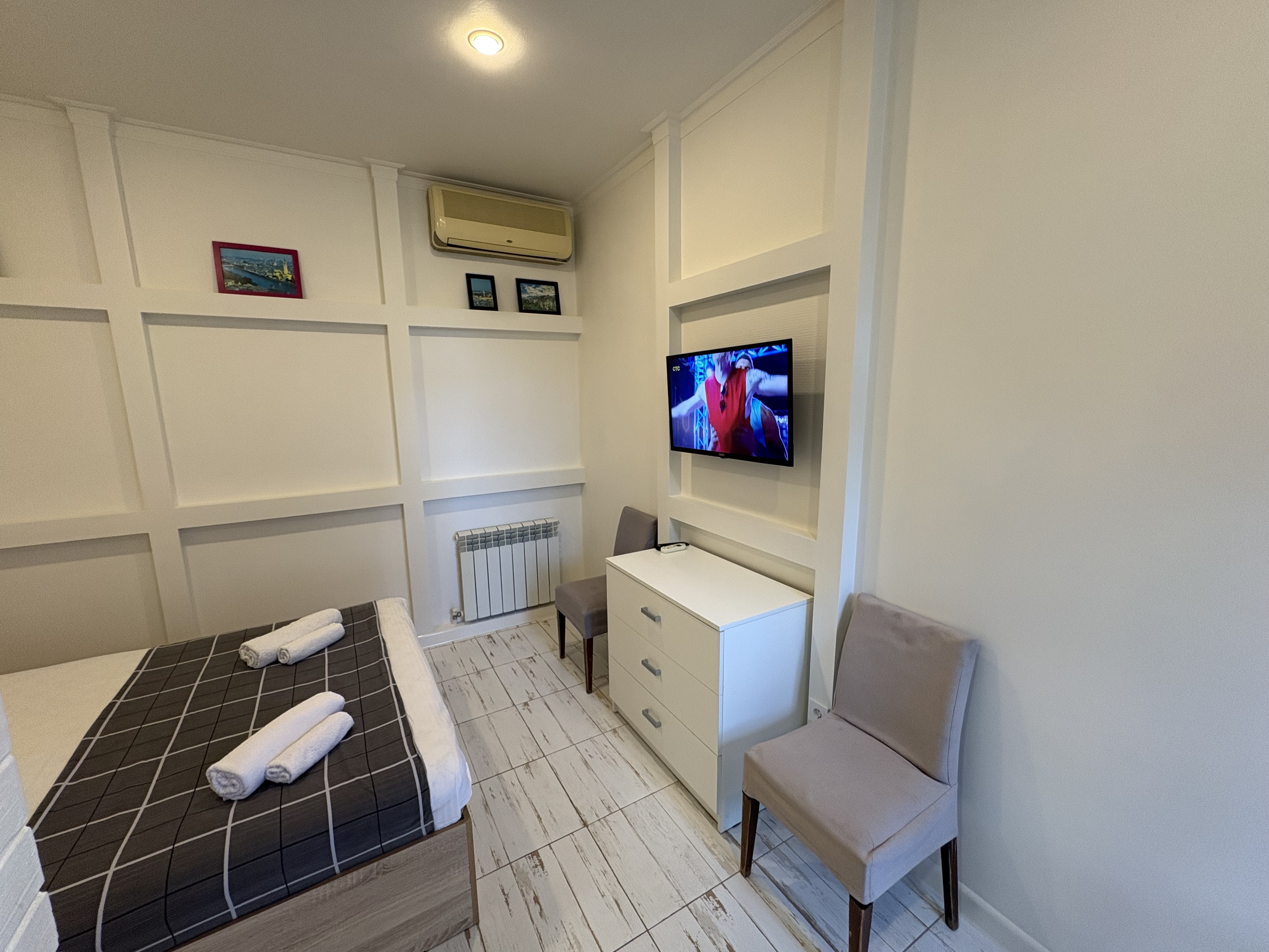 В номере: вешалка, зеркало, кровать двуспальная, кондиционер, мини-холодильник, набор посуды, телевизор, электрочайник