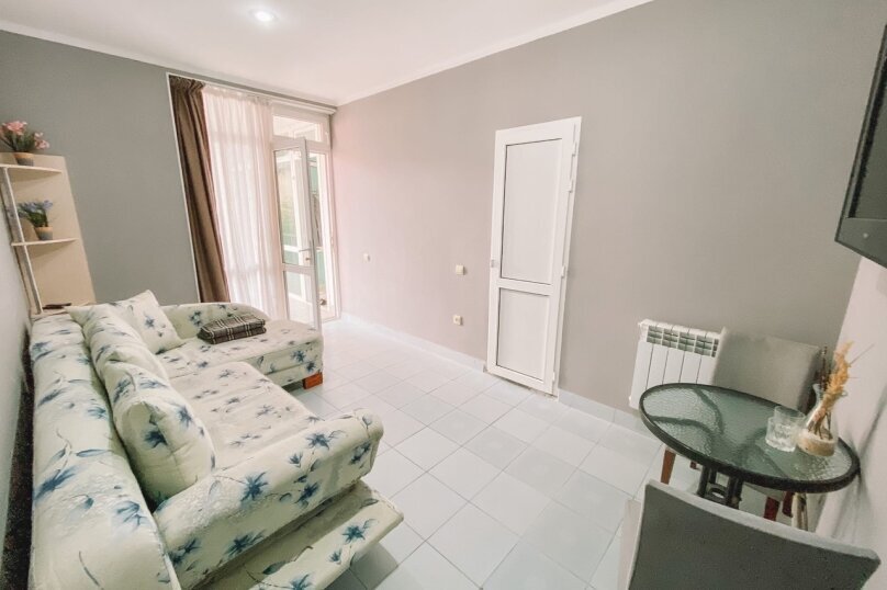 В номере: вешалка, диван раскладной, еврораскладушка, зеркало, кровати односпальные /одна двуспальная кровать, кухонная мебель, стол, стулья, шкаф, кондиционер, набор посуды, плита индукционная, сплит-система, сушилка для белья, телевизор, холодильник, чайный набор посуды, электрочайник