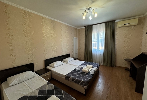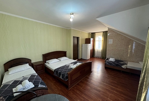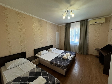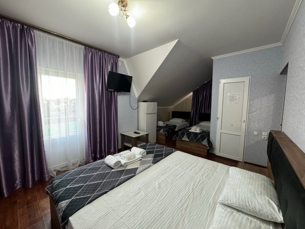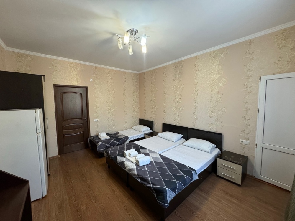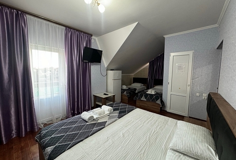 В номере: кровати односпальные, кровать двуспальная, кондиционер, телевизор, холодильник