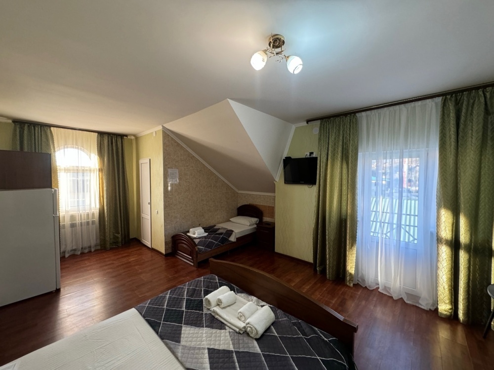 В номере: кровать двуспальная, кровать односпальная, кондиционер, телевизор, холодильник