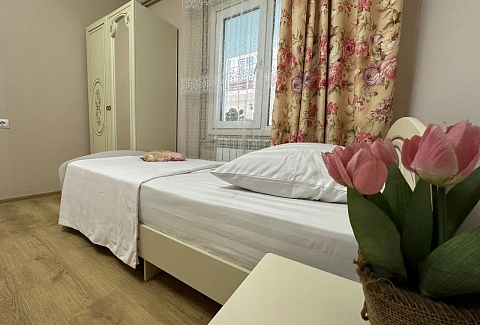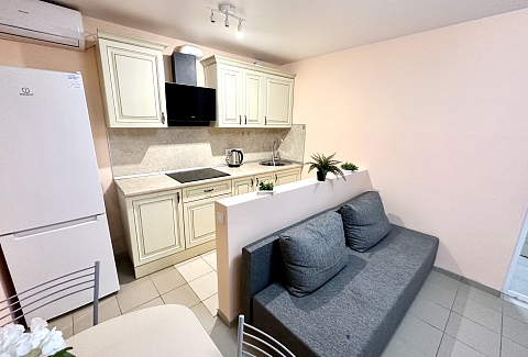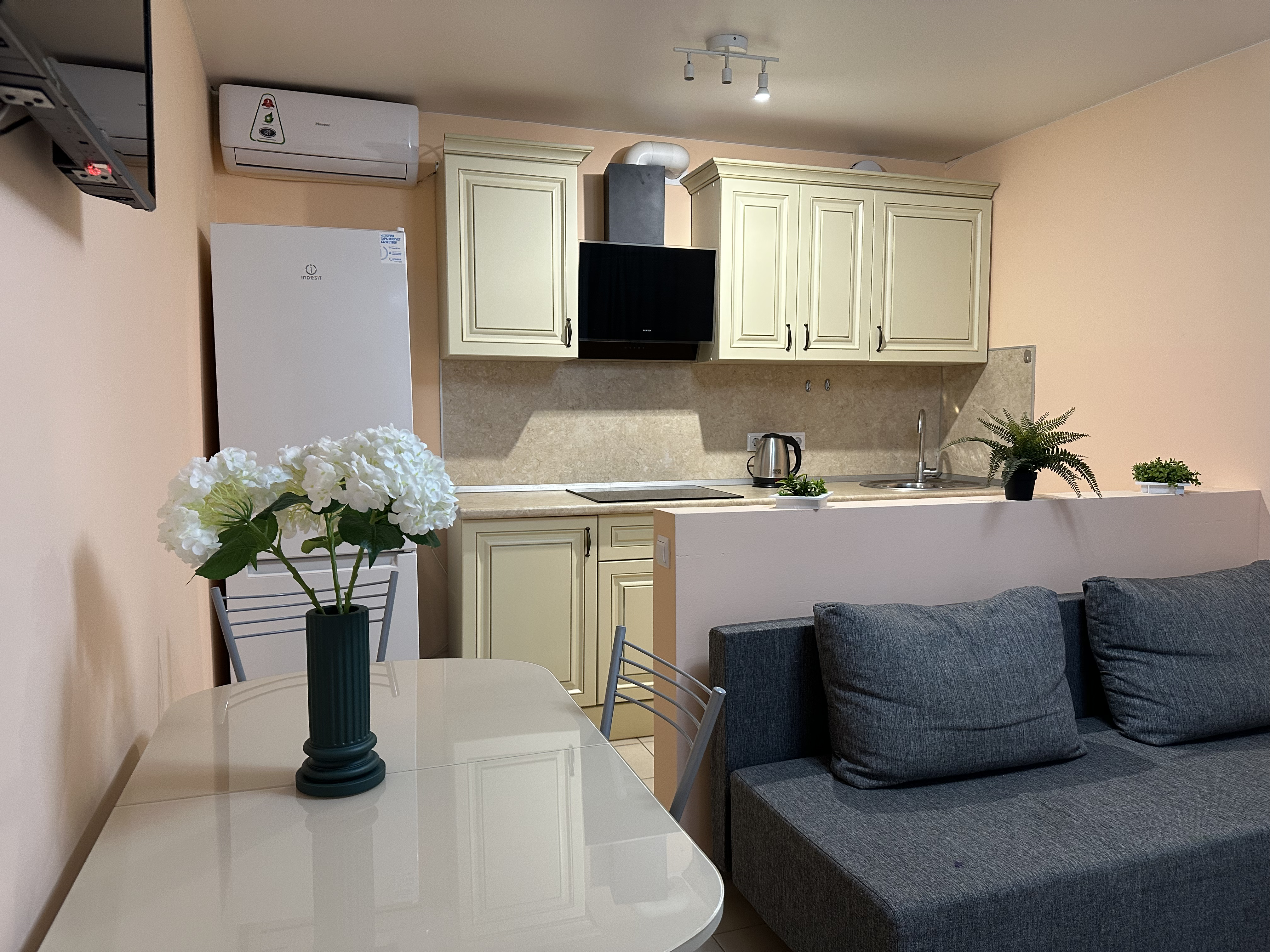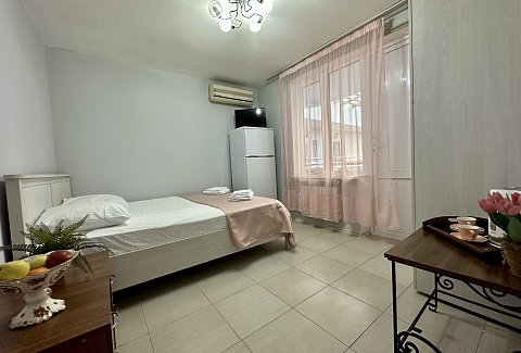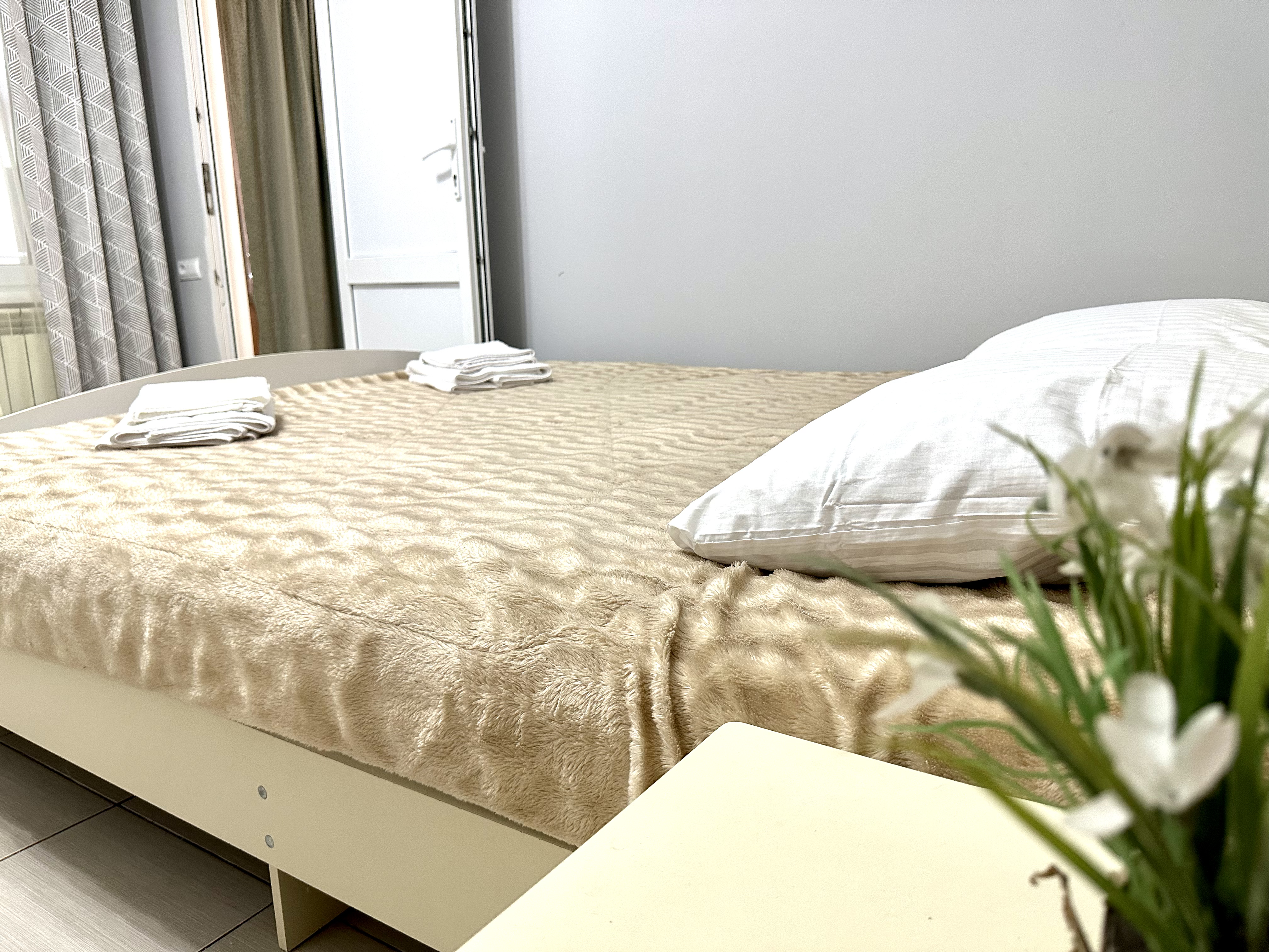 Фреш Апарт — идеальное место для тех, кто мечтает о полноценном отдыхе, наслаждаясь пляжными прогулками и домашним комфортом. Апартаменты расположены всего 7 минутах от моря. Корпус имеет 3 этажа без лифта и предлагает гостям несколько различных вариантов размещения — двухместные номера и просторные семейные апартаменты с собственной кухней.