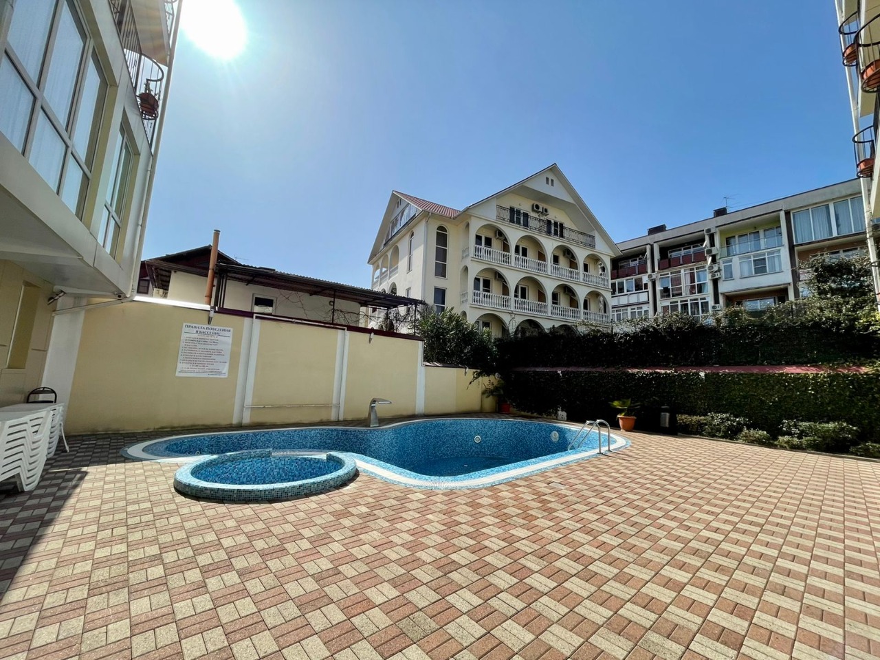 - пользование открытым бассейном