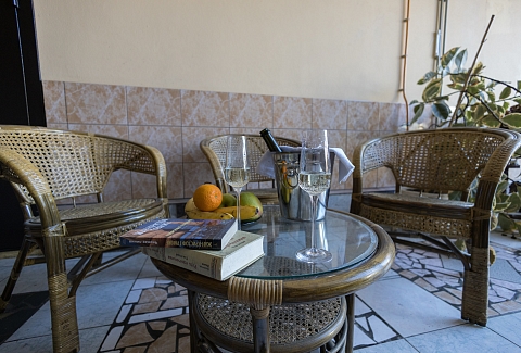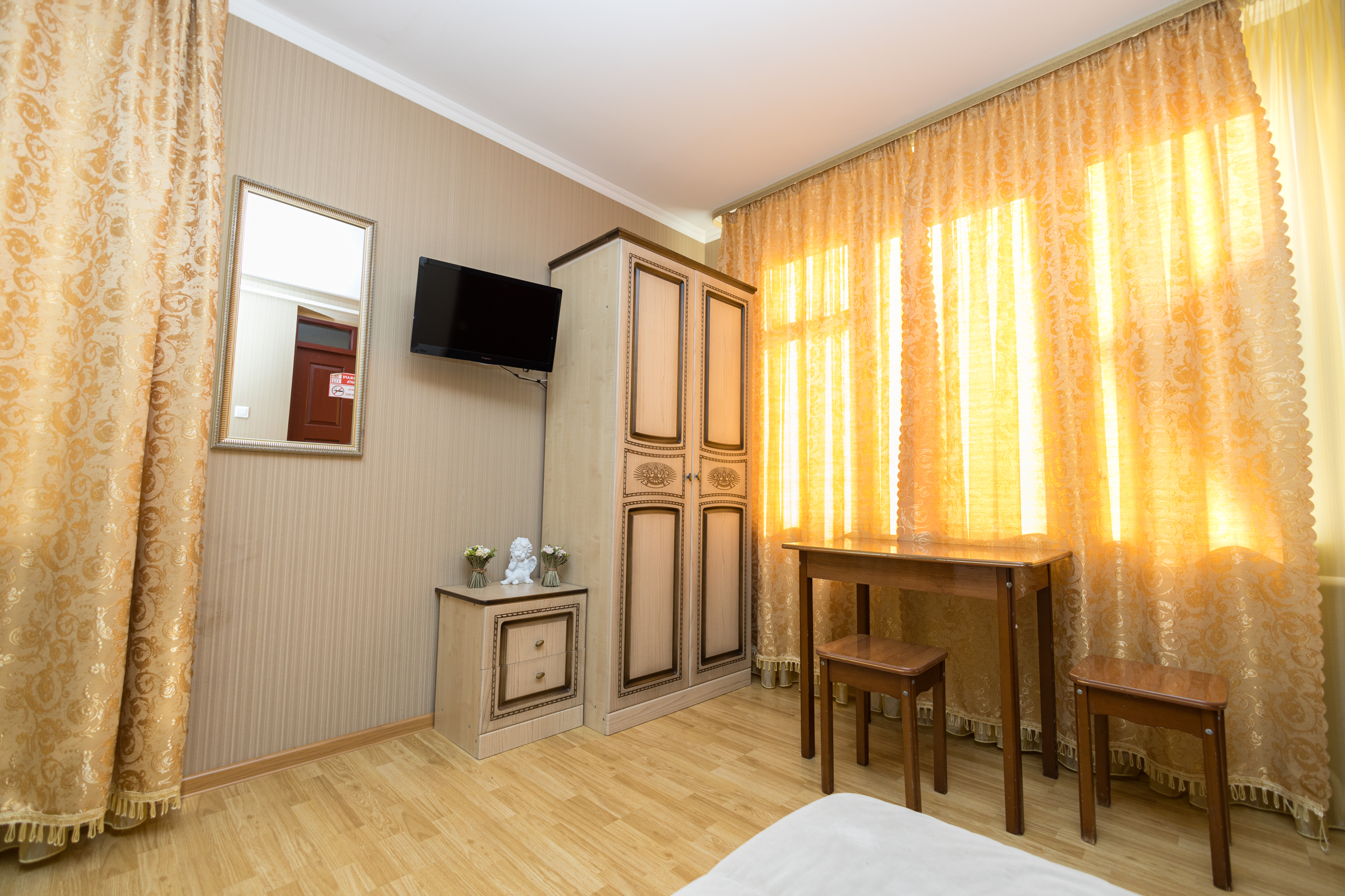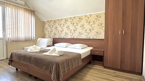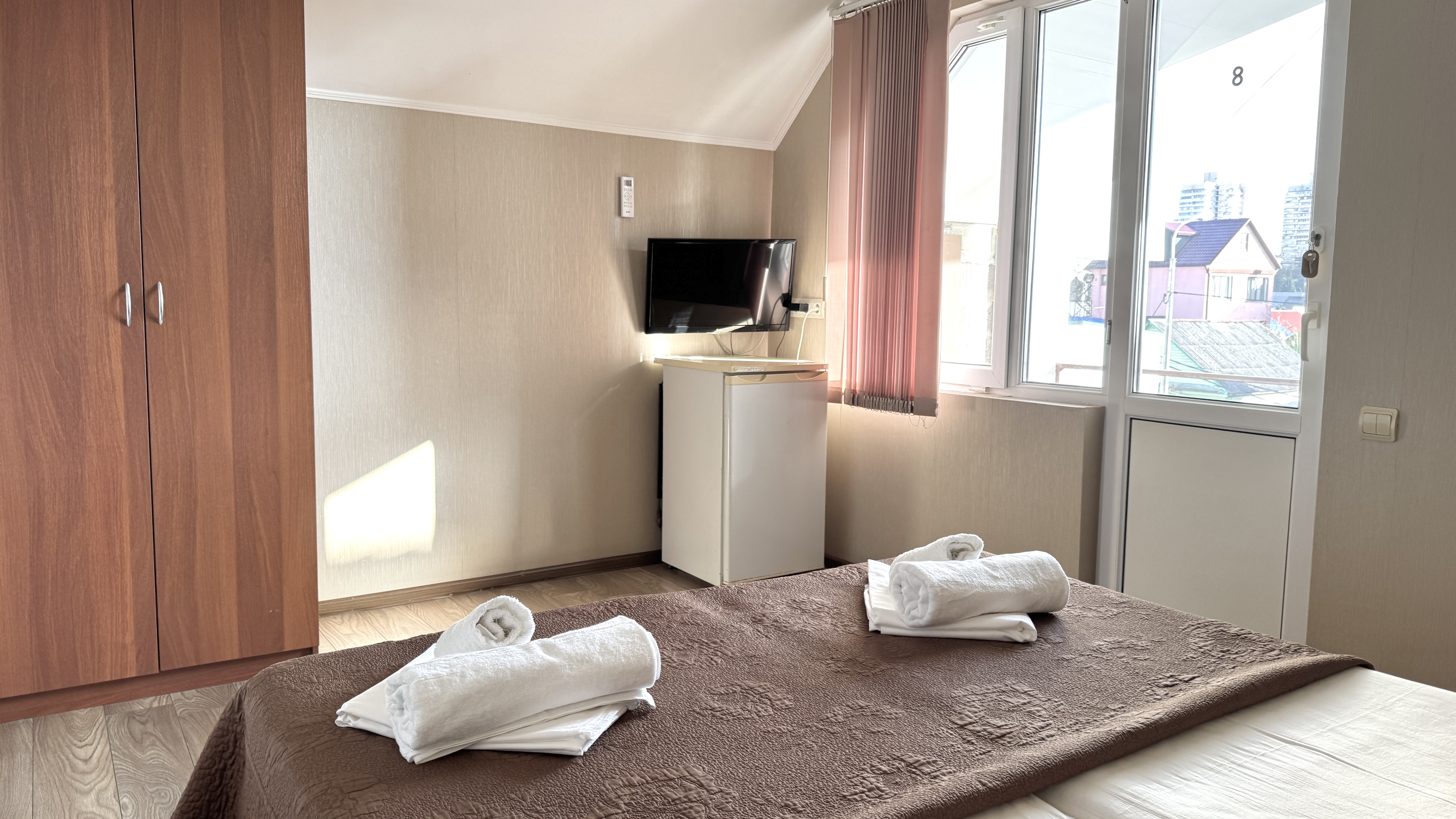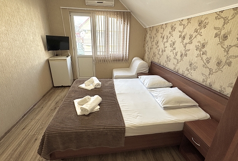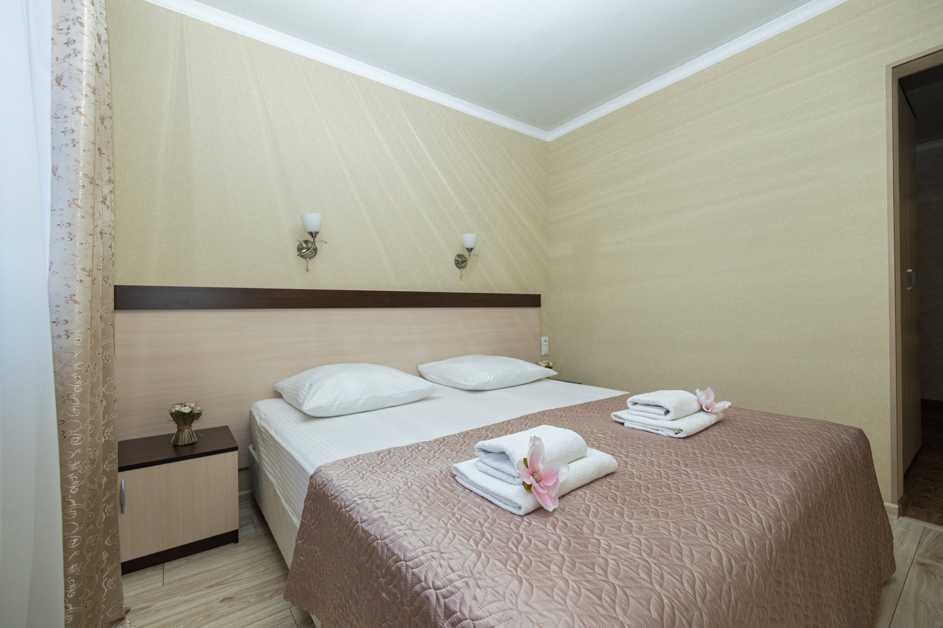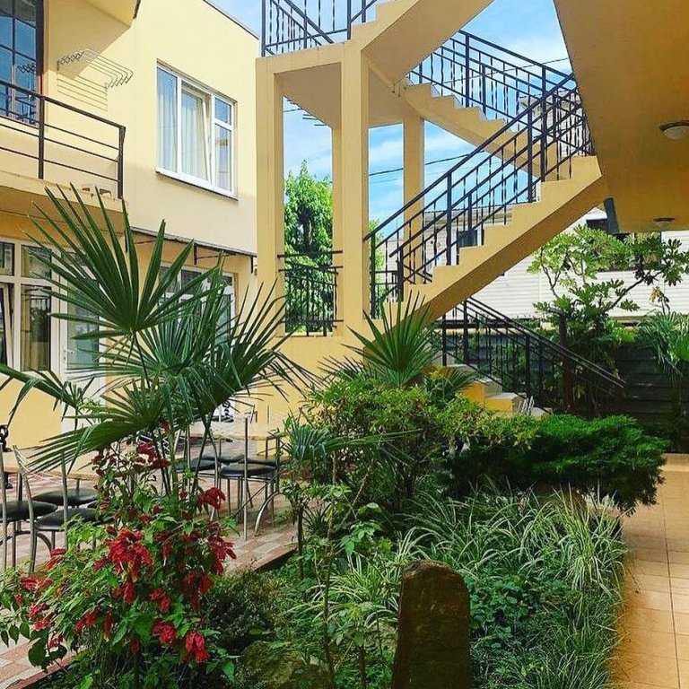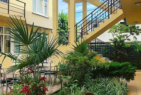 Аптека, супермаркет, банкомат, остановка в 3-х минутах пешком.Два трехэтажных корпуса гостевого дома расположены на закрытой территории. На территории расположены уютные зоны отдыха среди экзотических растений, общая кухня и бесплатный Wi-Fi.В распоряжении гостей комфортабельные 2,3,4-местные номера Комфорт. Во всех номерах санузел, холодильник, телевизор, кондиционер.
