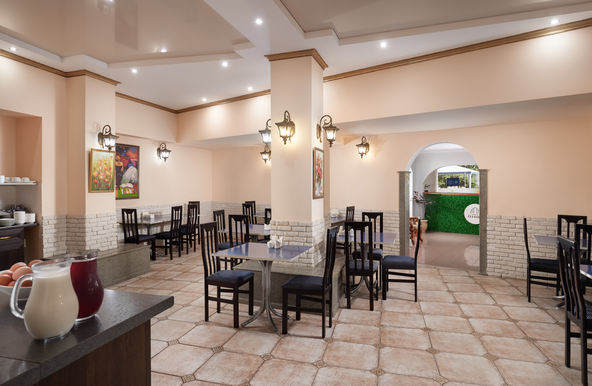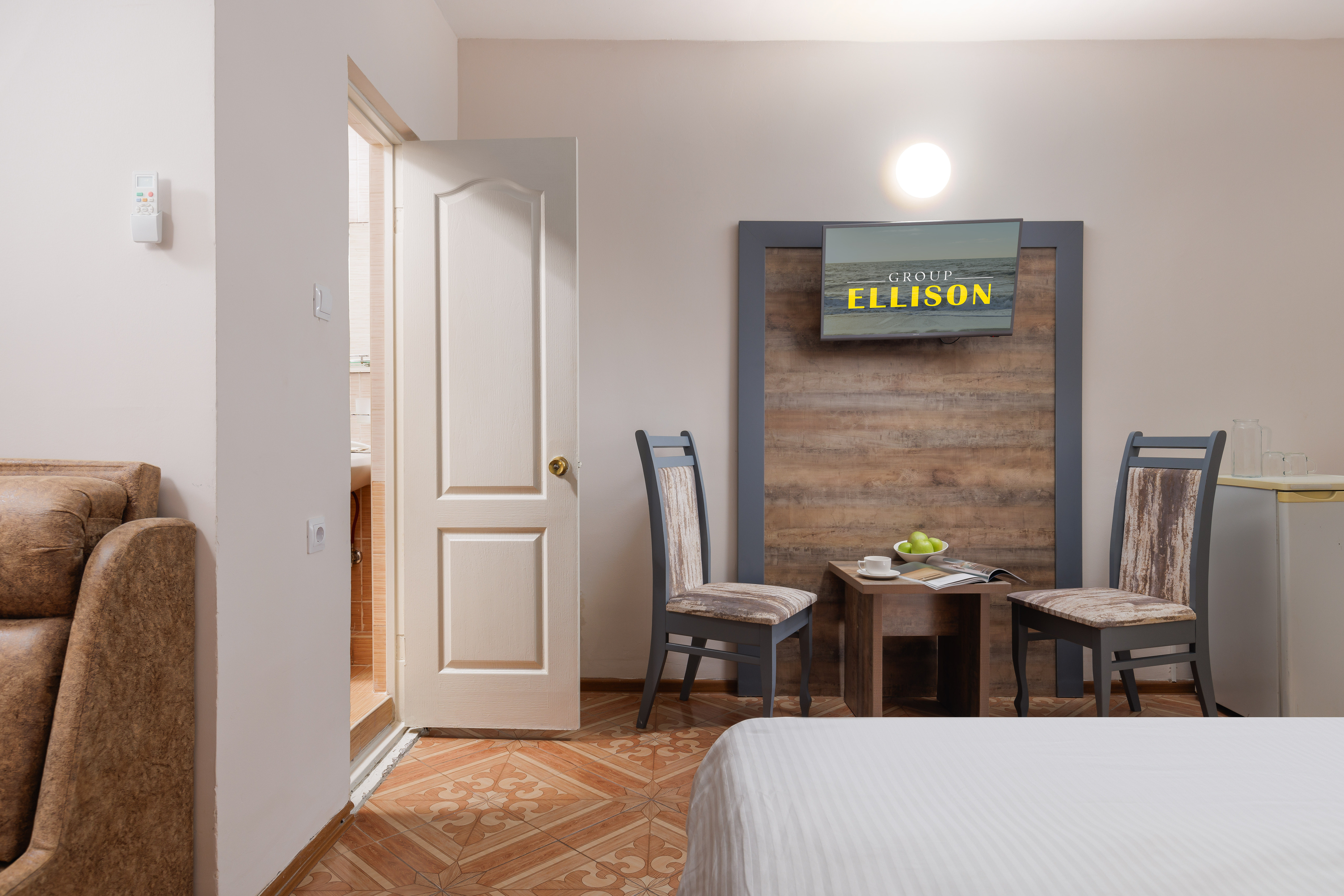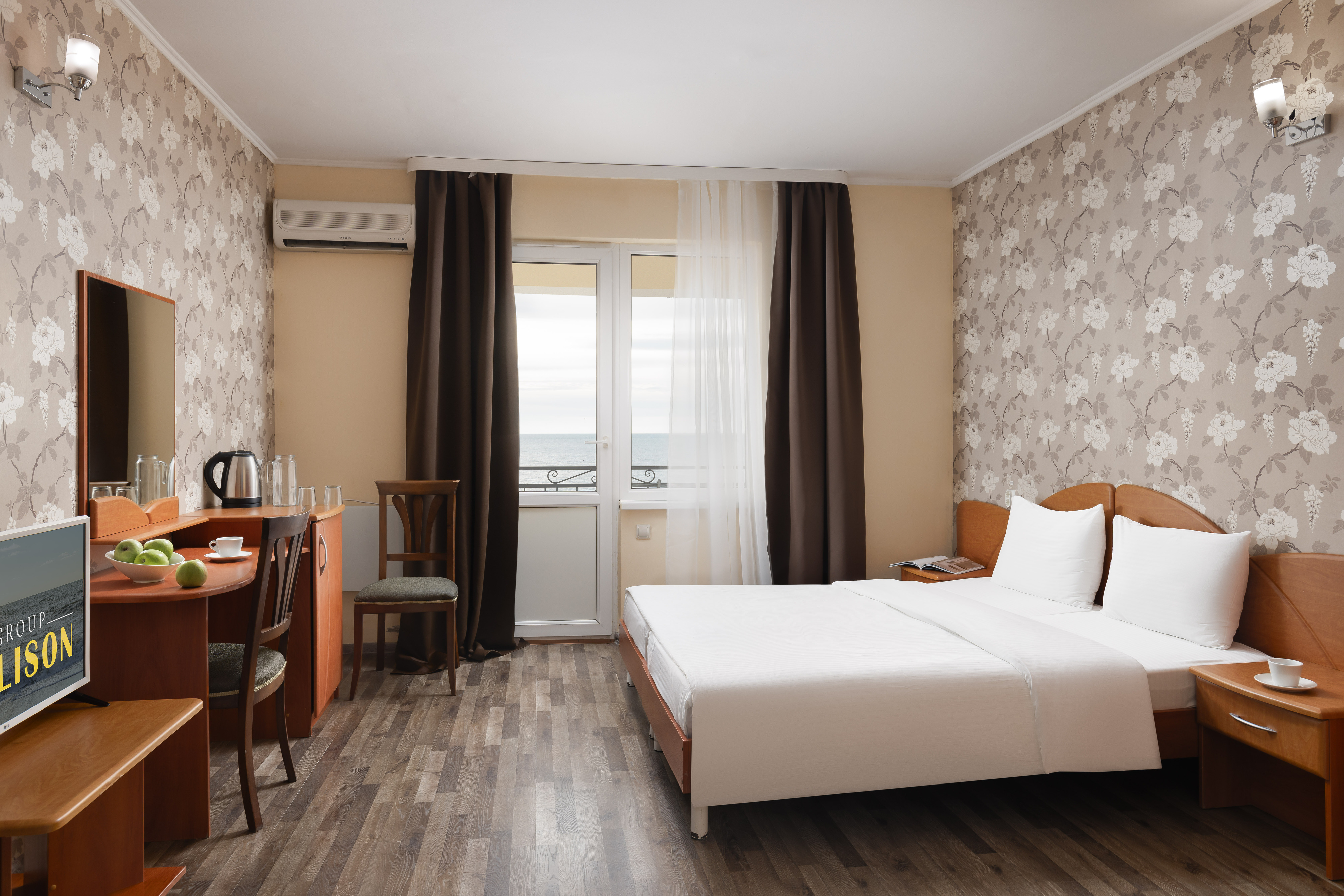 Жилой фонд, способный единовременно принять 130 человек, предлагает гостям уютные комфортабельные номера разных категорий. В каждом номере есть собственный санузел, кондиционер и телевизор-ЖК. В ряде комнат предусмотрены балконы, также есть и Апартаменты, оснащенные кухней.В отеле для гостей работает небольшое кафе. Среди услуг — беспроводной интернет, охраняемая парковка, возможно размещение с домашними питомцами.Всего в 20 метрах расположен городской пляж. На галечном побережье работают бары, установлены лежаки, навесы, раздевалки, большой выбор водных развлечений для детей и взрослых.