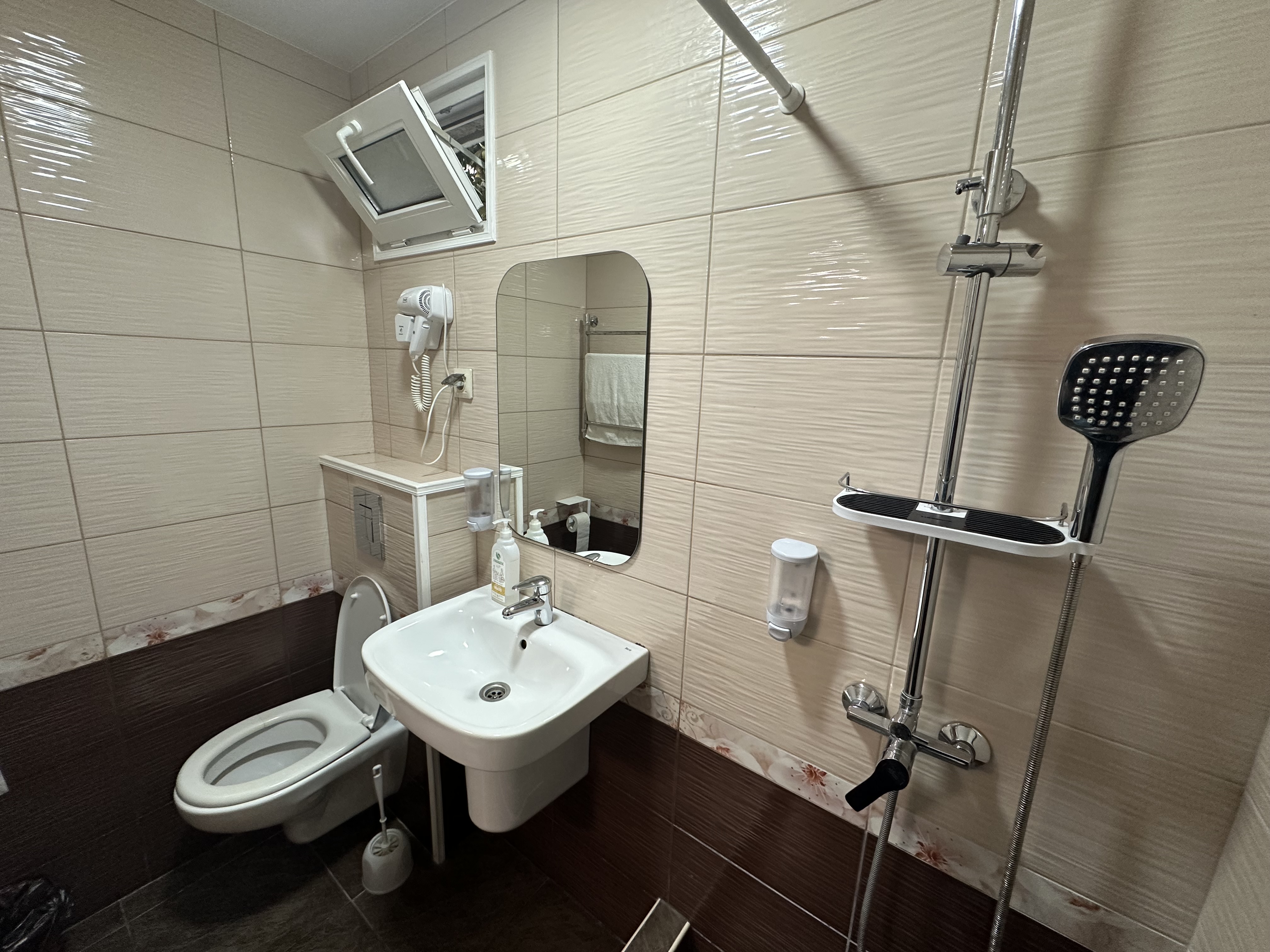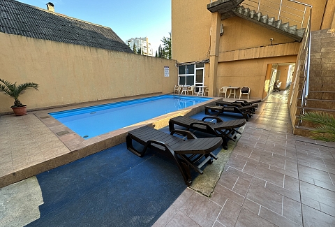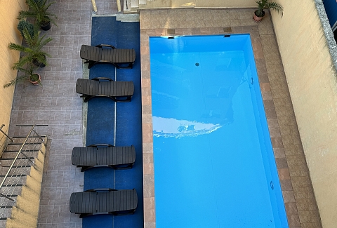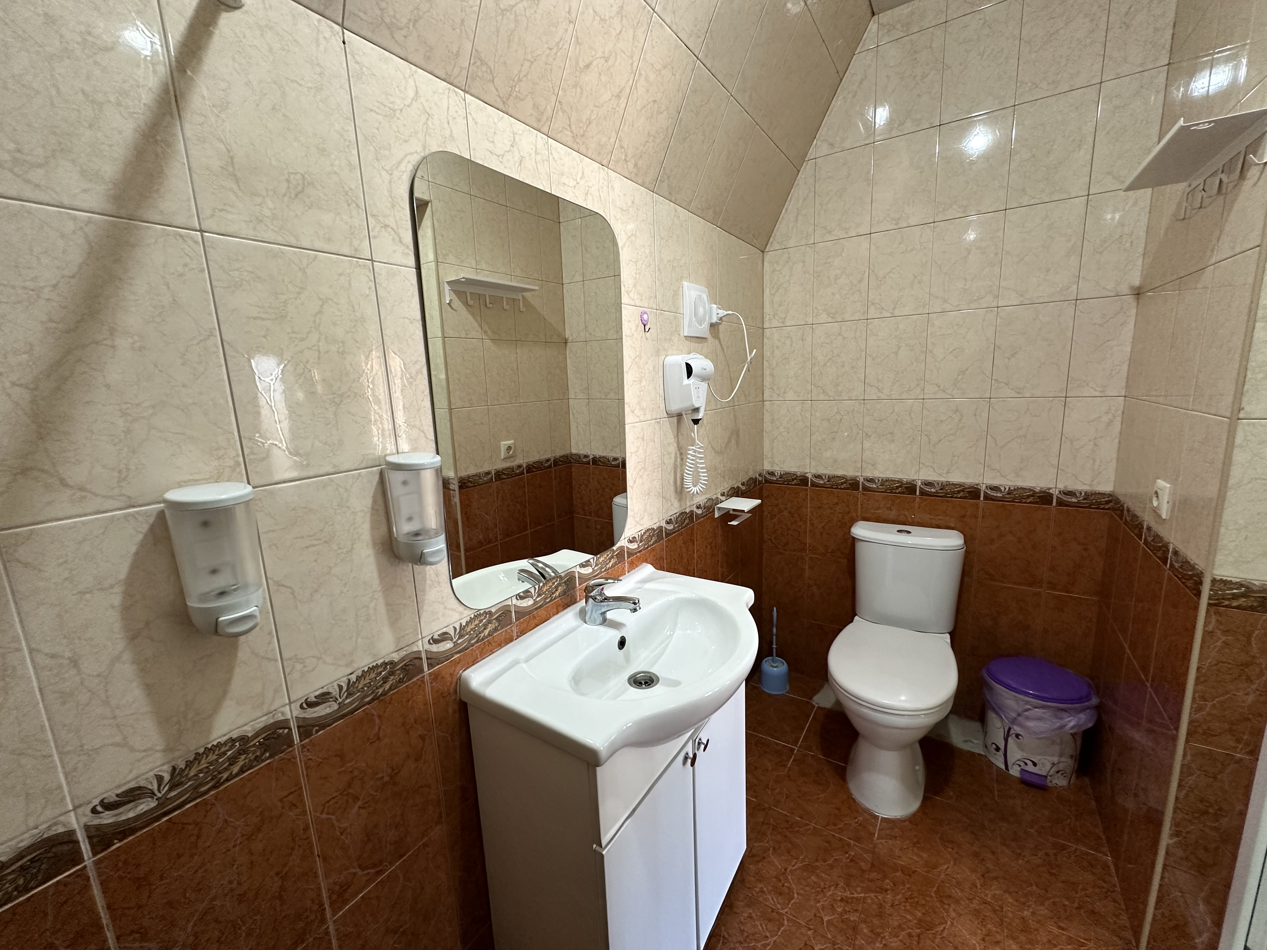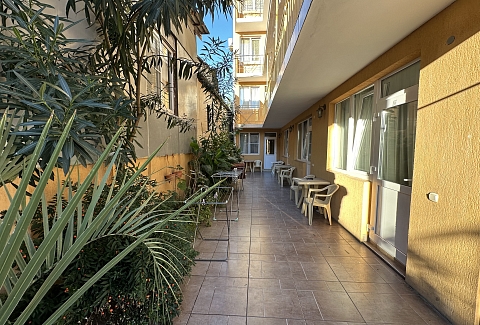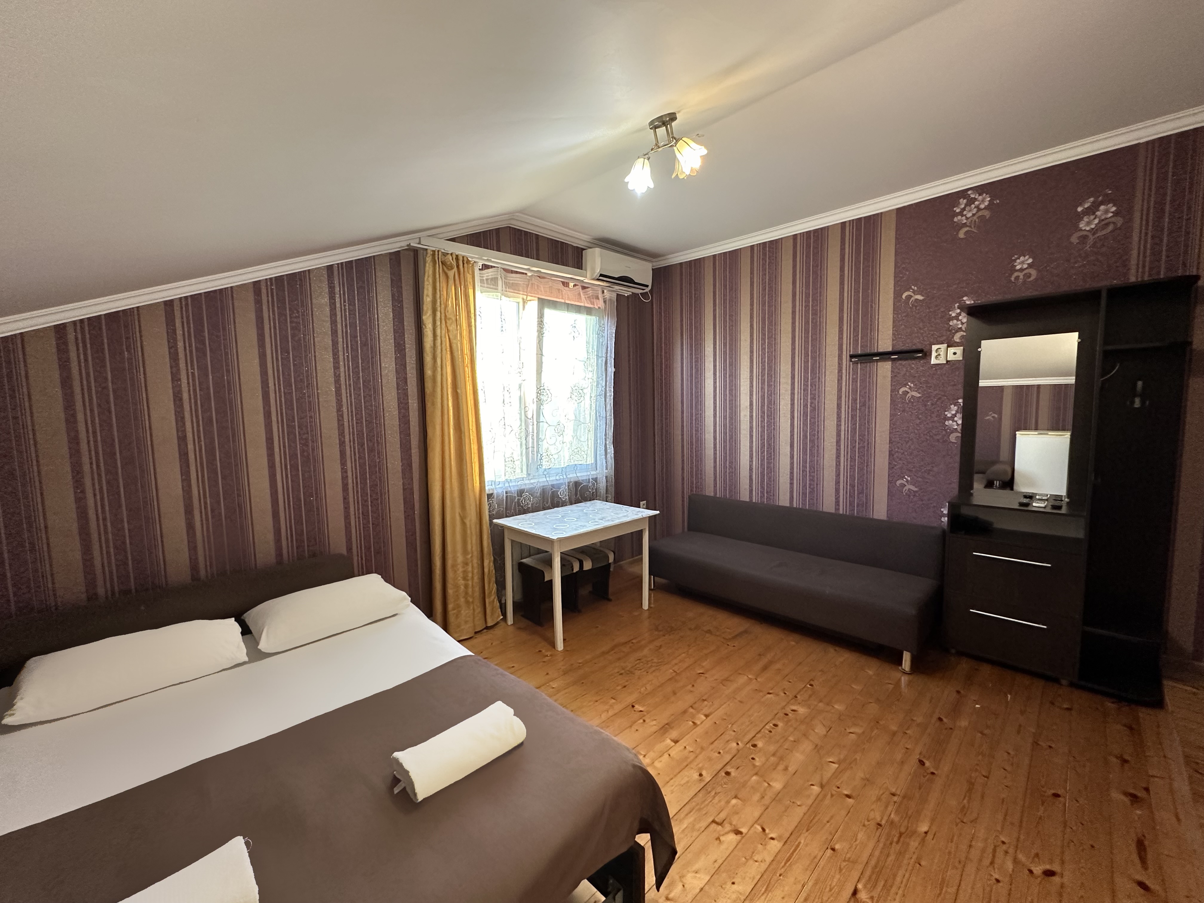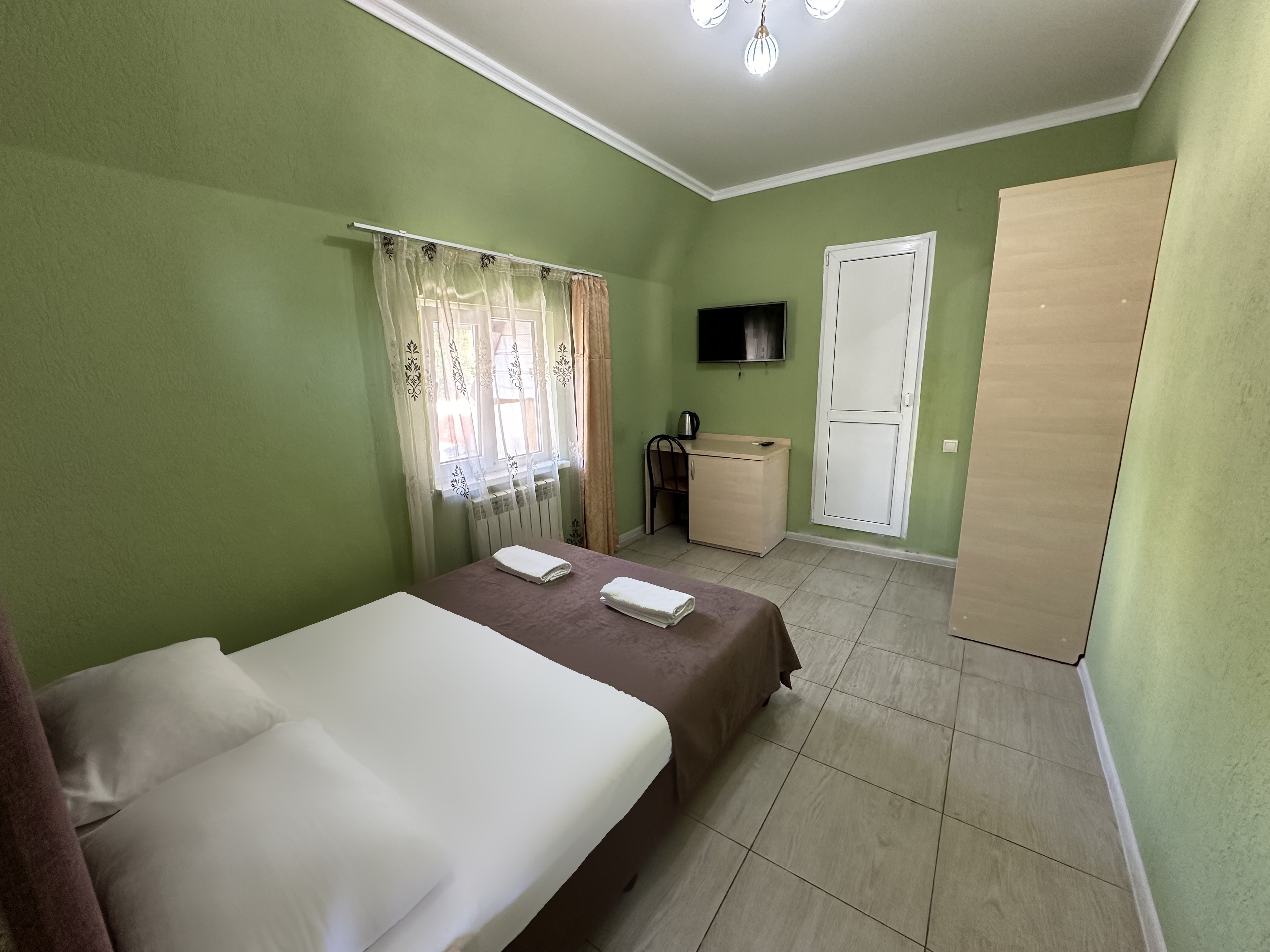 Здание отеля занимает небольшую закрытую территорию в 600 метрах от моря. Жилой фонд включает в себя номера разные по уровню комфорта и площади. В каждом предусмотрен персональный санузел с душем, есть кондиционер, справляющийся с южной жарой, телевизор, холодильник. При гостинице работает столовая, есть открытый бассейн с подогревом, в числе прочих удобств – услуги прачечной и безлимитный интернет. В 10 минутах ходьбы – галечный пляж с раздевалками, навесами, лежаками.