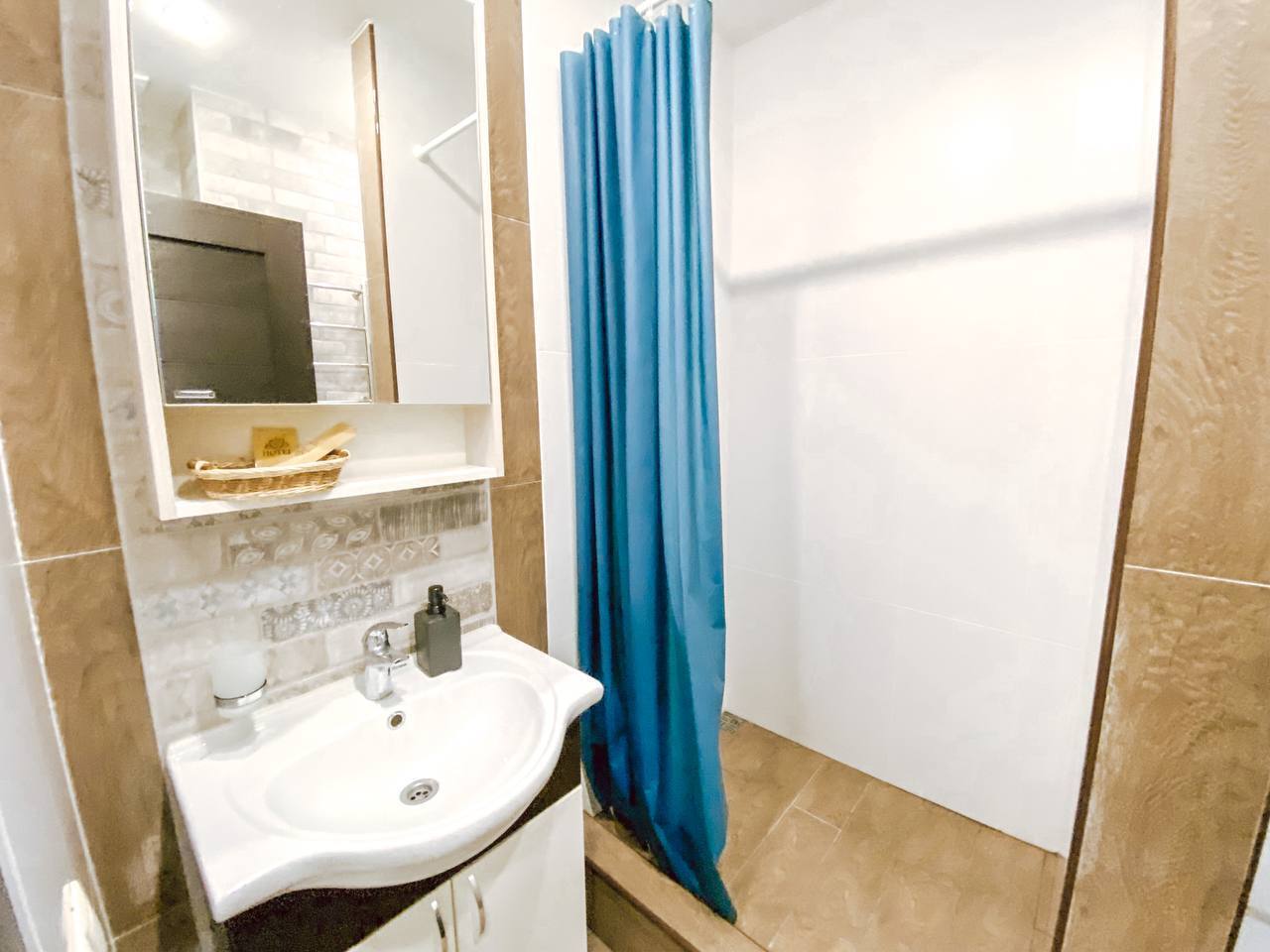 Санузел: с душем, туалетные принадлежности, фен