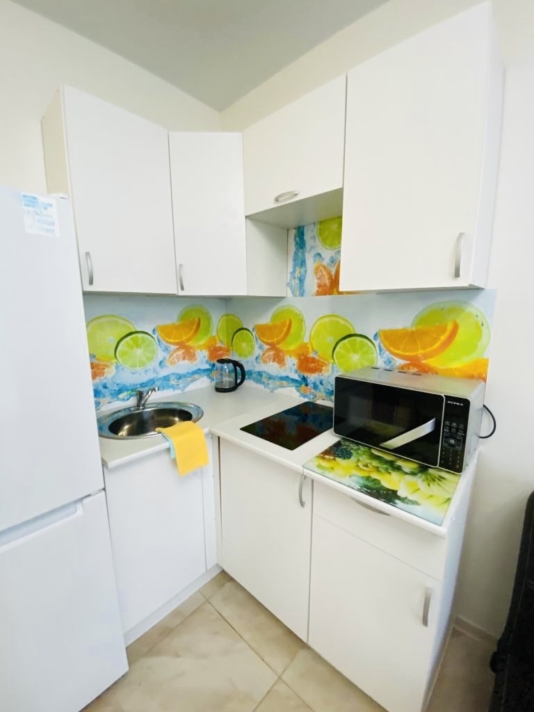Есть все необходимое: холодильник, тв, кухонная зона с посудой и приборами, посудомоечной машиной, микроволновой печью, совмещенный санузел со стиральной машиной, постельные принадлежности. Предоставляются полотенца, одноразовая косметика, одноразовые тапочки, чай/кофе в пакетиках. В спальной зоне стоит двуспальная кровать 160*200. Рядом с домом расположена платная парковка До моря и галечного пляжа «Чкаловский» 5 минут пешком. Пляж оборудован шезлонгами, кабинками для переодевания и душем.
