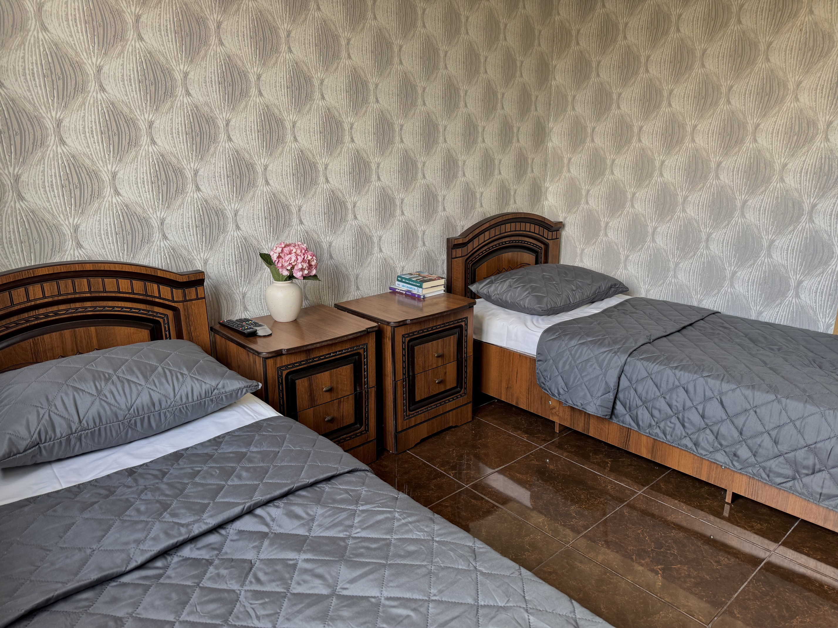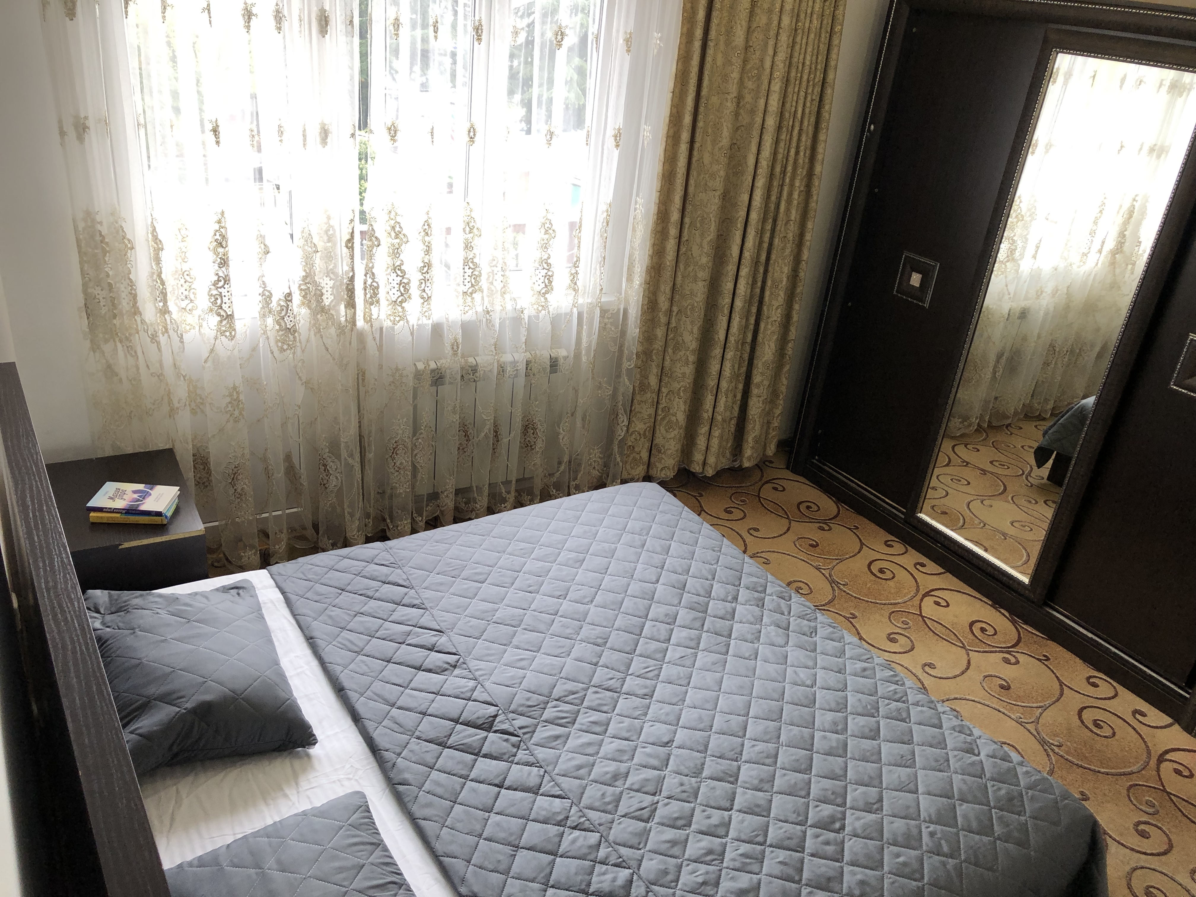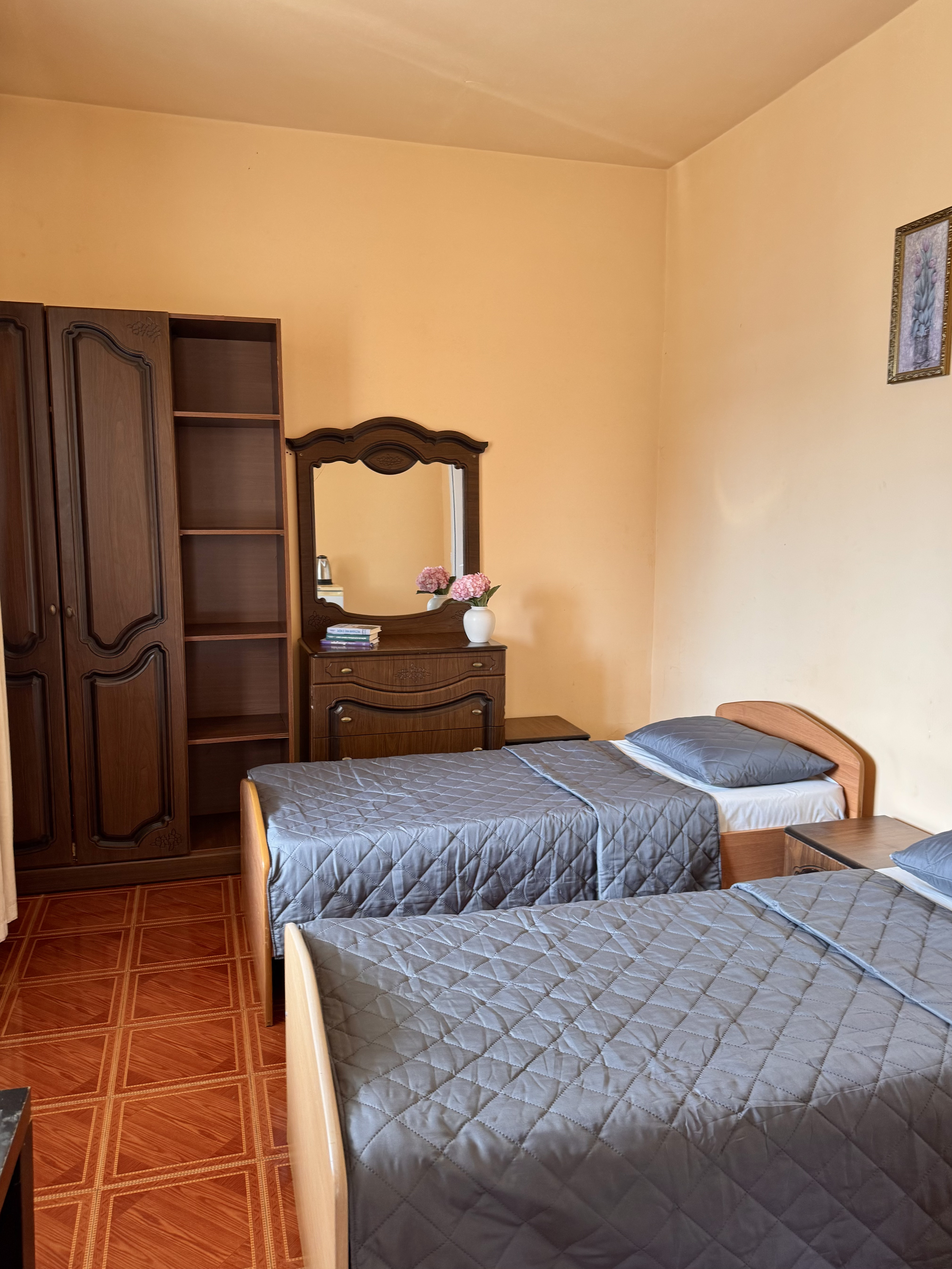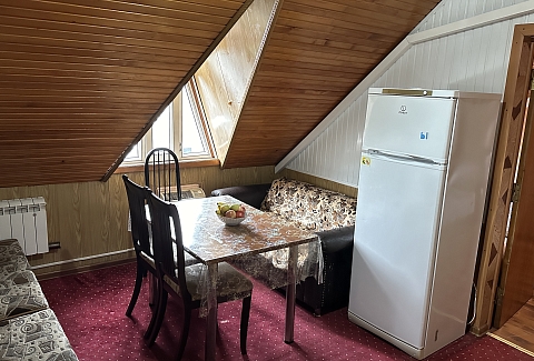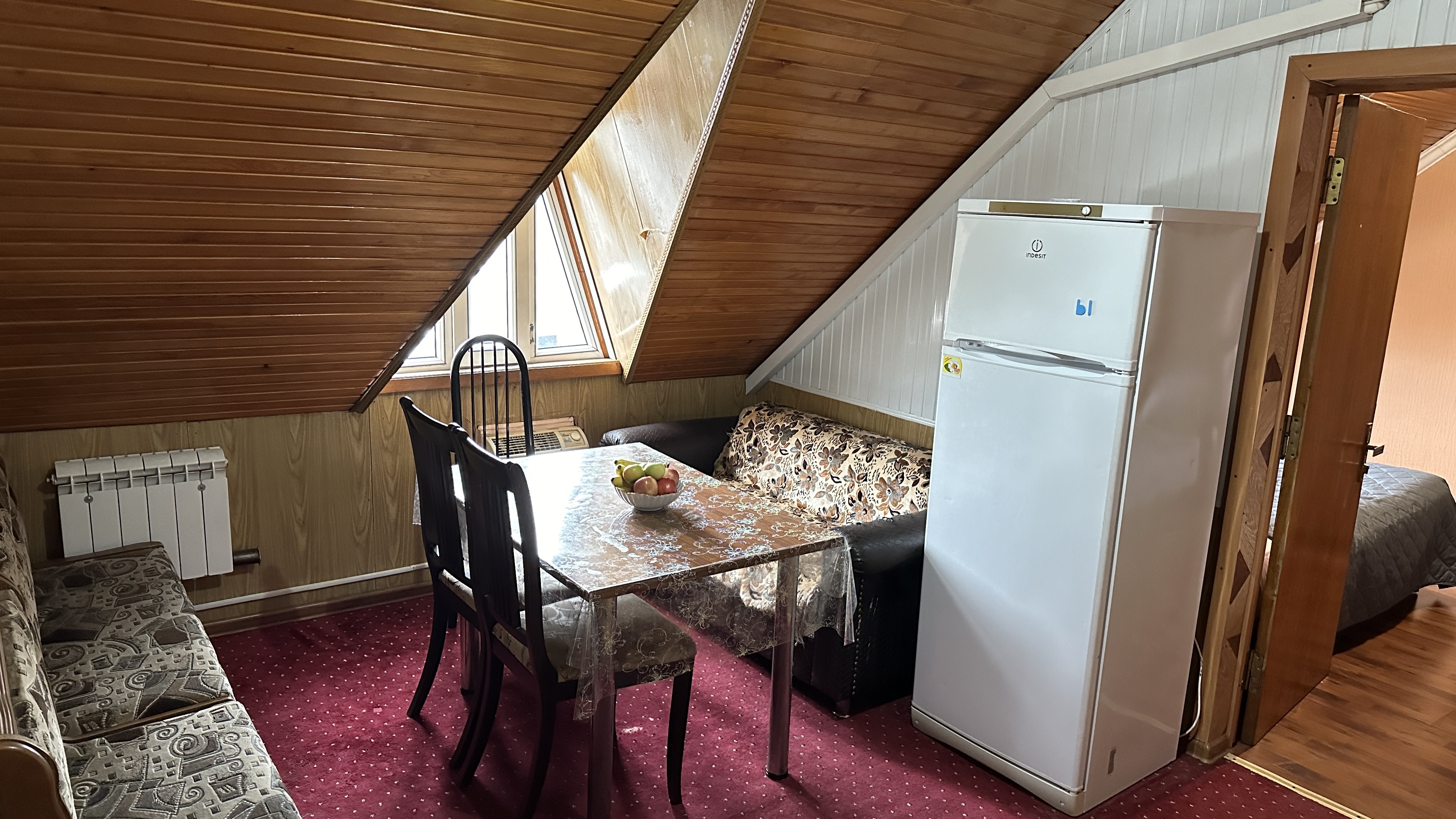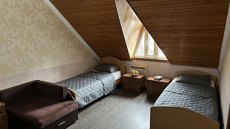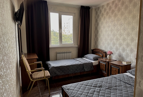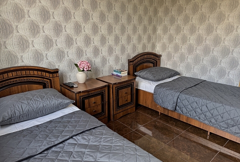 В номере: кровать двуспальная, кровать односпальная, прикроватная тумбочка, стол, стулья, шкаф, мини-холодильник, сейф, сплит-система, телевизор, чайный набор посуды, электрочайник