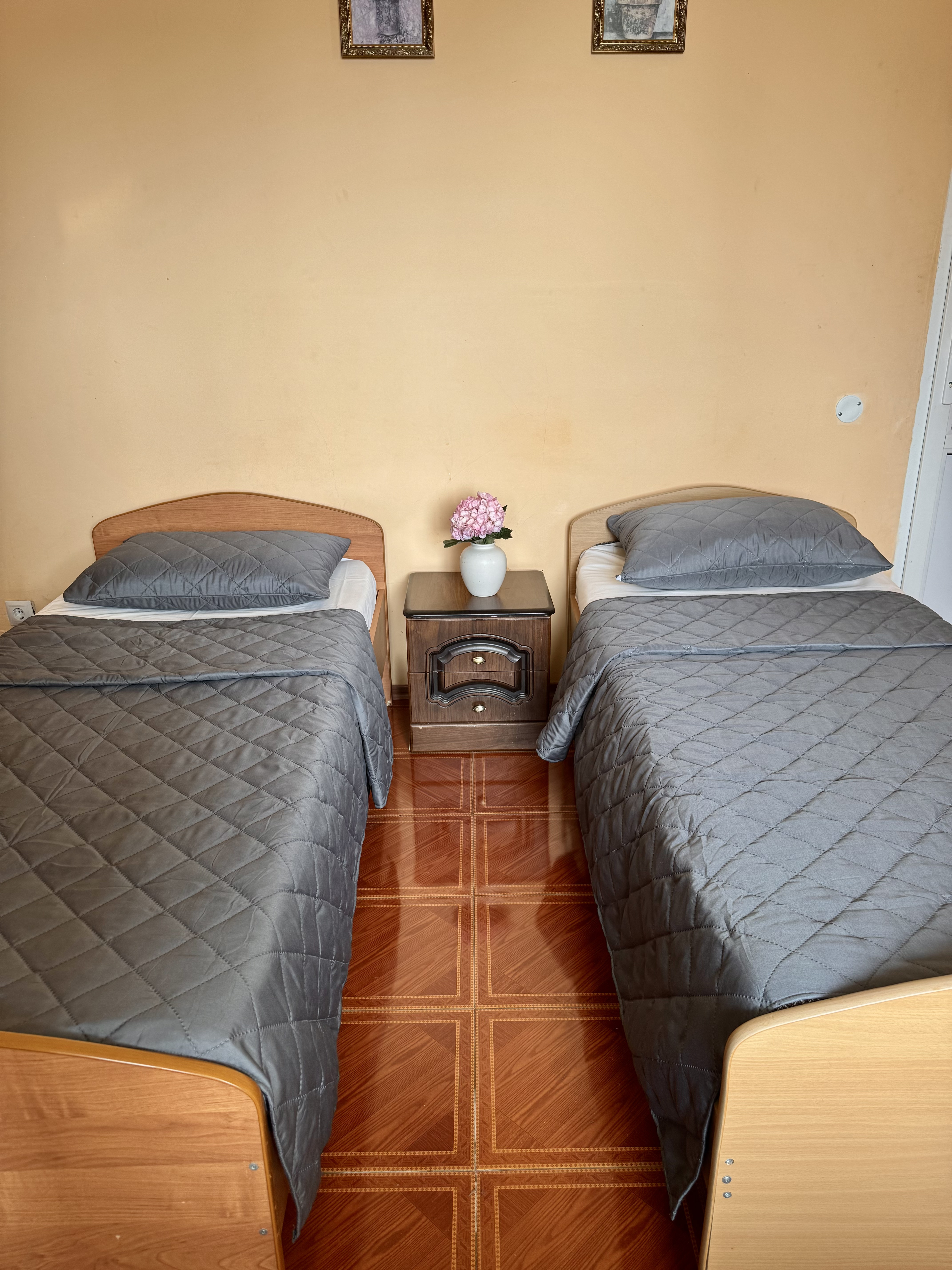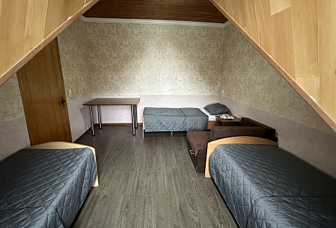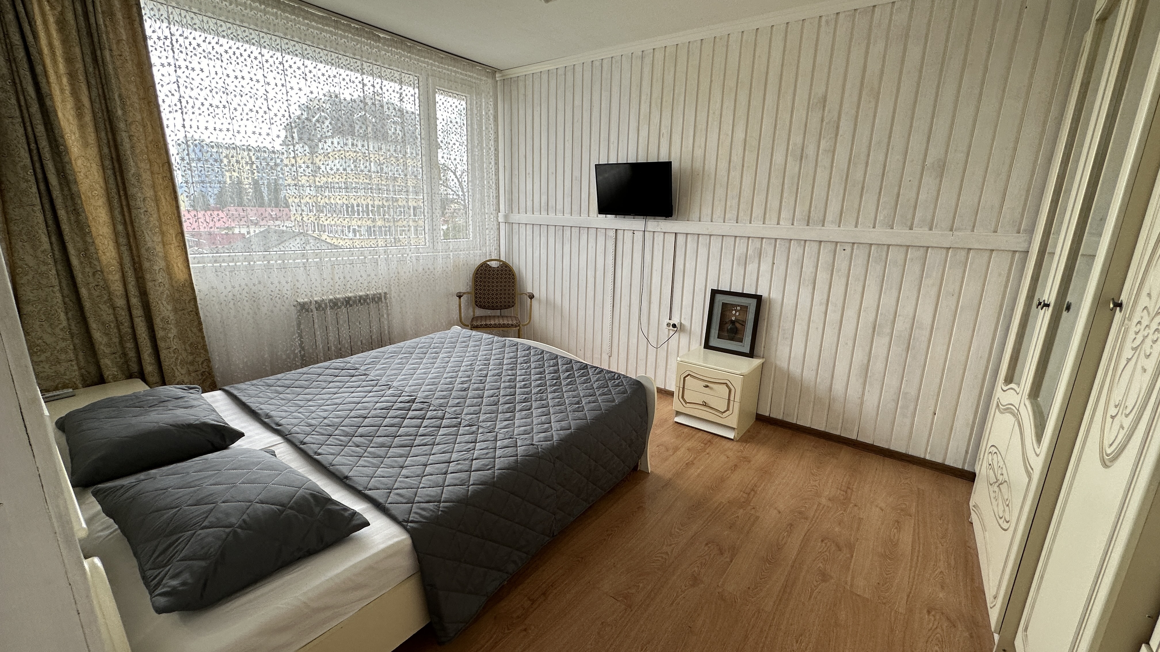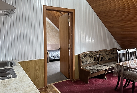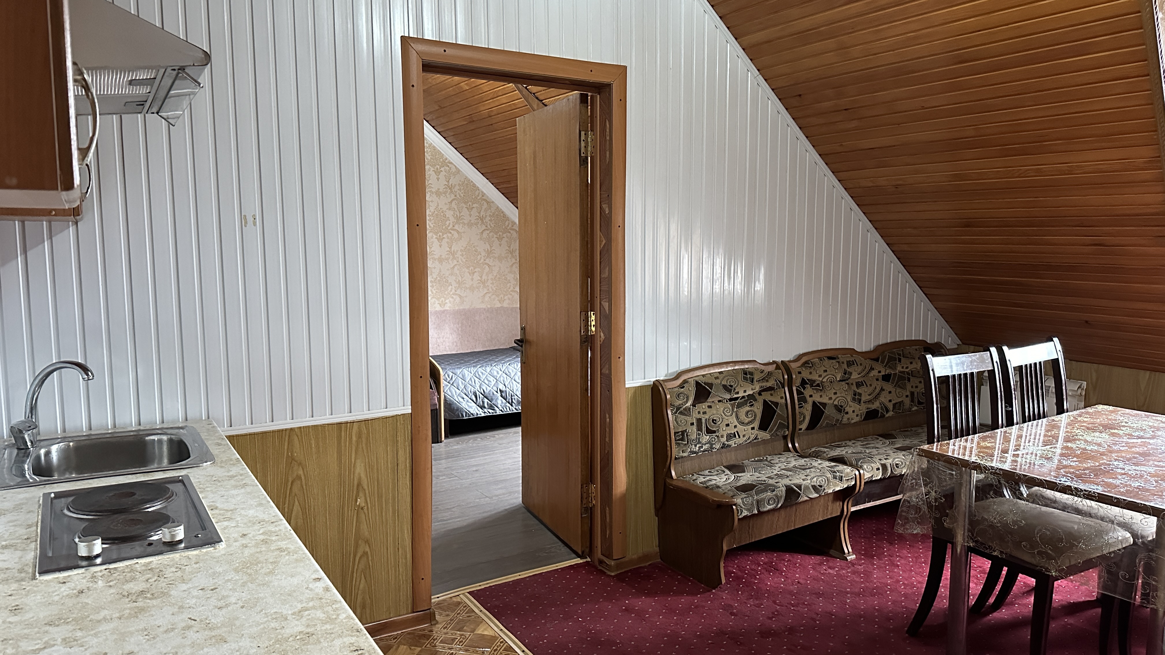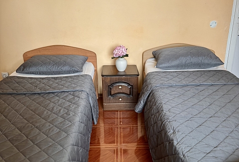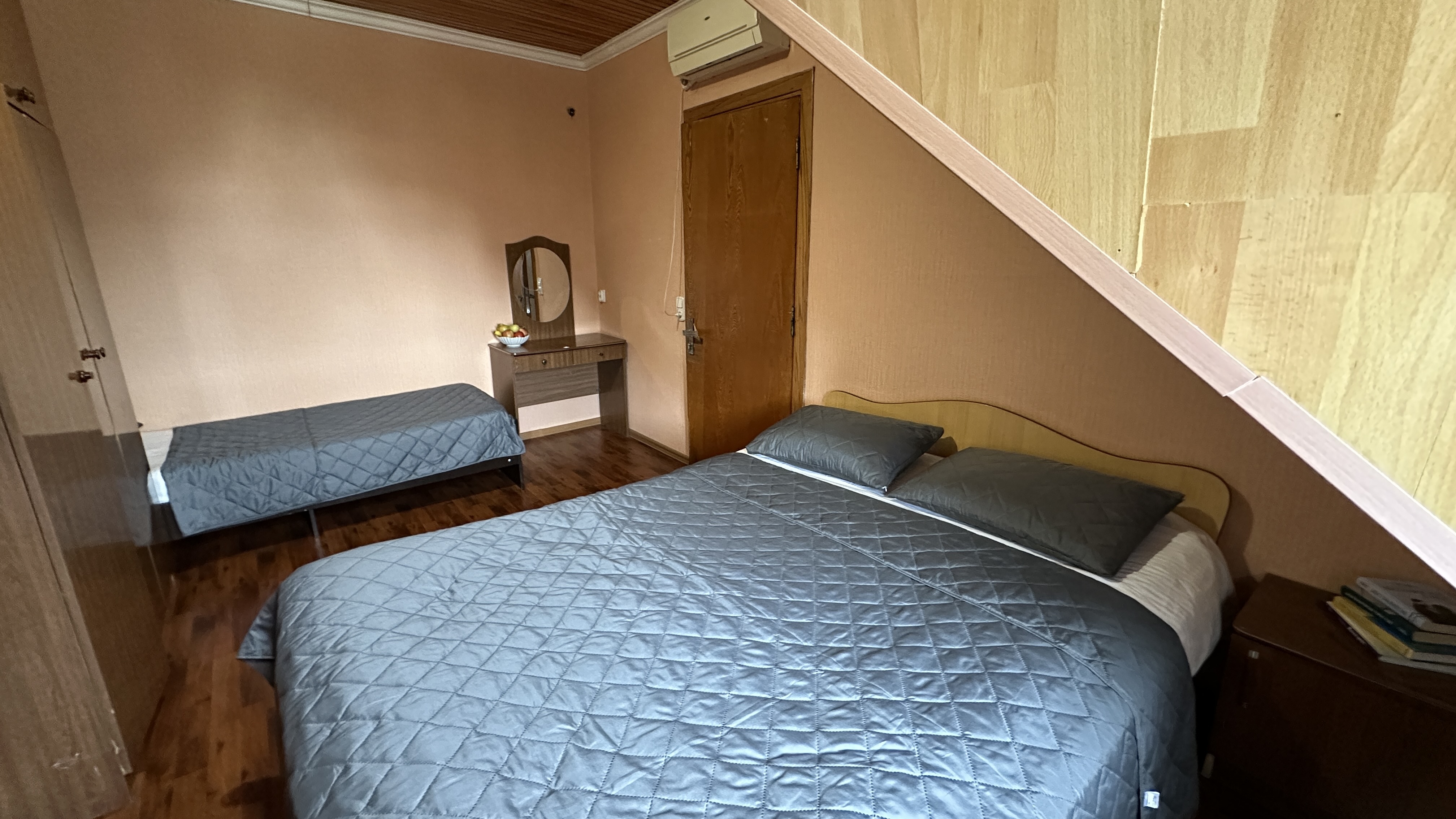 В номере: кровать двуспальная, кровать односпальная, прикроватная тумбочка, стол, стулья, шкаф, мини-холодильник, сейф, сплит-система, телевизор, чайный набор посуды, электрочайник