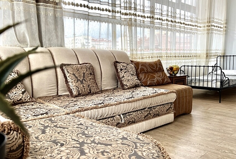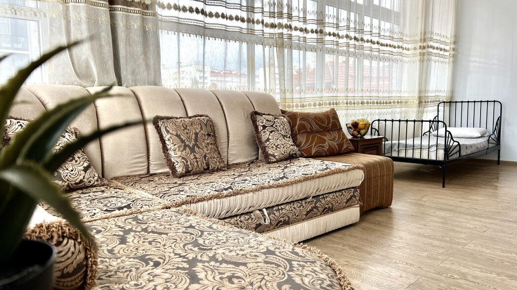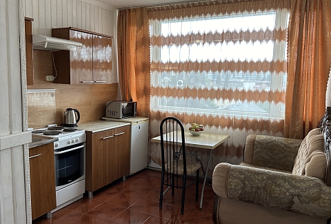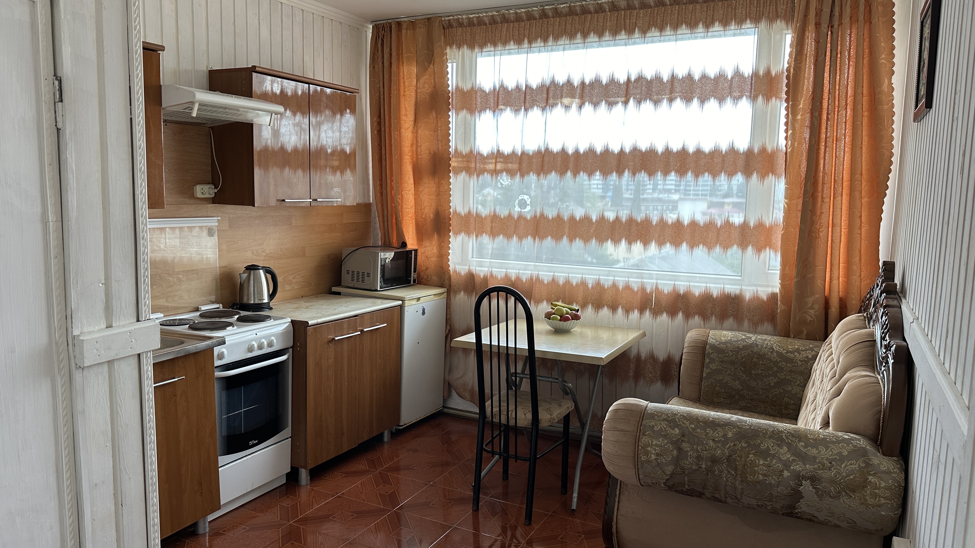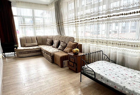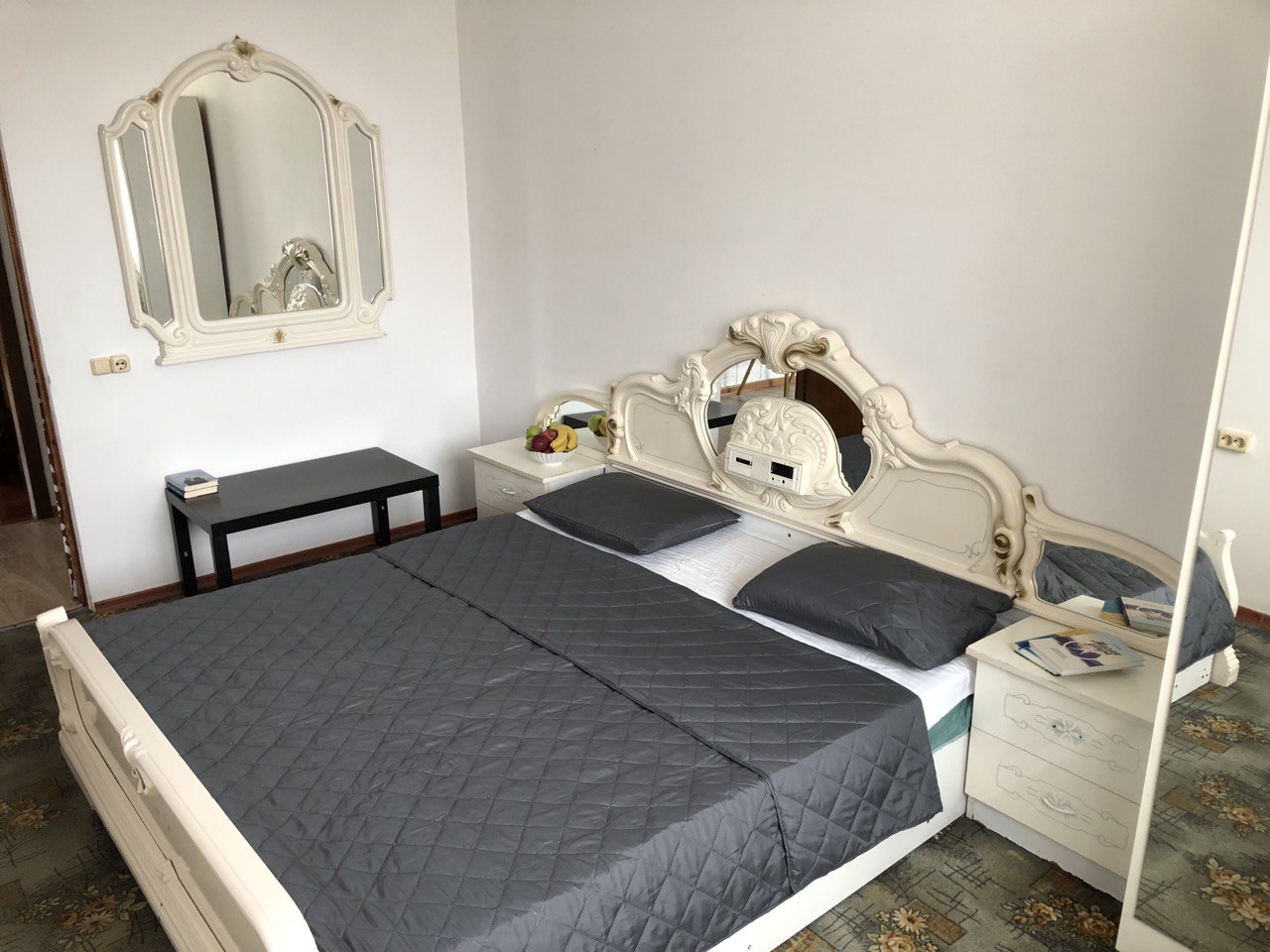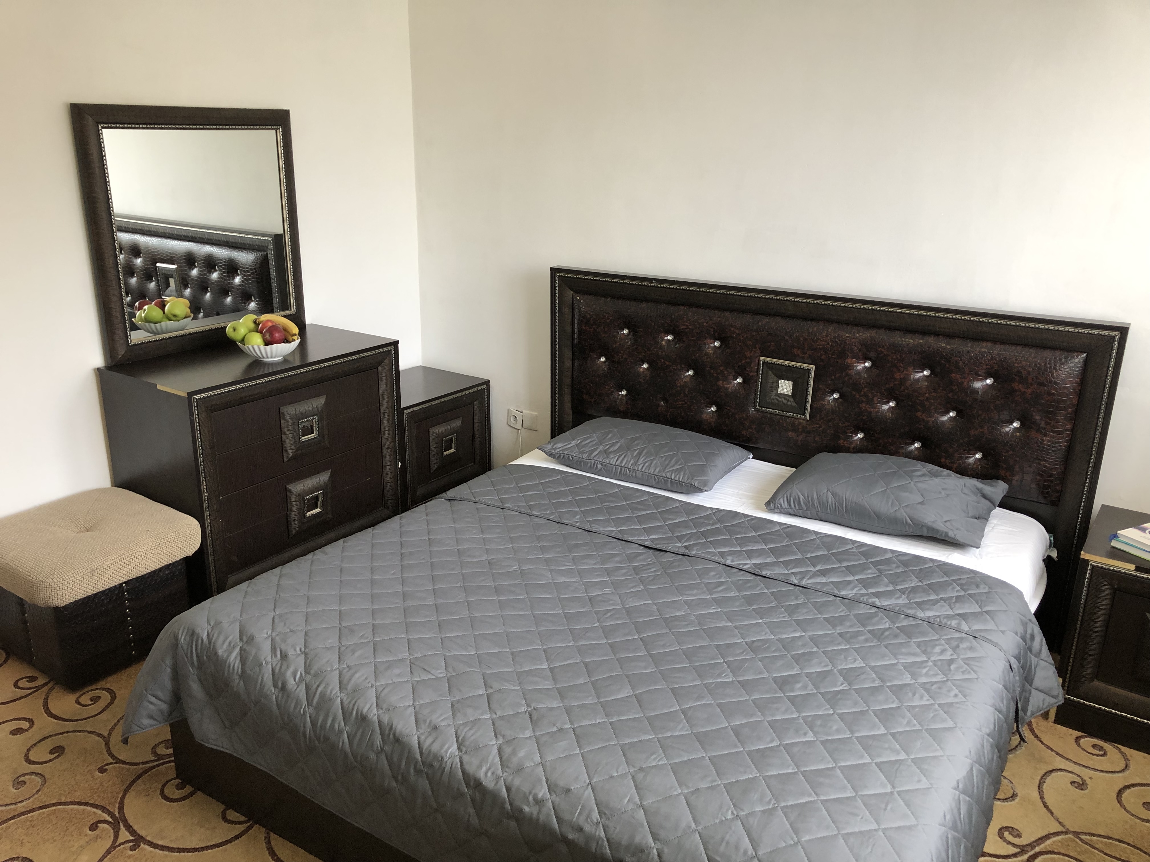В номере: диван, зеркало, кресло-кровать, кровати односпальные, кровать двуспальная, прикроватные тумбочки, стол, стулья, шкаф, мини-холодильник, плита электрическая, сейф, сплит-система, стиральная машина, телевизор, холодильник, чайный набор посуды, электрочайник