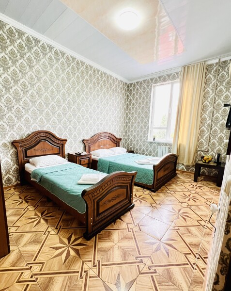 В номере: кровати односпальные /одна двуспальная кровать, прикроватная тумбочка, стол, стулья, шкаф, мини-холодильник, сейф, сплит-система, телевизор, чайный набор посуды, электрочайник